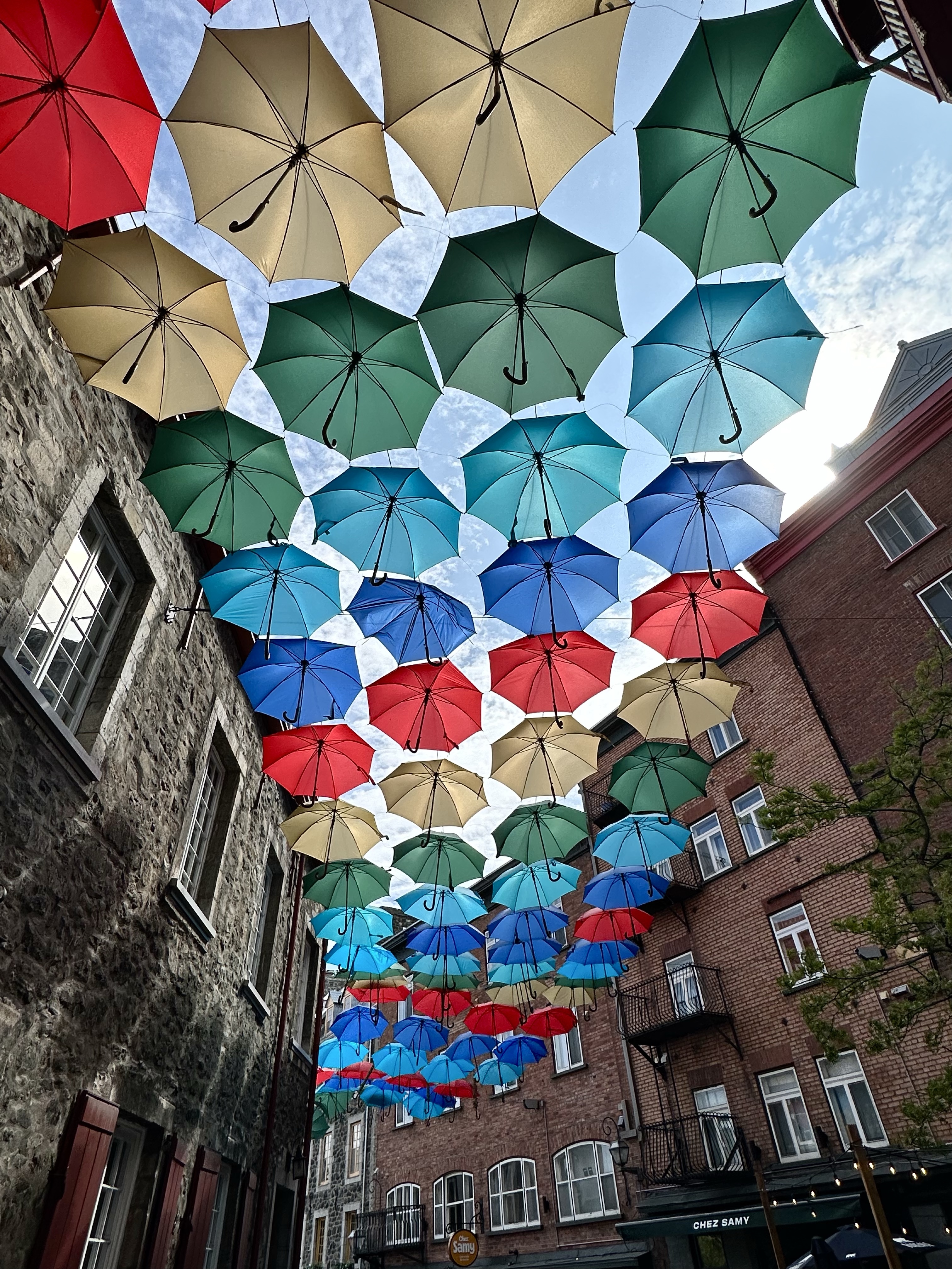 Wandering back to the port as the sun started to go down, we thought Mary Poppins might have been in town. Lovely old street, more bars… why not?! We sat reminiscing about sore feet but more so about how much we’d enjoyed Québec City. Lots to see and do, gorgeous and varied architecture and somewhere clearly very proud of it’s heritage. We won’t be heading to that many cities we don’t expect (don’t quote me on that!) but this has been a real treat. We didn’t know what to expect but we loved it. People were great, friendly everywhere, even if O level French didn’t go that far. We took meeting new people to a whole new level though, meeting Steve and Maggie at the campsite. No word of a lie, Canadian Steve’s cousin lives about 5 doors away from Nicks M&D! Nick’s dad and he are now setting up a Canada Travel Group in Redditch 😊