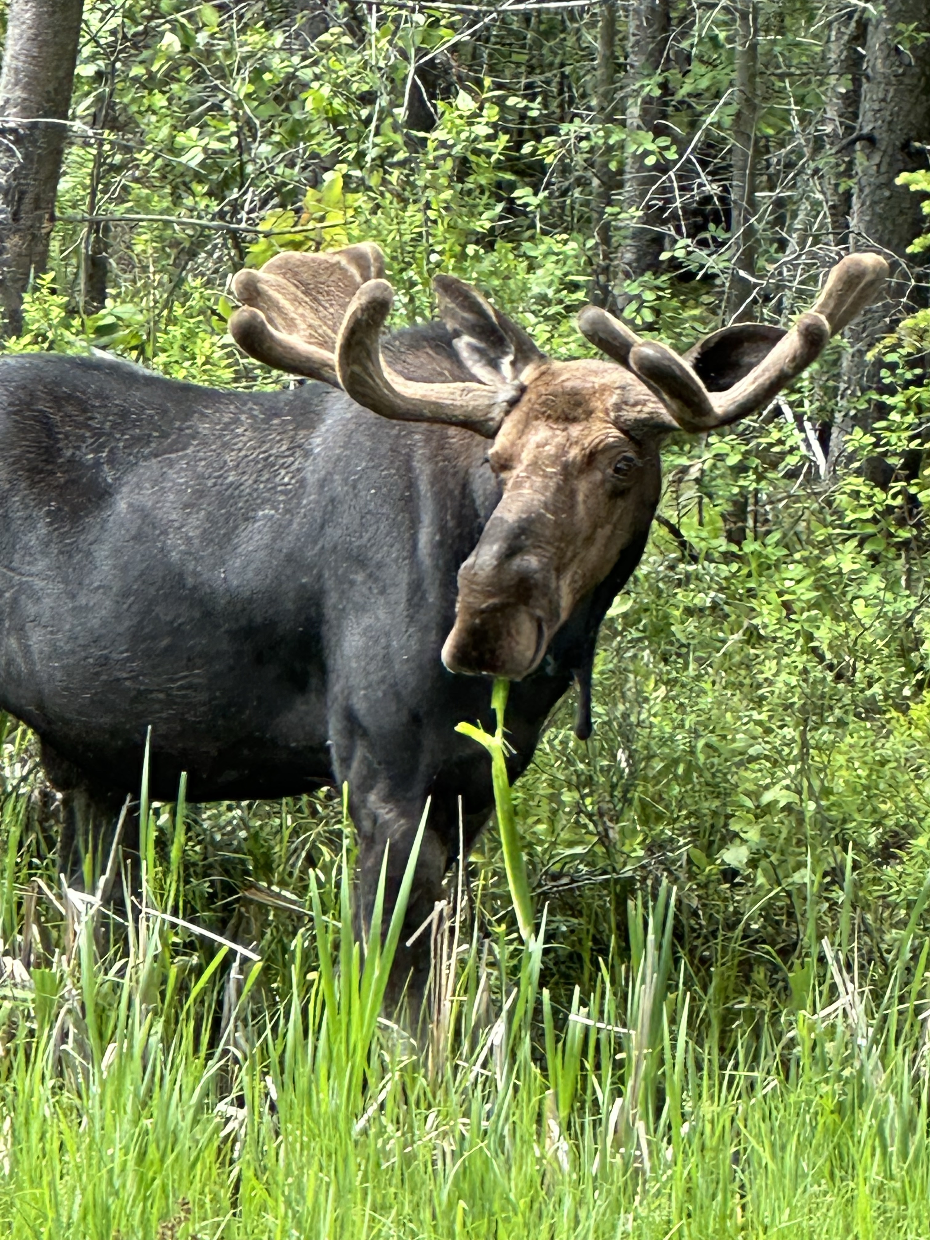 Initially, a long drive past Montreal and Ottawa (they are for the return leg) we headed to Algonquin Provincial Park where we did a couple of hikes, one to Beaver Dam and yes, the beavers who’d scored an A in their civil engineering exam had built an incredible dam. A lovely wander through the tree’s lakeside, we had timbre of frogs twanging their home made guitars, the swish of leaves and tweets of the birds to carry us back and distract us from the mozzies. Spruce Bog, the clues in the name, was a haven for the pesky blighters. A bit like golf, mozzies can ruin a good walk! It was stunning though, lily covered waters and alive with numerous types of dragonfly. Anyhow, this was the park where we saw our first Bull Moose and Chipmunk, Alvin.