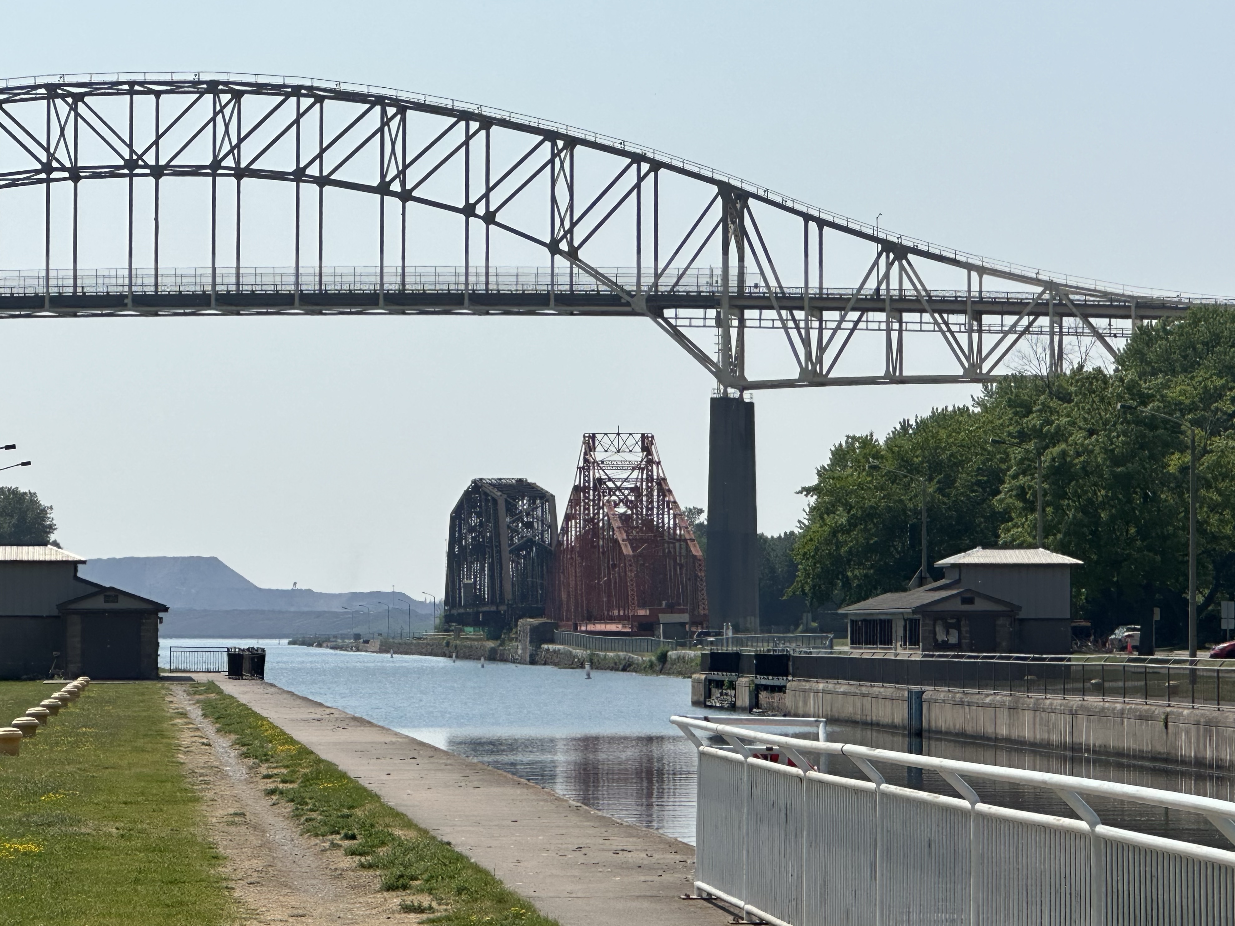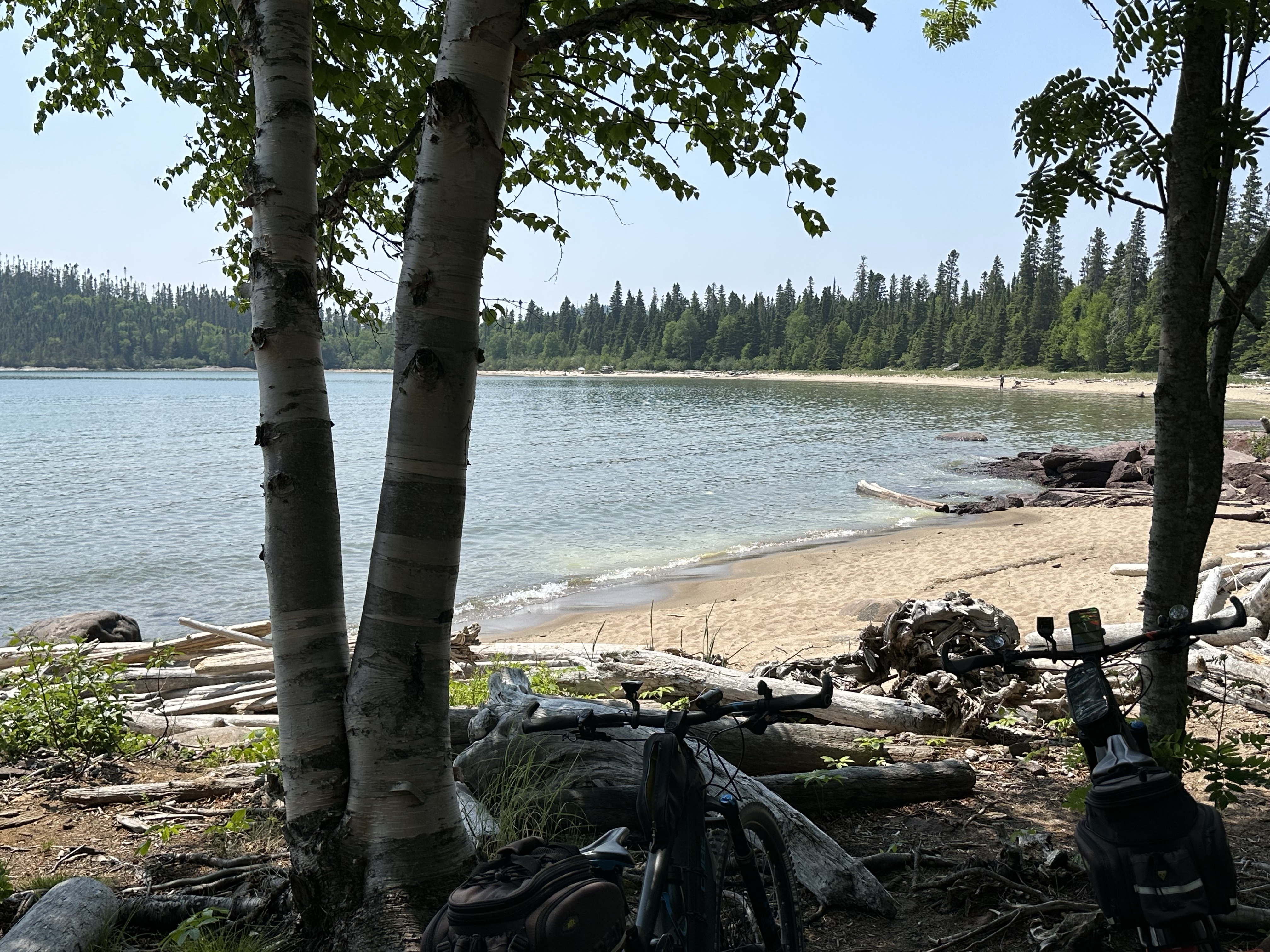 Next quirky stop was Sault Ste. Marie, a stones throw across the St Mary’s river to the US and a border point. Ferries used to cross for trade before the bridge so the Welcome Arch became redundant. Lots of great buildings though as we walked to the canal, the highlight of the historic centre, yes a canal! It was the largest lock in the World once upon a time and the first to use electricity. The US and Canada nicely shared a lock until it was destroyed in the 1812 war so Michigan built a new one when they were friends again. 1895 after the US refused passage to a steamer, my waters are my waters and all that kerfuffle type stuff, Canada built its own and bigger, sticking it to the US!! Enough of the silliness, we headed away, noticing Amish ploughing the fields with horses and the landscape changing to being more hilly and denser trees folding in on the road like a narrow corridor. We approached Lake Superior as the sun was going down over the flat, calm waters and no ‘cottages’ in sight, staying at the fabulously named Rabbit Lake campground.