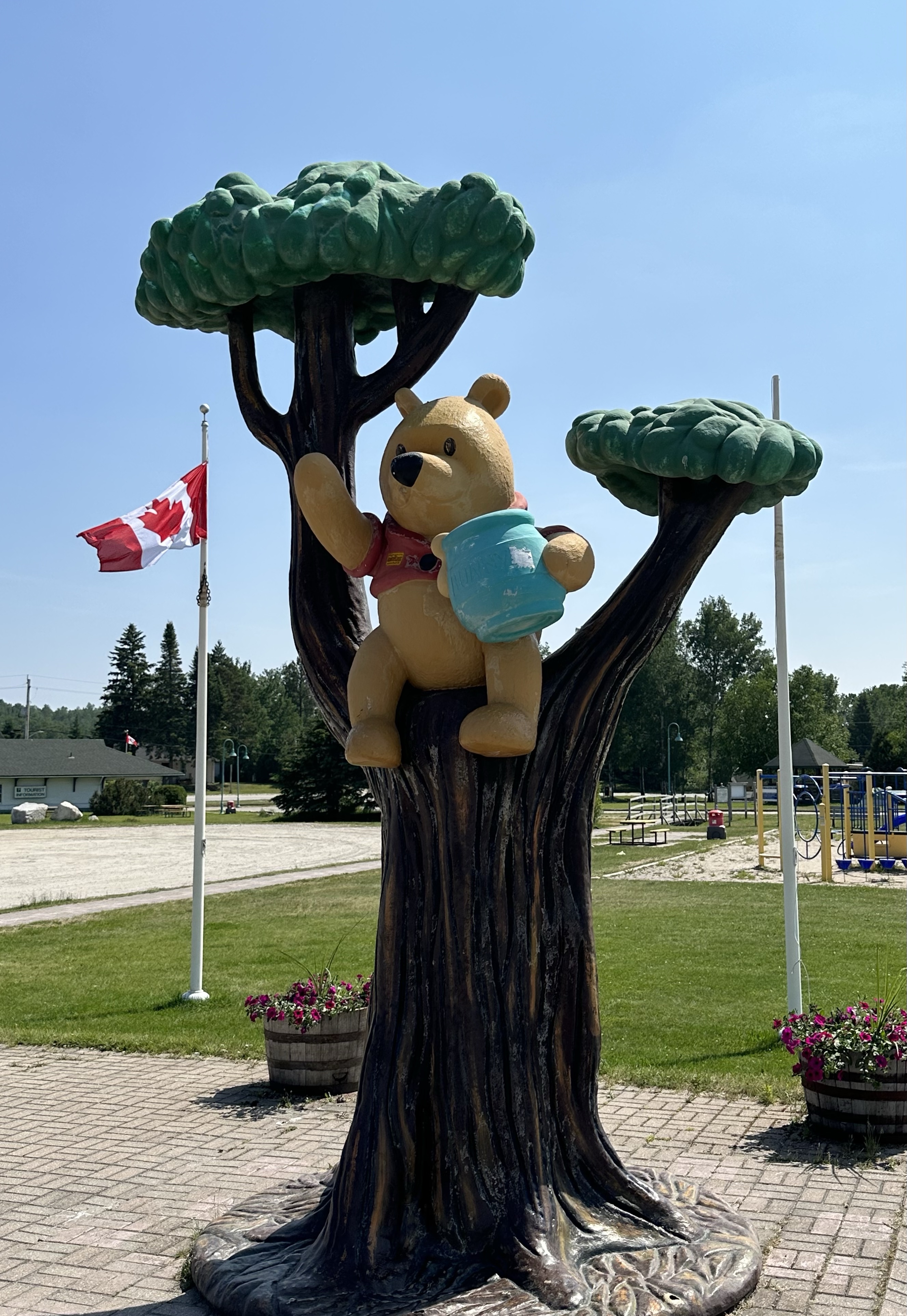 Lake Superior, for all it’s vastness, doesn’t have that many lakeside access points (relatively speaking!) A lovely one was Old Womans Bay with its driftwood trees. Bored with stunning scenery, we went to find the giant Goose at Wahwah. There’s no reason for it, other than to drag oddity seeking tourists off the hwy17 into the town for a photo and maybe buy something while there. We also, to be fair, got to understand the ‘Inukshuk’ we’d be seeing as we drove. They are stone monuments in the image of humans, designed as a tool for survival by Inuits in the desolate Arctic, as signposts. It’s seen as a symbol of human spirit, to be of something greater than ourselves and to direct a better tomorrow. White River has a massive thermometer because it was once the coldest place in Canada but also, it’s the home of Winnie the Pooh so we had an ice cream with him, roadside. I could tell you the story but this blog is long enough already.