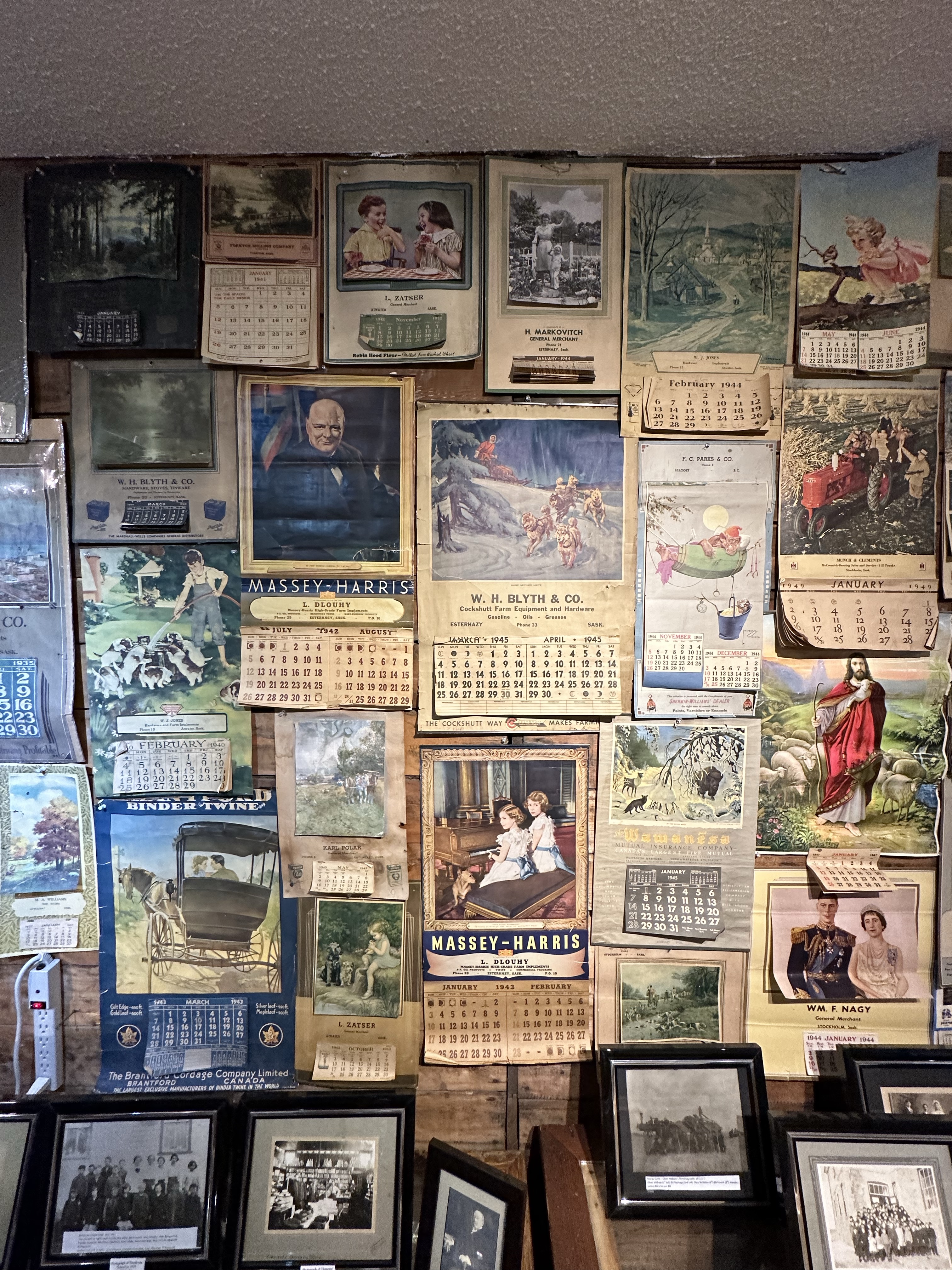 Needing a leg stretch we noticed an Old Flour Mill with a car park, that’ll do as they say in Yorkshire. It was in a town called Esterhazy which it turns out, has a community museum next to the mill. Built in 1906 it’s one of a few remaining on The Prairies and was a grain industry staple in its day, such that with the new railway line too, the wider economy flourished. Named after a ‘colonisation agent’ Count Paul Otto d’Esterhazy, there’s a lot of Eastern European influences, people arriving from the late 1880’s. It was the museum that we found obscure as it was such an eclectic mix of items, all contributed by locals and many, from another age. It felt a bit like the attic of an old family who’d forgotten what was up there. Difficult to photograph as it was stuffed, a few are below. A plastic doll in an ancient incubator, in a doctors surgery (wouldn’t have wanted to be sick when he was around!) a wall full of calendars from the early 1900’s, the old town switchboard, shelves full of very old food products etc etc. Quirky to say the least!