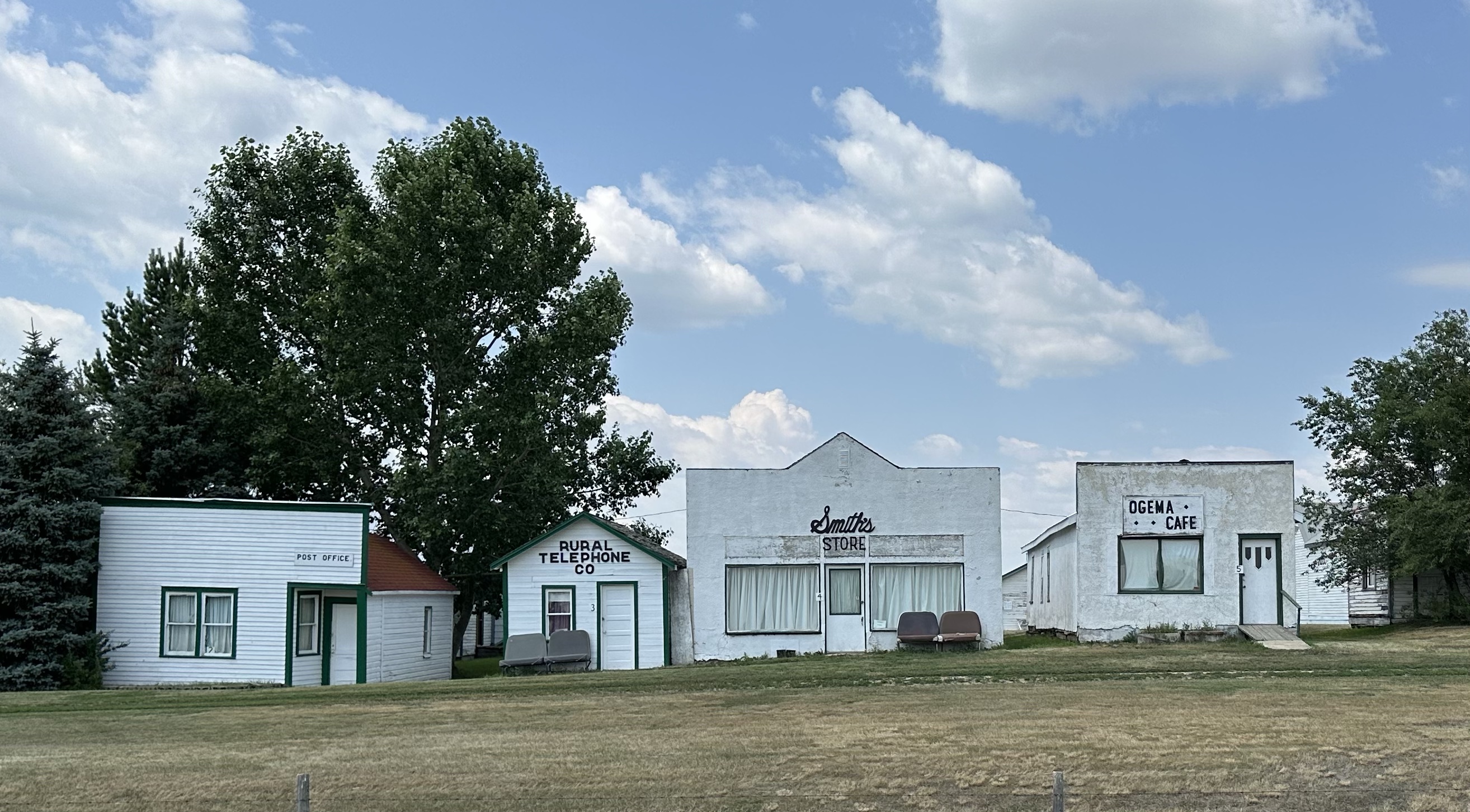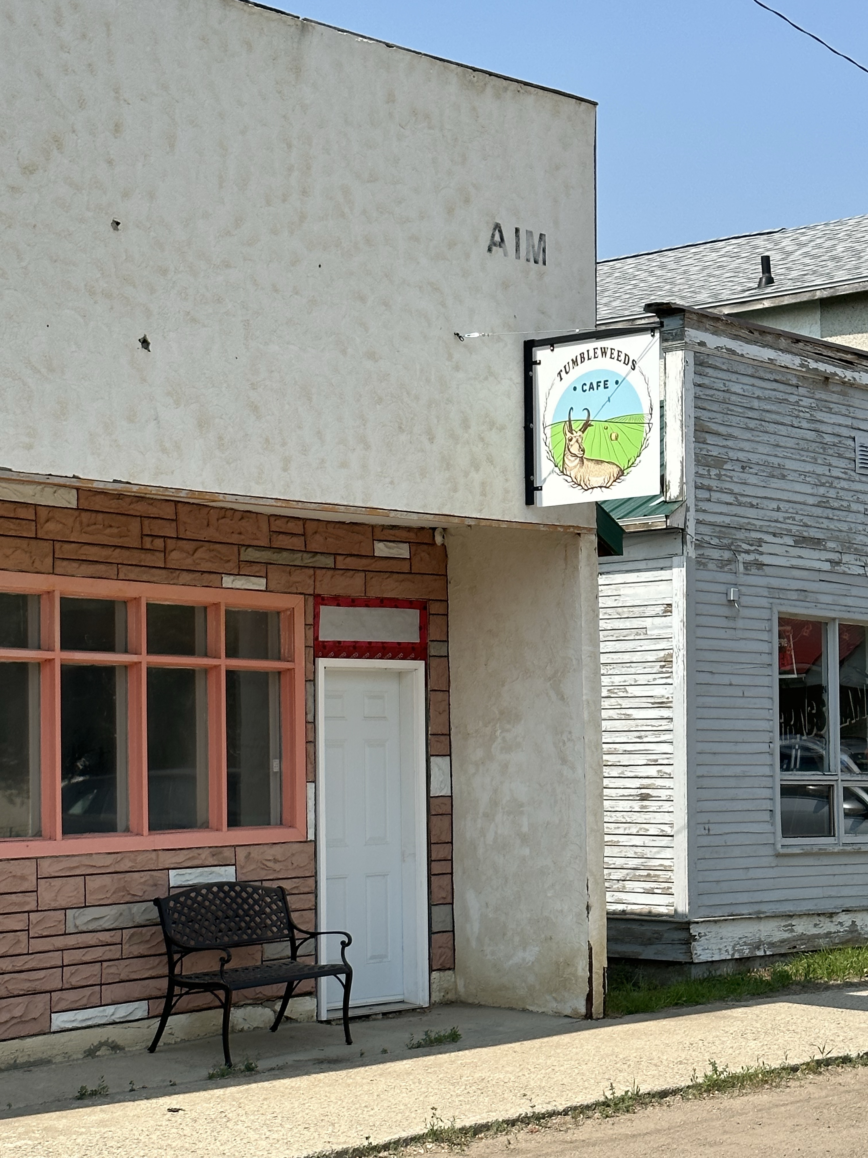 Invited by a knock on the door, Friday night was ‘Movie Night’ so we went to see James Dean in Rebel Without a Cause until the Midgies with a Cause got the better of us! Great little set up though, projecting onto the side of the towns 1927 grain elevator, in true drive-in style. After a visit to the local Saturday market, which sold soap, cookies and jewellery we visited the towns museum which was a fabulous representation of Prairie history. Well worth the visit to understand the stories of the original settlers and how life was in the tiny communities. On our town wander we passed the appropriately named ‘Tumbleweed Café’ (shut!)