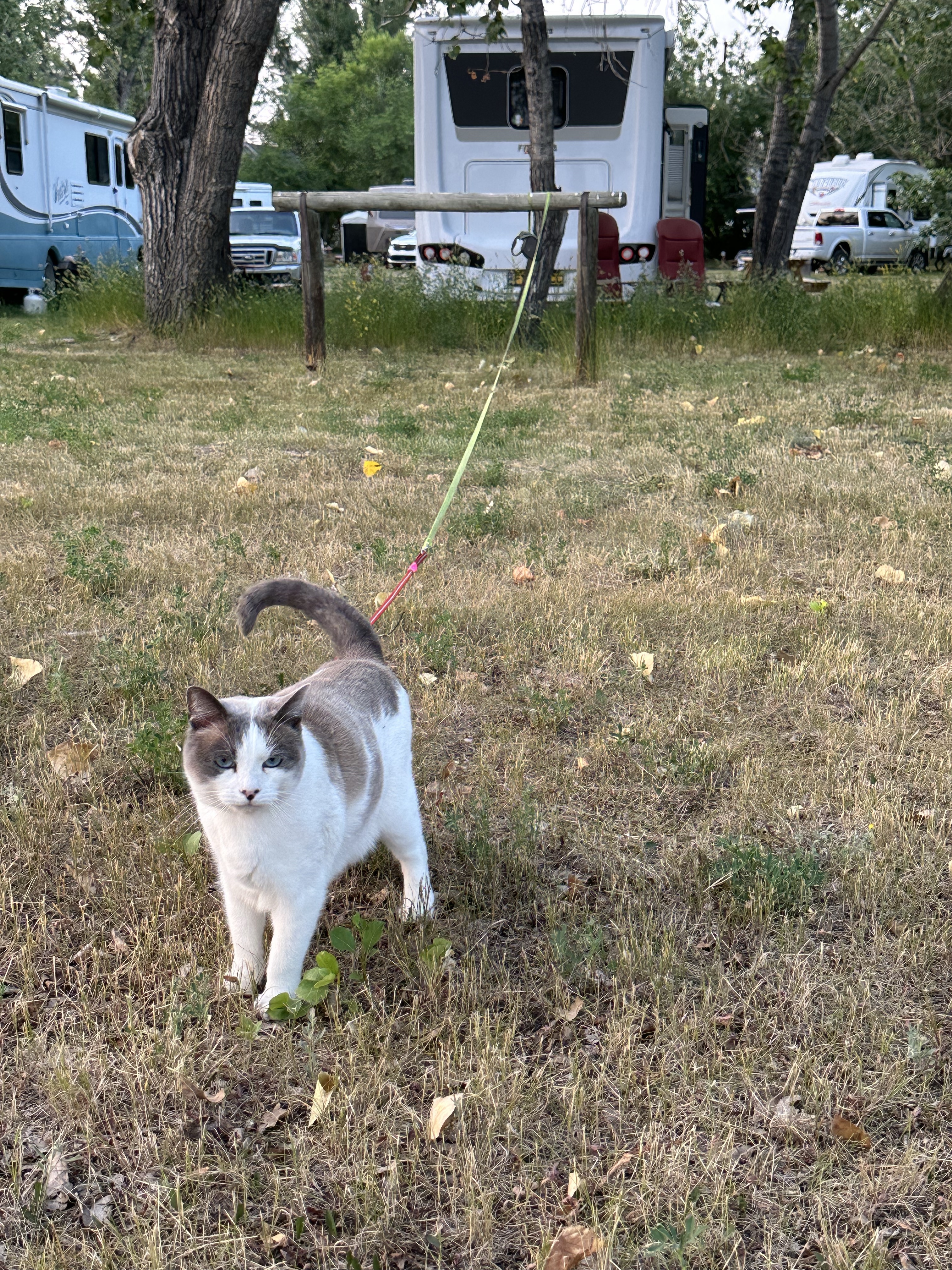That evening, we wandered into town where the ‘hoe down’ was in full force in the Palais Royale Theatre and the guests were nicely ‘corralled’ by stock fencing outside, we gave the gig a side shuffle. Heading back to the van we realised we were at the first campsite where there was a facility to tie up your cat/horse and where folks on horseback visit other campers!