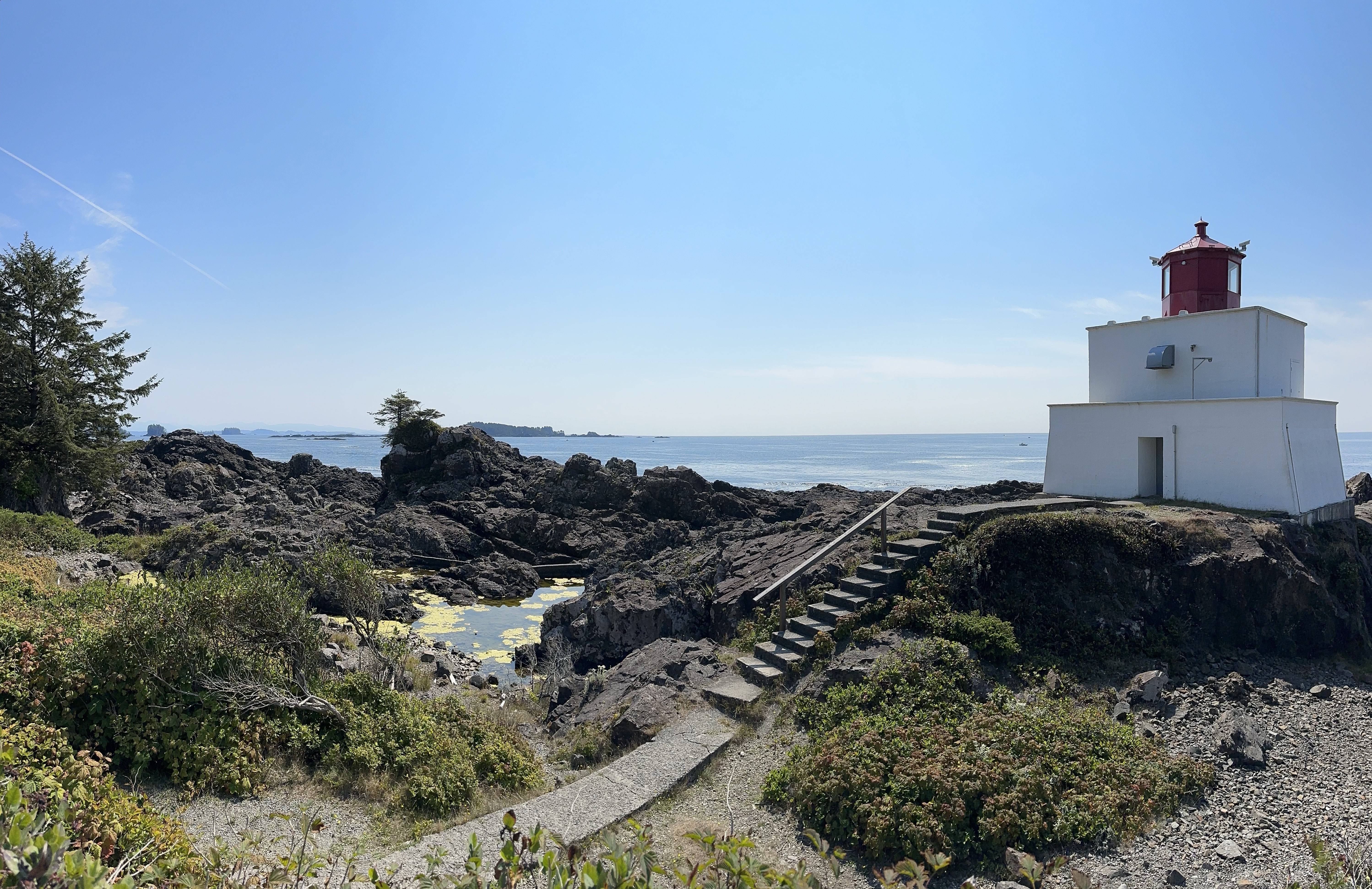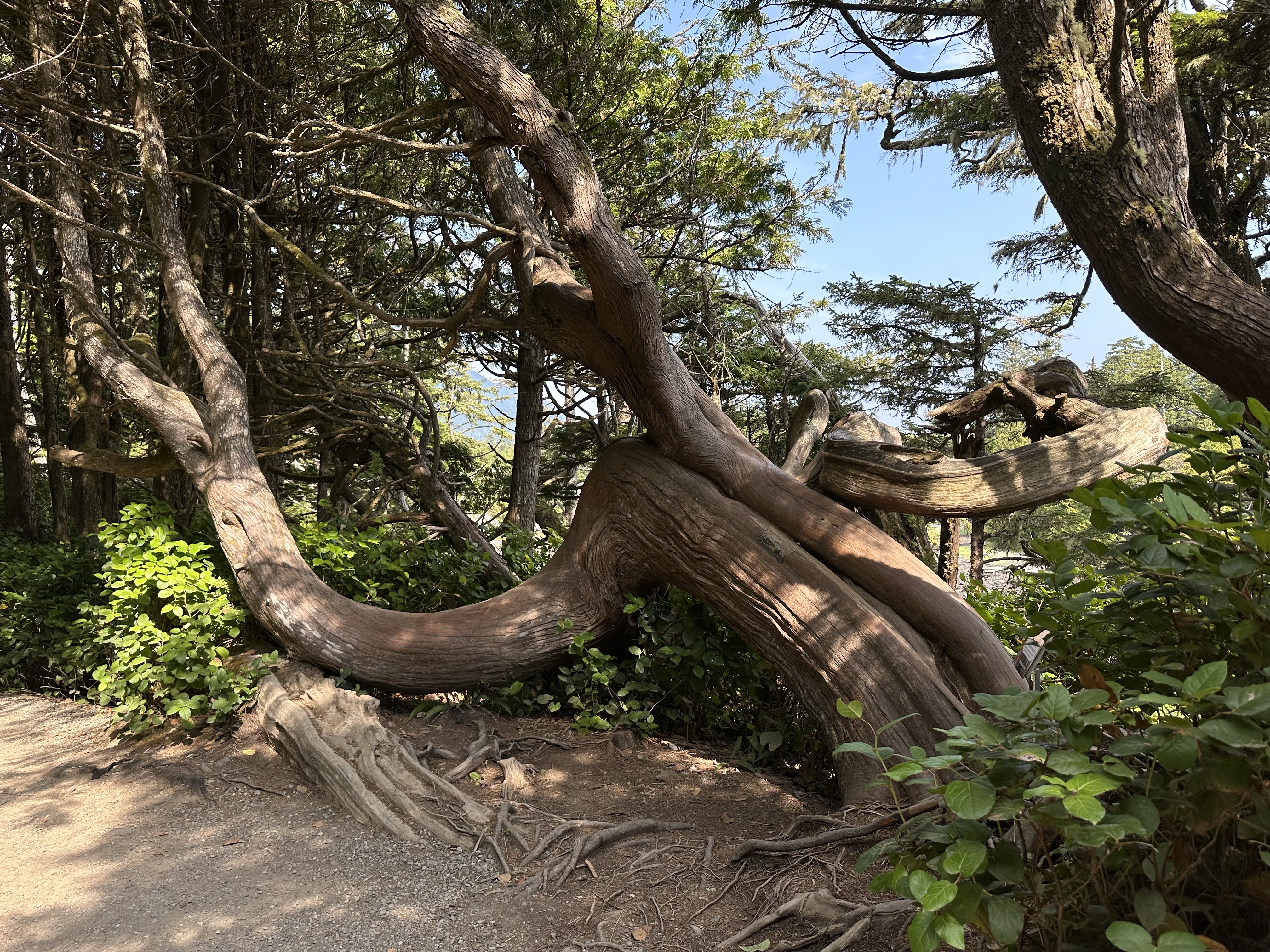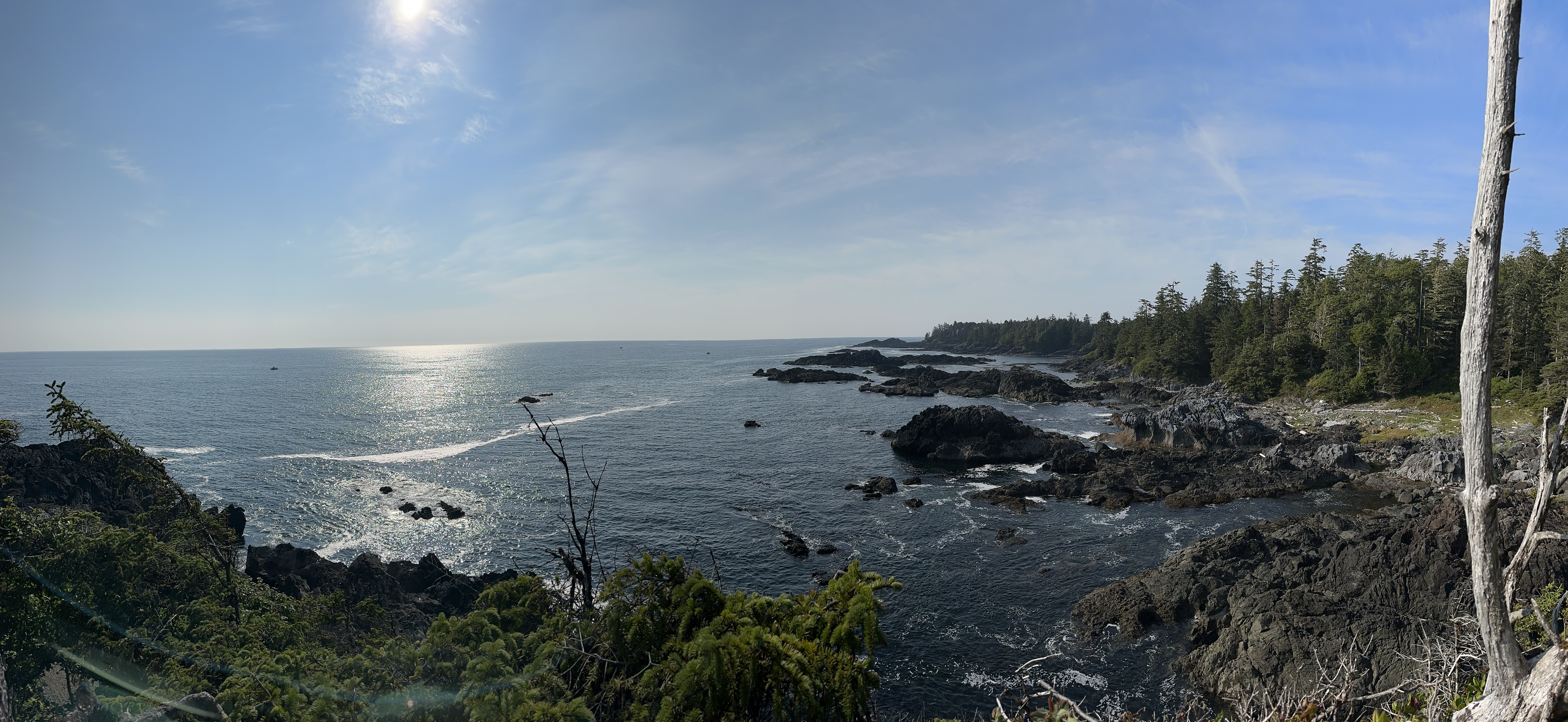 The Wild Pacific Trail is as fantastic as the name suggests. It had everything, a squat lighthouse, designed that way in 1915, to be able to weather the storms, great bike trails among the contorted, weather defined tree’s of the rain forests and some spectacular views over the rugged craggy coastline. We saw Bald Eagles and Sealions. It was magical, if the tree’s could tell their stories there’d be a book in it. The beauty of the coastline was immense, one of our favourite places, lots of bluffs, crashing waves and small rocky islands, a bit like Hopewell Rocks back in the early days!