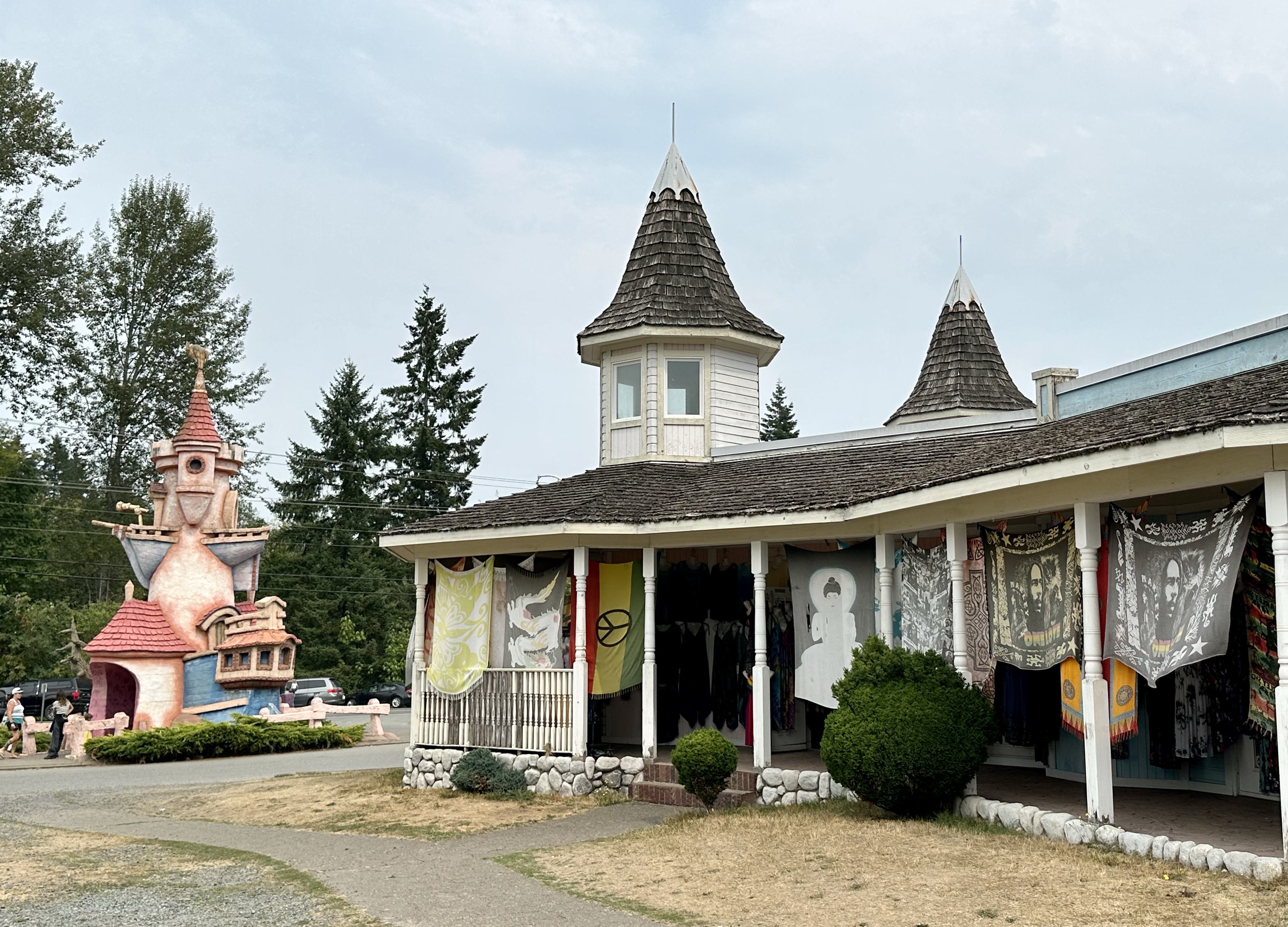 Organising ourselves around road closures and fully booked camp sites was a challenge but we feel we did ok. Different experiences at times, like the aroma of dope from neighbours discussing whether or not is was ok to put butter on toast as well as peanut butter, at 1am in the morning, can be testing though! Perhaps not too different though, to us discussing whether the local removals firm ‘Two Burley Men’ have any female employee’s and whether these days they need to rename themselves ‘Two Strong People of any Gender’…. live and let live anywayz! We wondered if the people who had the idea of a tourist attraction of ‘goats on the roof’ might have been smoking too when they had the idea but to be honest, genius! One hell of a draw, the goats bring people in their droves, to spend money there at Coombs Country Market, in the tourist shops, the cafe, the food market….. a pretty odd place, random sculptures, a mini Disney castle and random buildings, quite surreal. Had to laugh when I heard someone wonder out loud about why they watered the roof…. Off we headed to Parkersville to find Penelope, and ice cream.