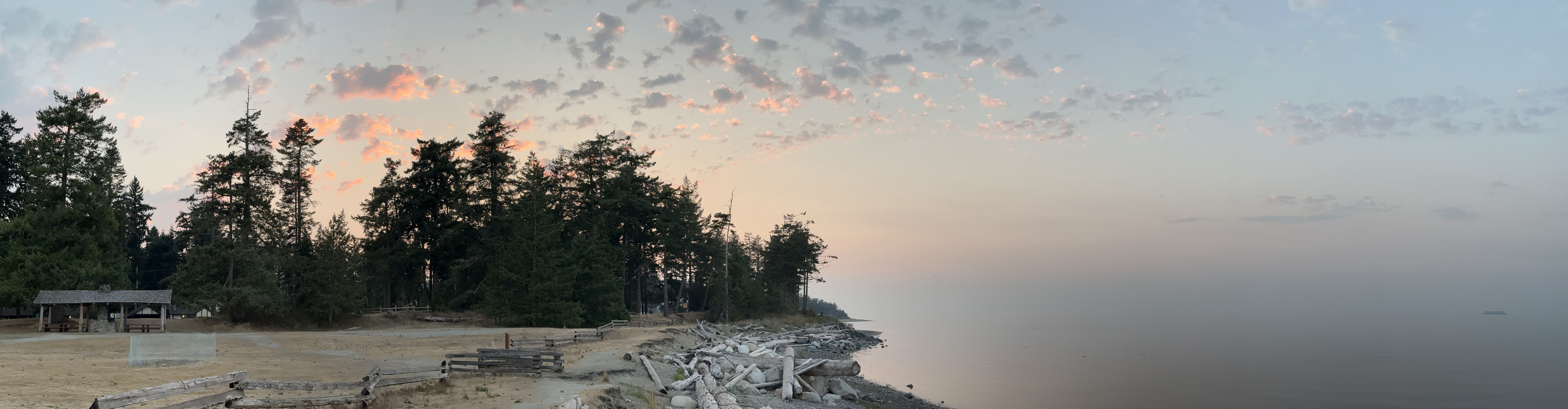 Our final resting place on Vancouver Island was a super find, Kin Beach Provincial Park, right on the water (Strait of Georgia) so we had a great wander along the beach, picking our way through driftwood and wondering what was out to sea… the reason being we couldn’t distinguish the water from the fog. Not sure why this area is part of whats known as The Sunshine Coast to be honest, not on that day anyhow. A local, Dale, told us it’s not always like that, as he told us we could park on his driveway if we returned!