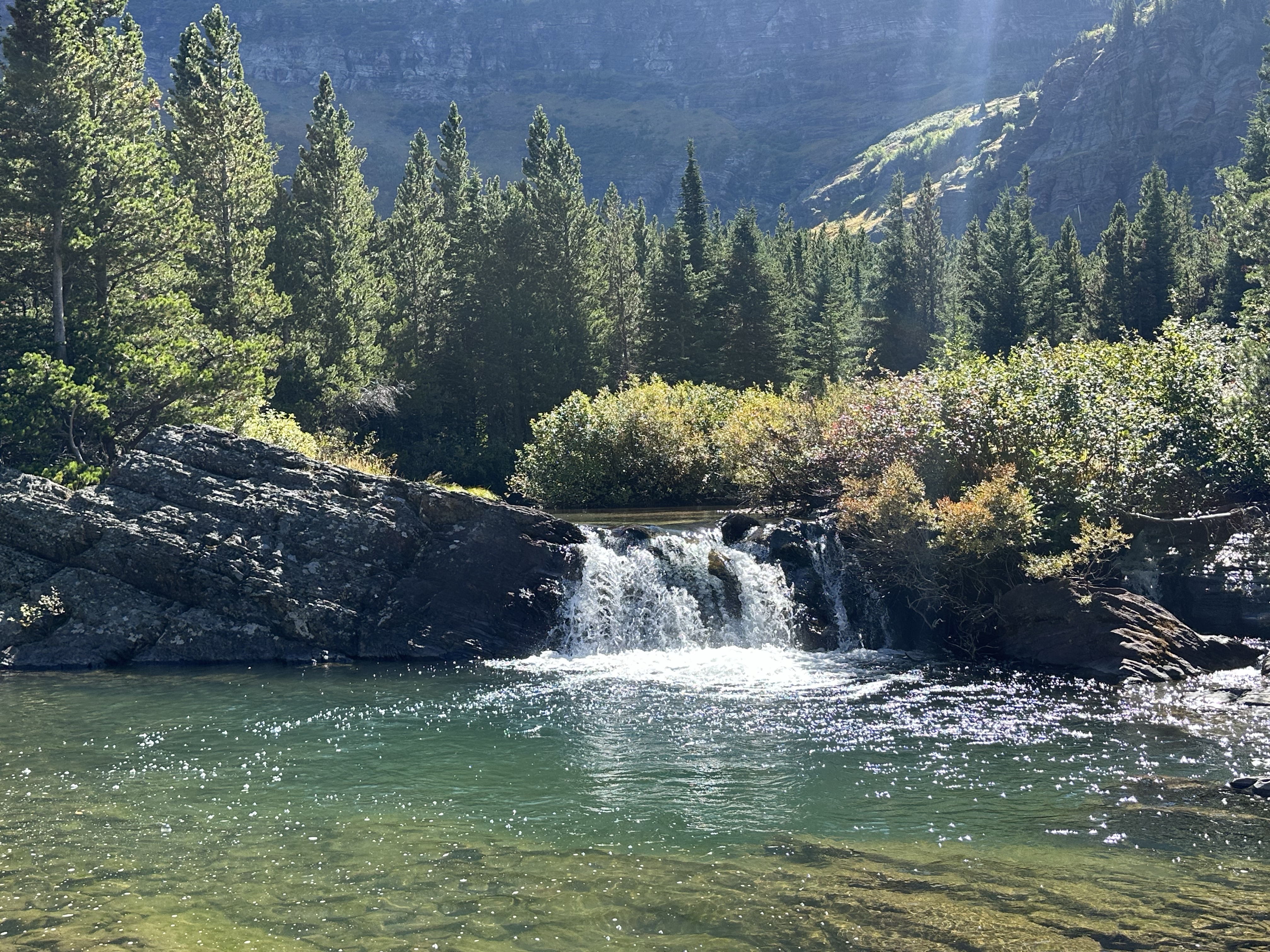 Crossing into Montana after 4 months travelling in Canada, we’d no idea what to expect. We’d been so enthralled in Waterton, crossing the border into Glacier felt a bit meh! Just while we settled ourselves though! Glacier National Park is kind of the other half, south of the border, to Waterton but it’s very different. Everyone had said do the ‘Going to the Sun Road’ as it’s spectacular. Sadly, size being everything (especially for American RV’ers) we are half a meter too long and too high. It’s a tricky drive in a car by all accounts and we didn’t want our roof ripped off by an overhang. Nor did we want to pay £120 each for a tourist bus with its get off, take a snap, get back on theme. So that’s for another time. Instead we headed to Many Glaciers Road for a hike. Sadly again, this is an oxymoron, there used to be 146 glaciers in the national park and now there’s 26 and looking at them, we suspect the road may have to be renamed in the not too distant future. It was a great hike though and the scenery was stunning, even with such small deposits of ice. The water levels seemed very low but we’ve no benchmark as to what’s normal. There was plenty over the falls though. On the way back, a distant black bear no. 8 🙂