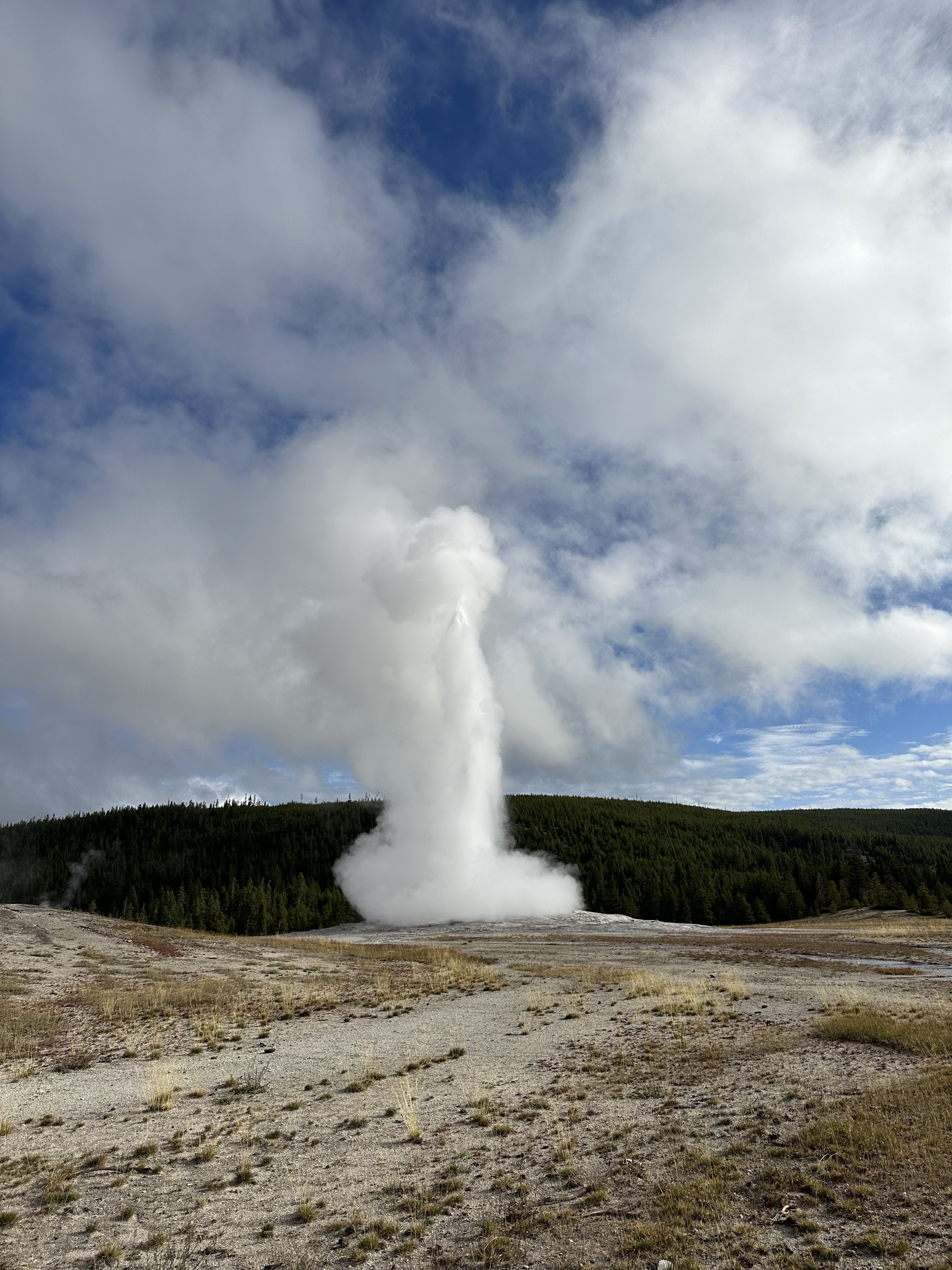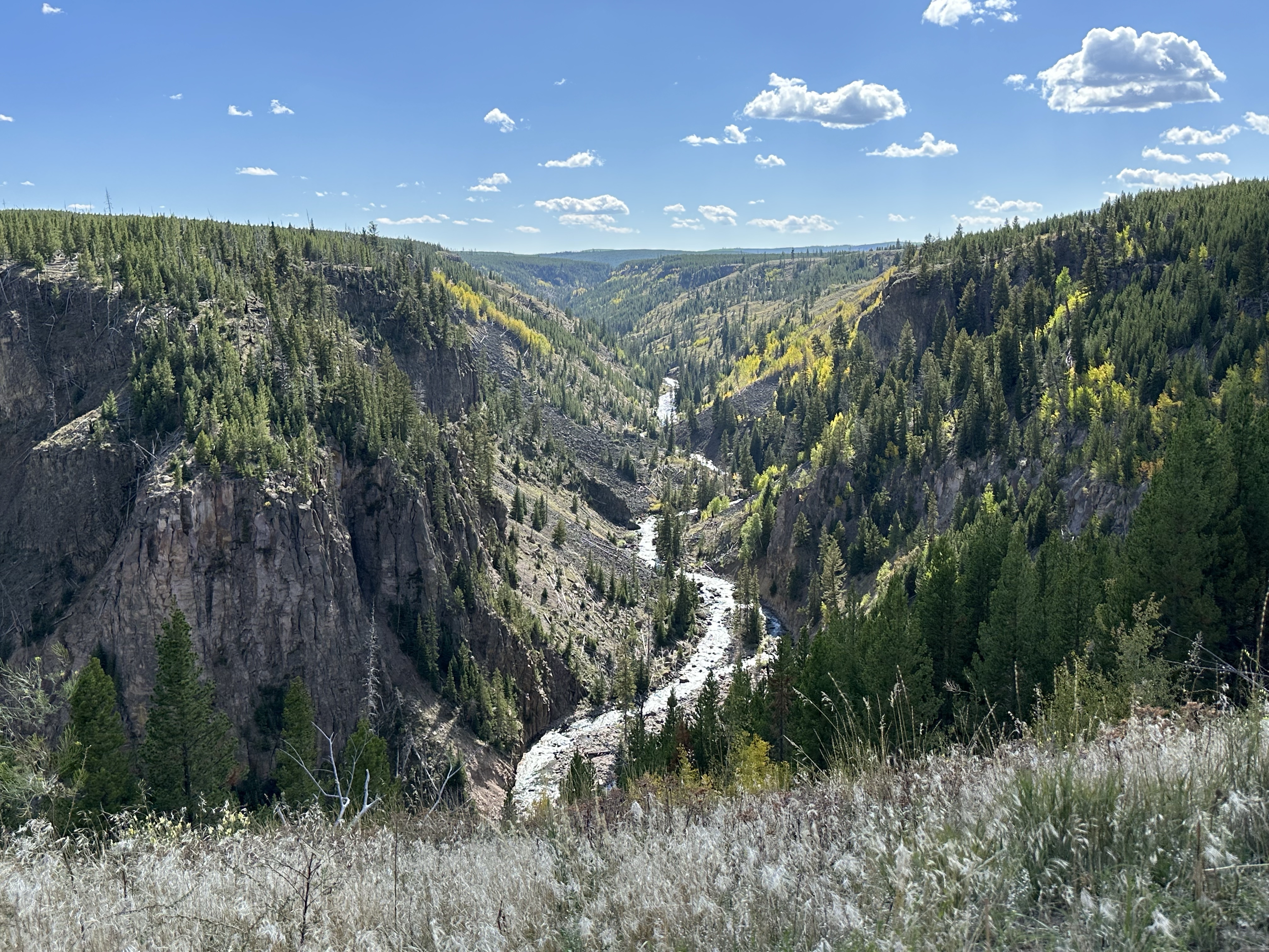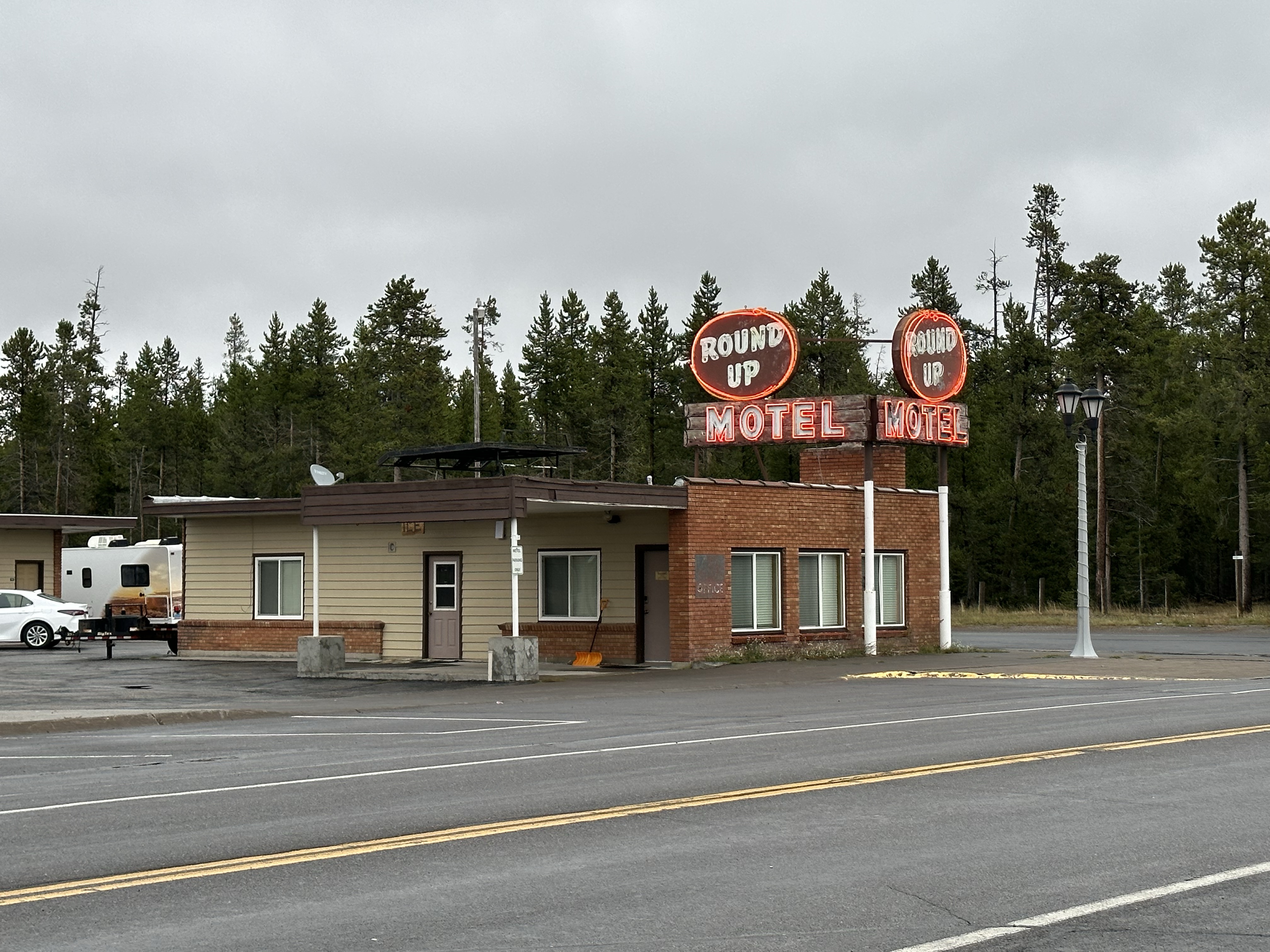 Heading through Montana to get to Yellowstone was as expected, but not a cowboy/girl in sight. It was the rolling fields and trees we’d imagined and undulating valleys. Climbing to 6000ft a couple of times then dropping into really wide valleys there was an immense scale to it, but boy it was barren of life. In parts it was very dry, not what we’d expected. It’s one of the least, per acre, populated states and it showed. We passed through some small towns on The Blackfoot Trail reminiscent of the late 1800’s boom trading posts, wooden slatted building frontages and a brick built bank for example. Having seen not much for a long time we hit the metropolis of Helena and then Boulder. The state was becoming more agricultural the more we drove, black cattle dots grazing in the expansive fields. Of cultural note, we were seeing a lot of “not even once” signs, a reflection of the fentanyl plague across the US.