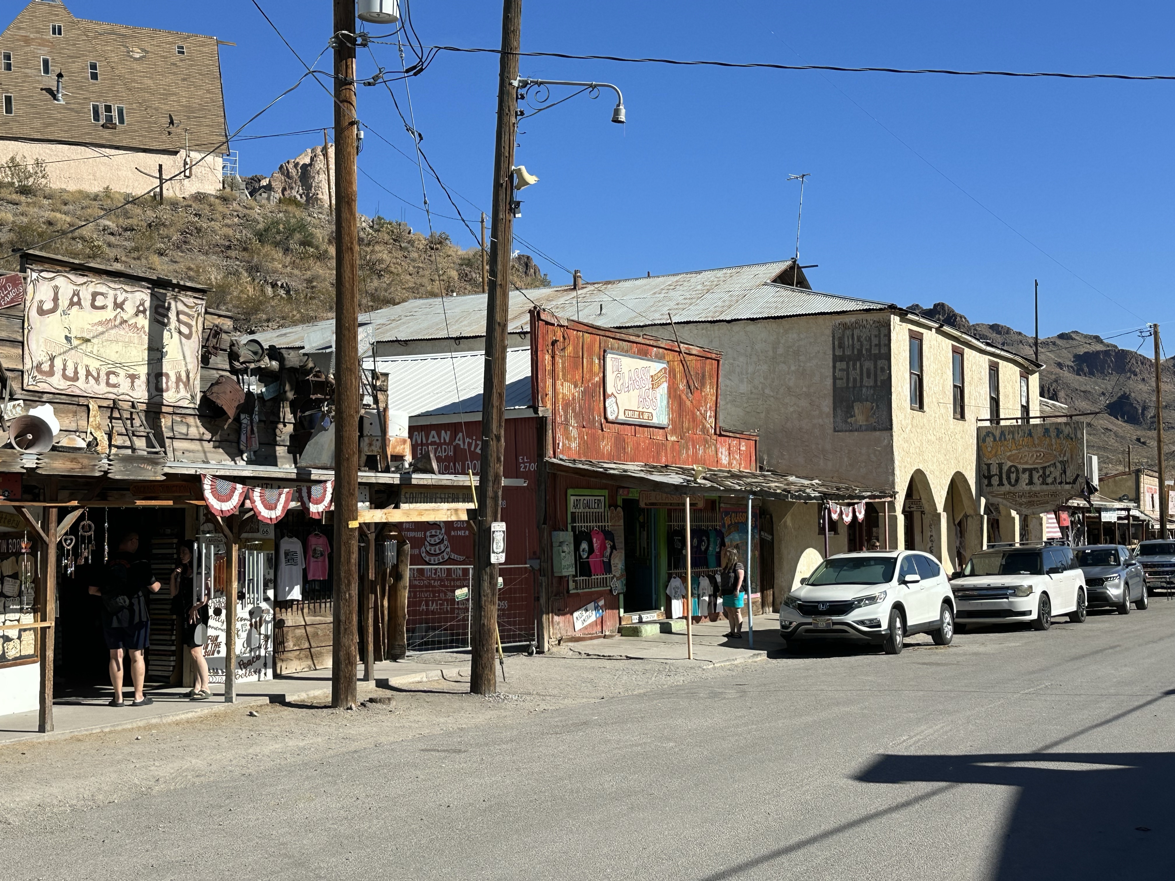 Oatman has origins from 1876 when, like many other places around the area, gold was struck and towns sprouted up for the ‘rush’. The burro’s, used as part of the mining process, are a throwback to the times and were abandoned when the mines closed, 25 years later, to be fed by tourists instead. Most of the buildings appear authentic to be fair but the place is shabby. If you are in need of a T shirt, crystals or wind chimes then it’s great. To be fair, it’s trying to hold on to its Route 66 legacy and is busy enough. Clark Gable and Carol Lombard honeymooned there so it must have something to offer…. the hotel is now an ice cream parlour with the bedroom museum upstairs!