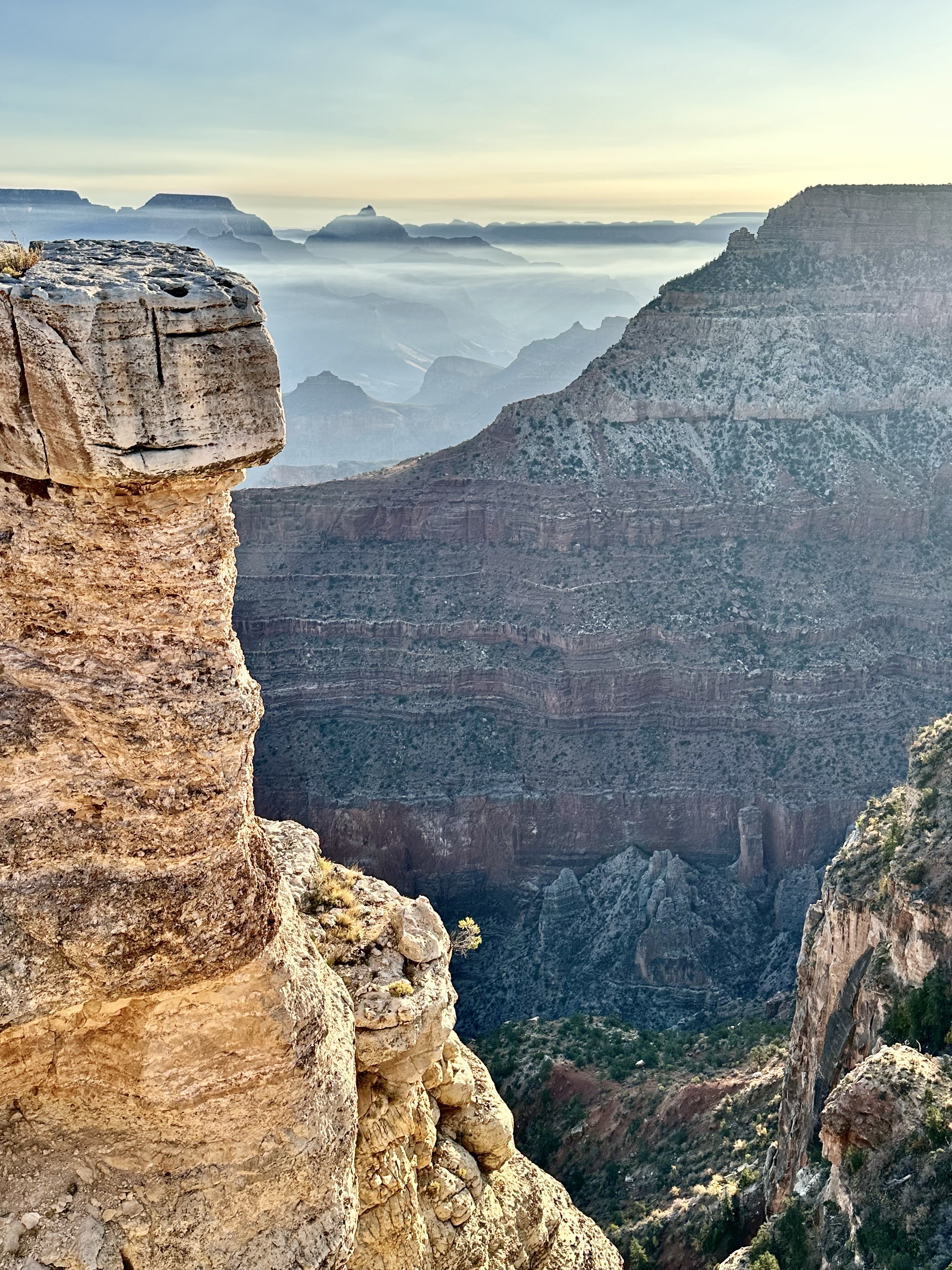 Sadly, sun up is early ( 🙂 ) so we set the alarm and cycled to Mather for sunrise, it was lovely and quiet! Then to Yavapai before a much needed coffee. From there we cycled c 25km around the south rim which has numerous view points. It was a great way to see it, rather than the hop on hop off tour bus style and we did it at our own pace, slowly. To describe it as immense is an understatement, it’s scale is quite difficult to wrap your head around and find any kind of perspective, versus anything else we’ve seen. So much so that oddly, canyons like Grand Yellowstone are more appealing. GC is 1 mile deep and can be up to 18 miles across in places. The rock colours are strongest early and late. Its fascinating to see the green tree covered flat lands and prairie lands which come to an abrupt halt at the sheer drop at the rim cliff edge. All in all, a great day on the bikes, sidestepping tourists and seeing the great wonder in all its glory. Difficult to take pics but you’ll get the gist! We didn’t stand in a queue for a photo on a rock by the way but it was fun watching everyone else! The lady in the pic was just fabulous! I aspire for her vibe!