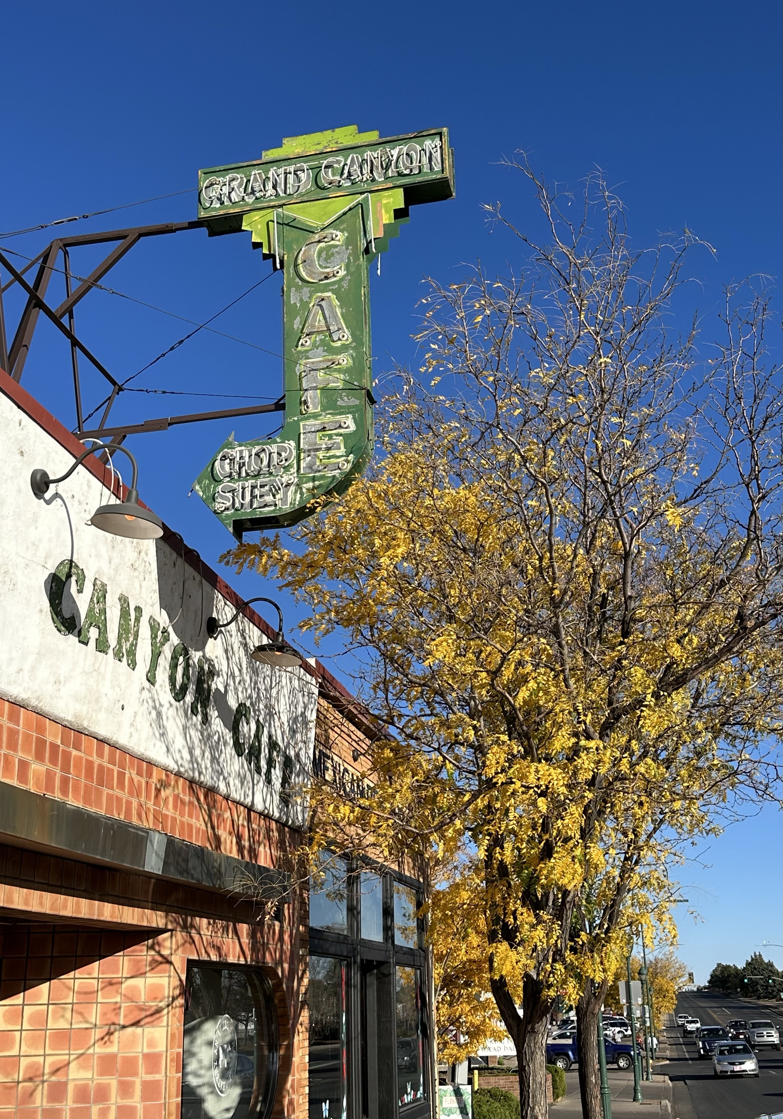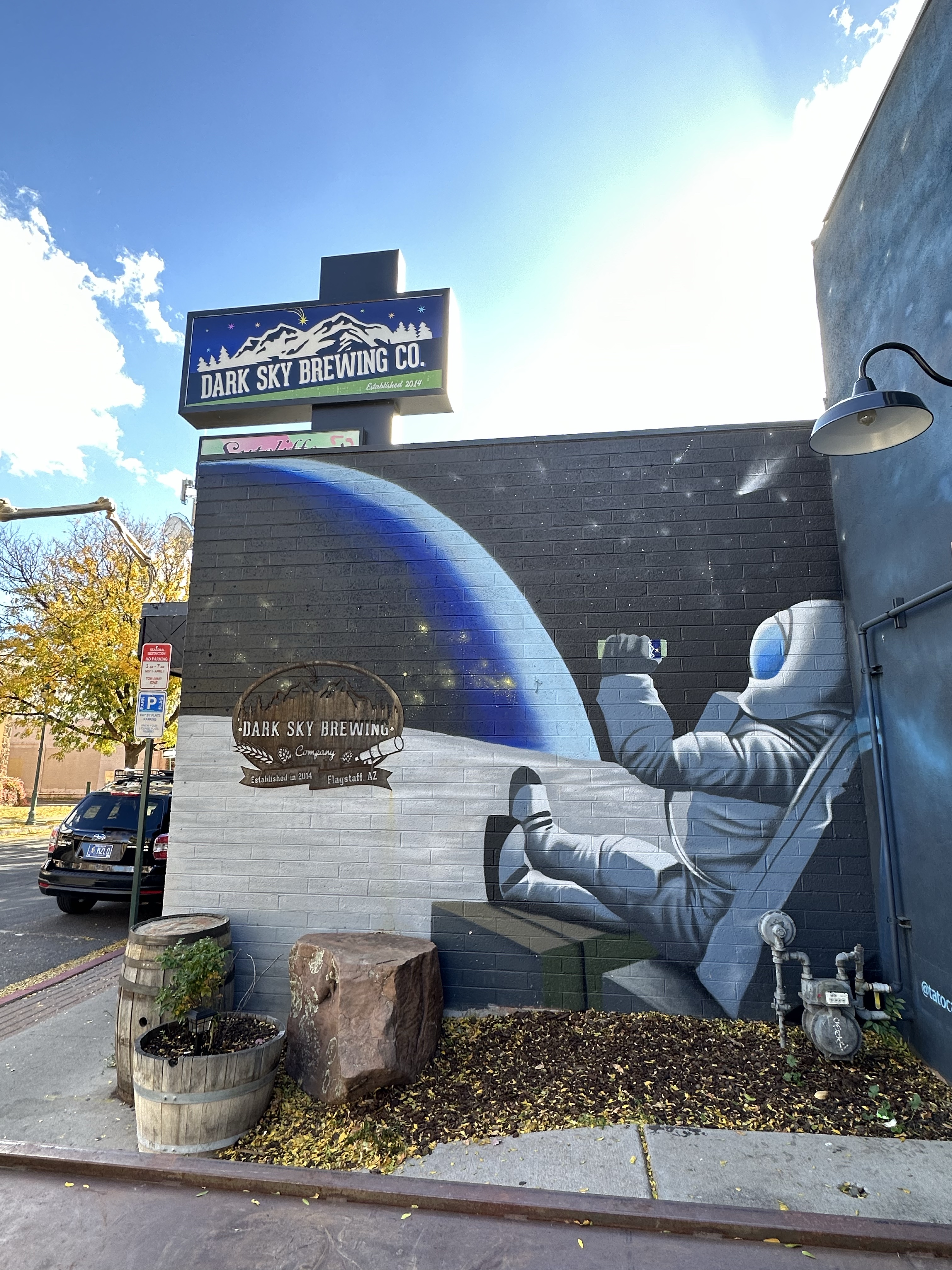 We spent some time wandering the old town area, a fabulous buzzy area, lots of coffee shops full of students on lap tops on a Sunday… do Uni students not take time off these days?! Some had clearly been there a while! So much so that it wasn’t easy finding one with two chairs for us old timers. Anyhow, a really great place, lots of street art and a shop that admittedly sold plastic junk (see pic) and some brilliant, fun, stickers and all sorts of ideal Christmas gifts! Flagstaff has done a great job of preserving its old downtown, not in a kitsch way but very authentic and without feeling overdone.
