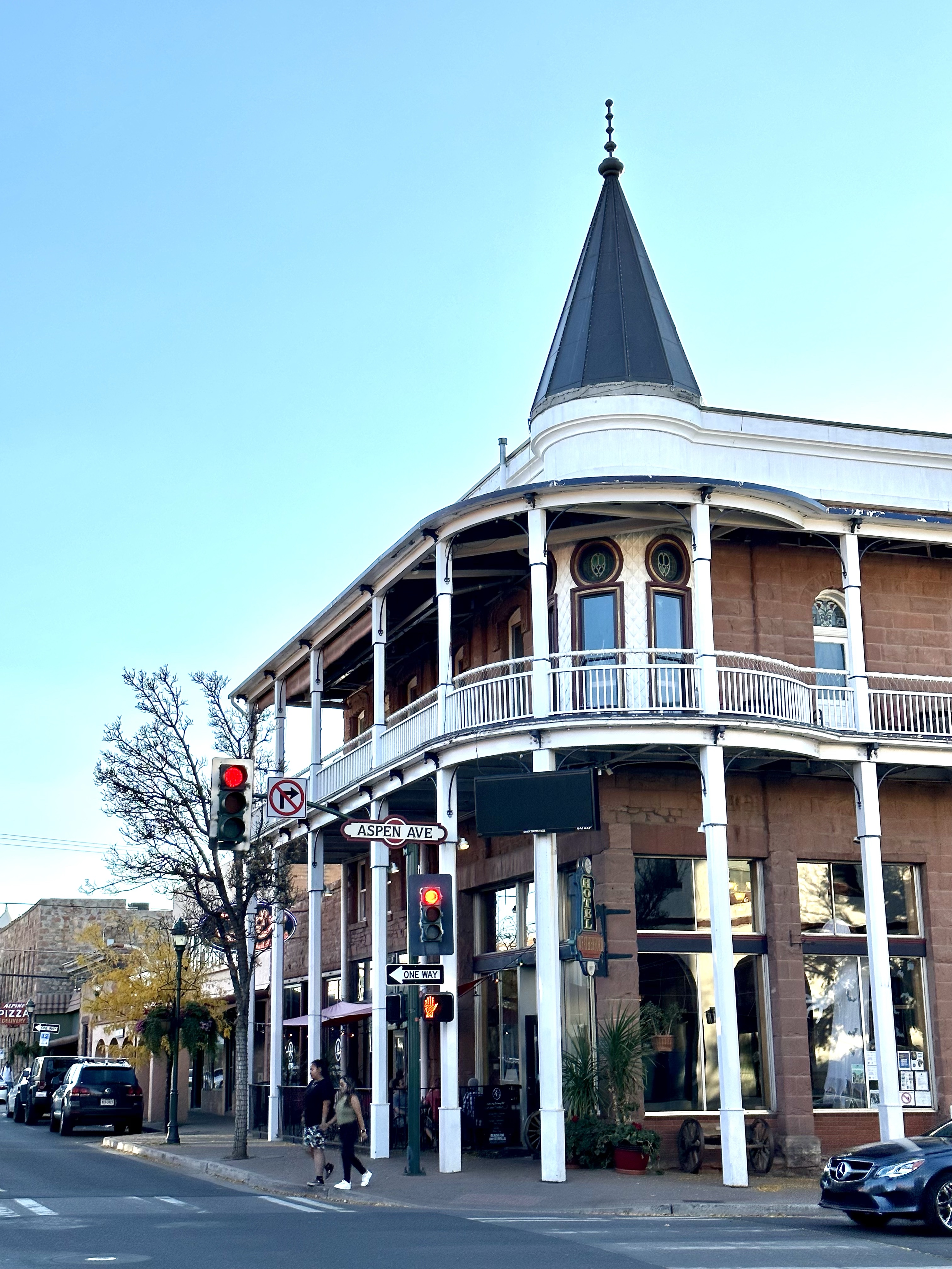 Away from GC and into the Coconino Forest en route to Flagstaff. At higher altitudes the landscape is more lush and there’s more farming. Literally, over the crest of a hill we went from forest to a stunning yellow gold prairie landscape with ranches, immediately feeling more upmarket. No RV living all of a sudden and what we’d call proper housing. Then more forests and then Flagstaff itself, a busy and vibrant student town. Lots of ‘Fall’, oh OK, Autumnal colours, the yellow fluttering leaves on the white trunked Aspen were glorious, among the darker green evergreens. Flagstaff is an all year round playground, skiing and winter sports to hiking climbing and biking.