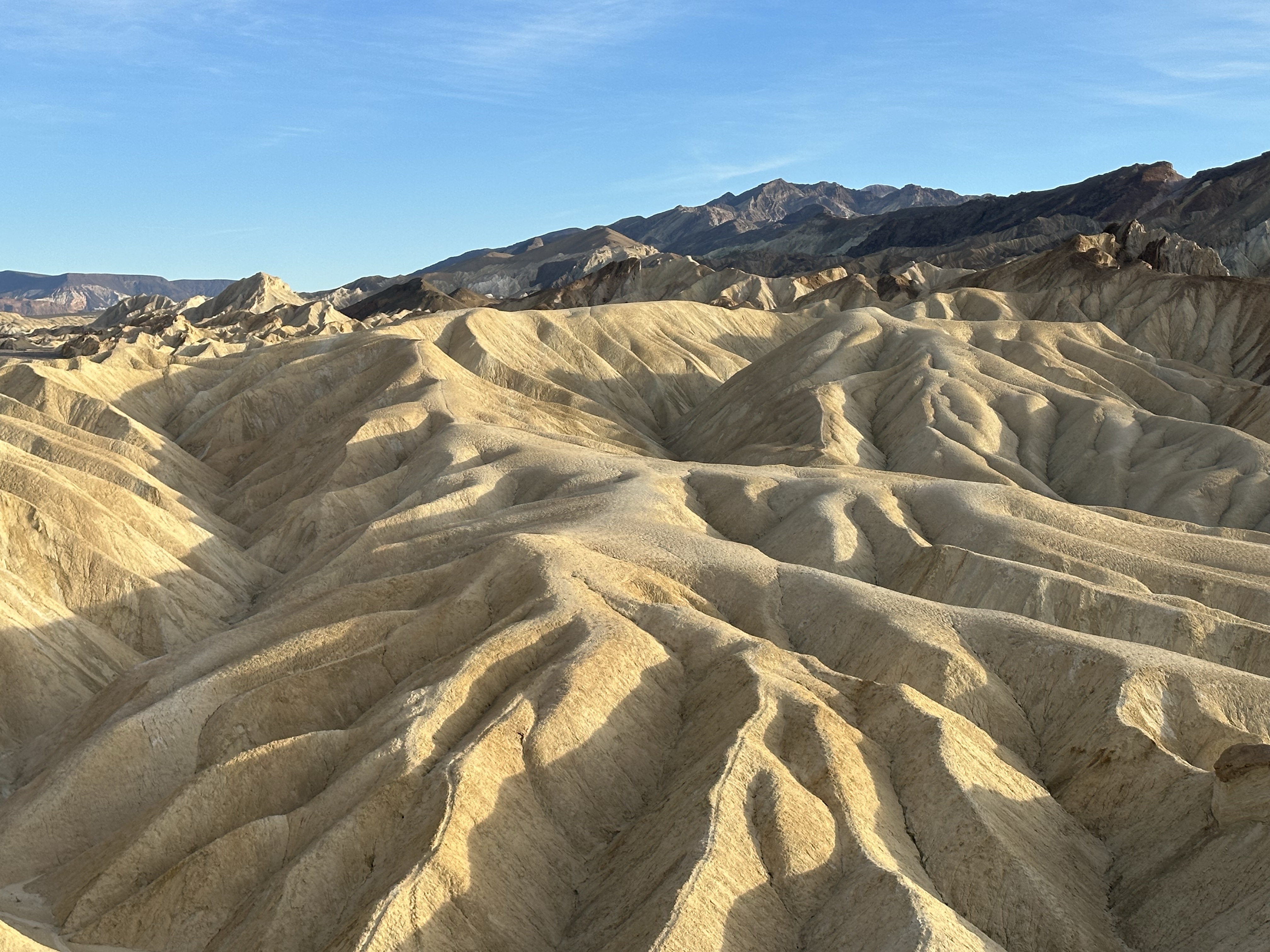 Zabrinskie Point is higher in the hills, a look out spot within the eroded sandstone. There’s gorgeous rock colours, soft golden hues and stripes of minerals. A unique spectacle.