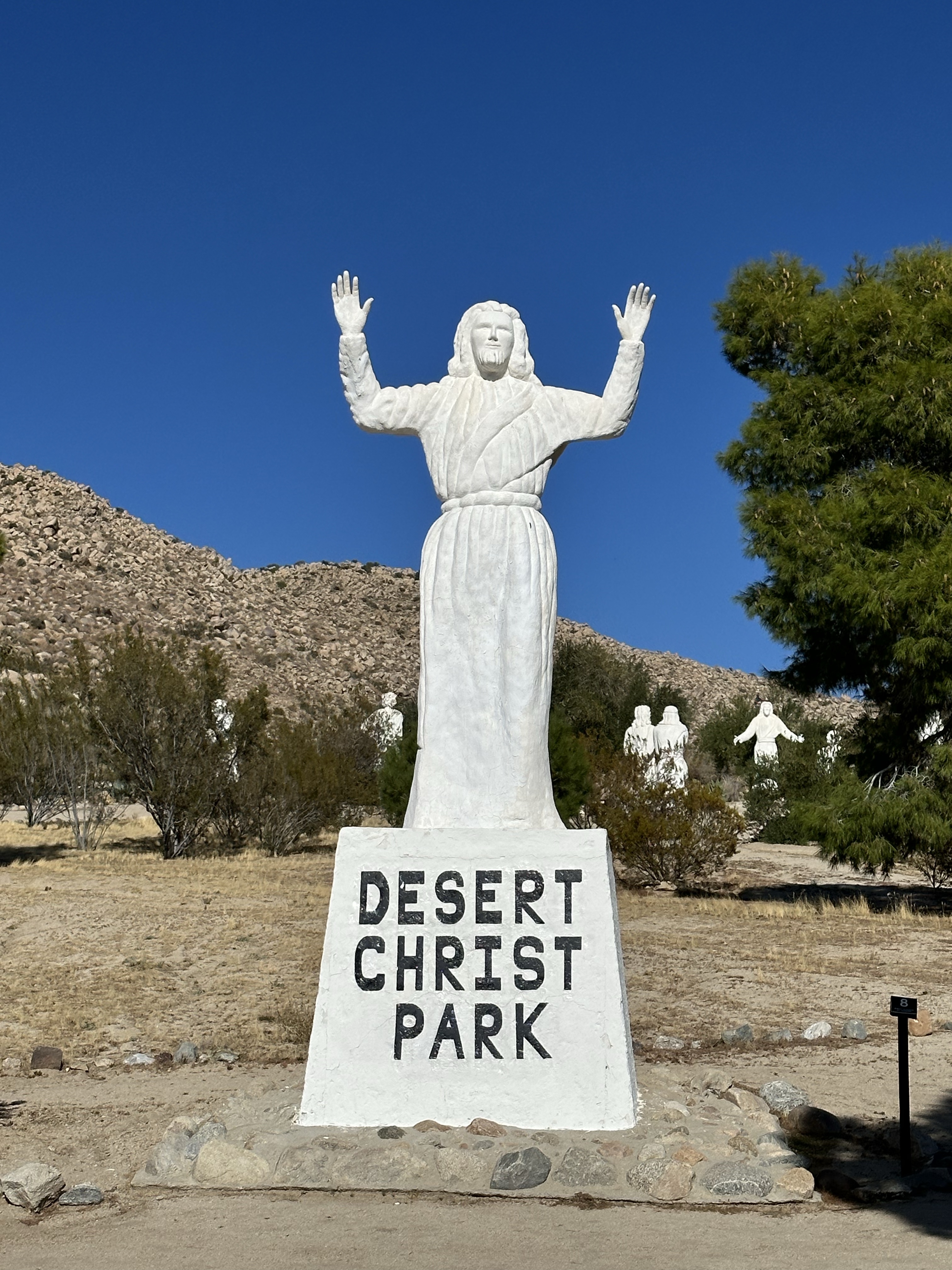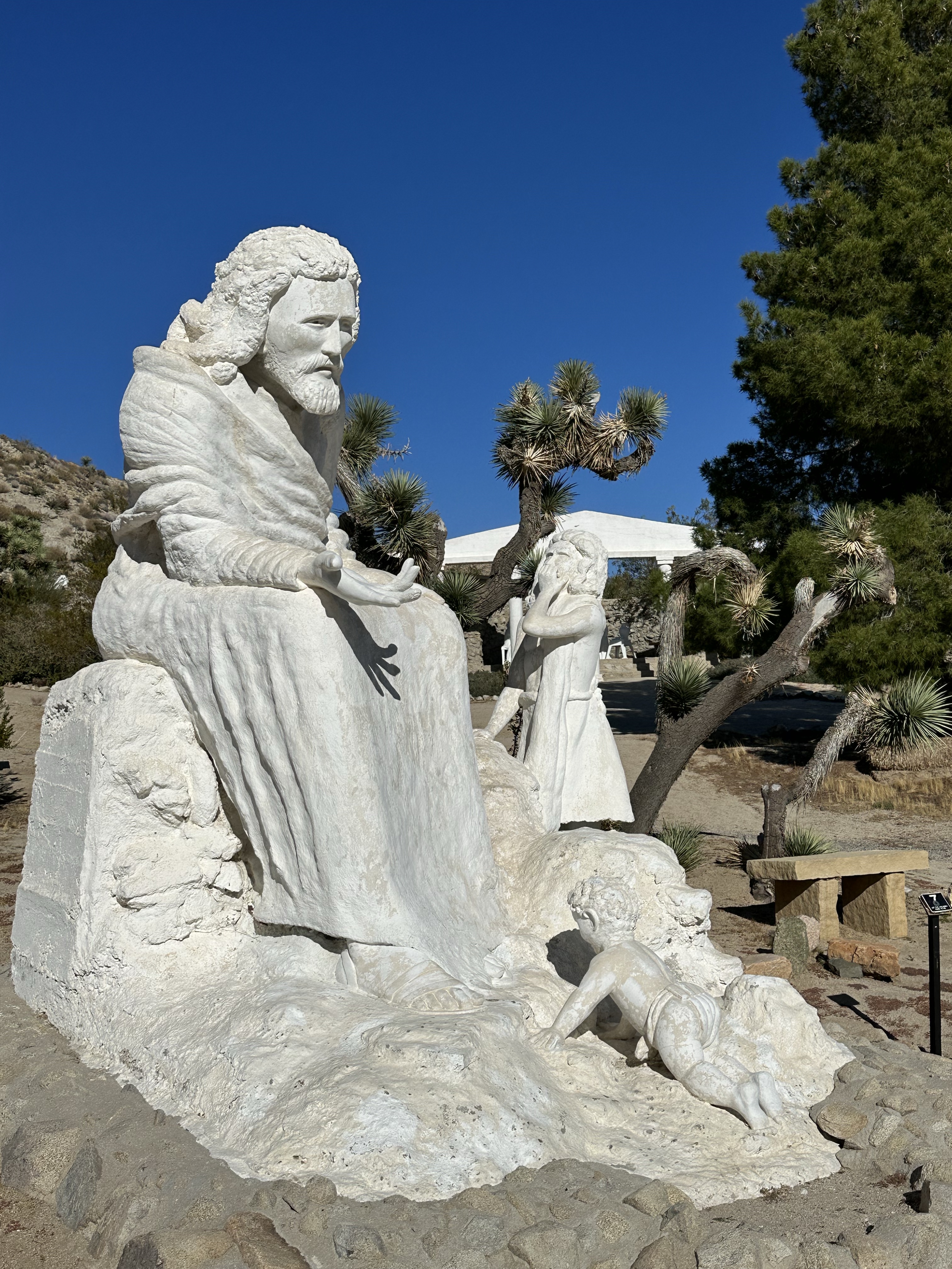 Heading towards Joshua Tree we found another unique place, Desert Christ Park, a ‘sculpture garden of hope, prayer and beauty’. Opened in 1951 in The Yucca Valley, the sculptor Antone Martin worked with the local reverend to create a park for peace. Numerous Statues adorn the park, all very expressive and serene. All reflecting key biblical stories. Unusual as a place and seemingly not well trodden, a shame.