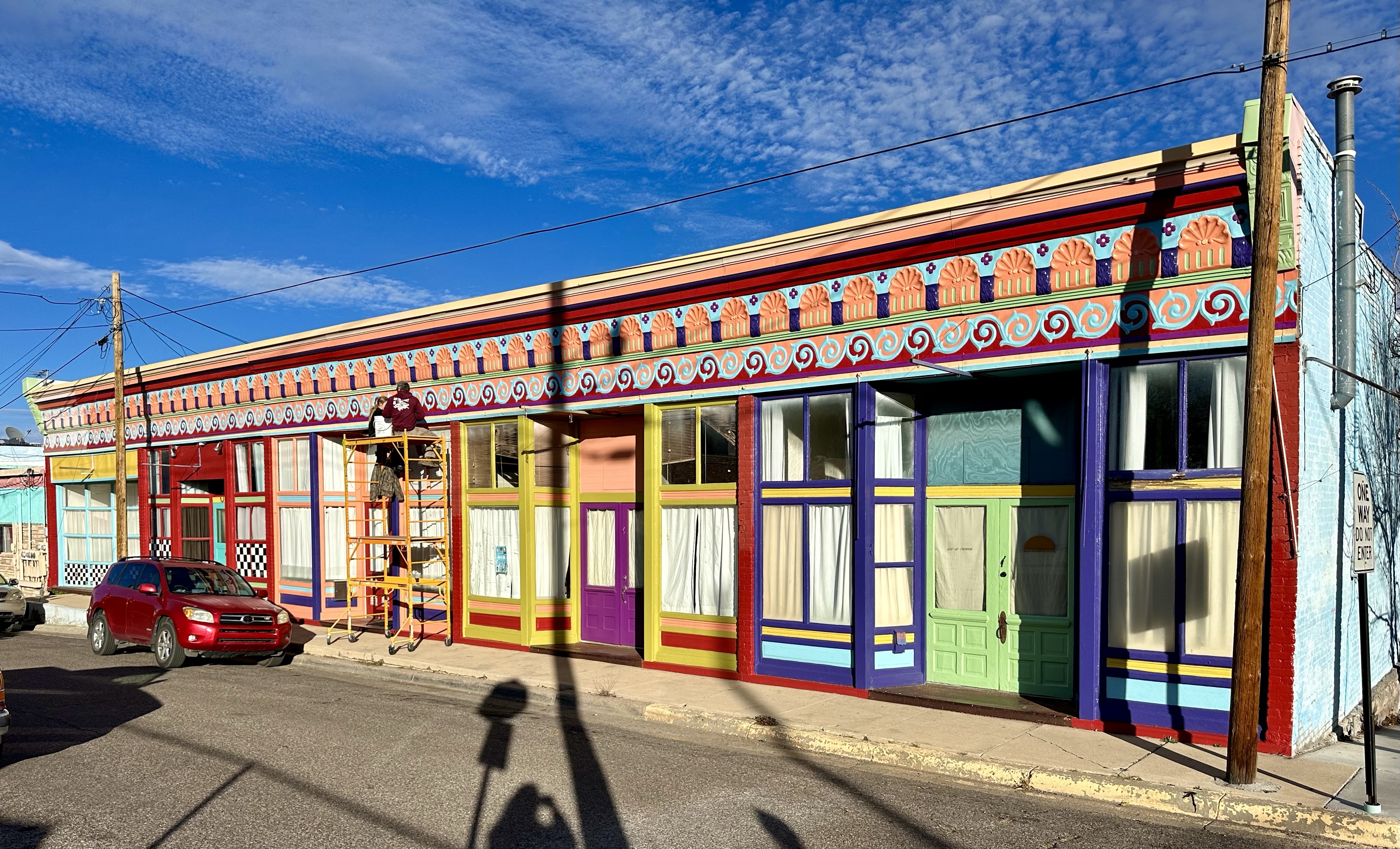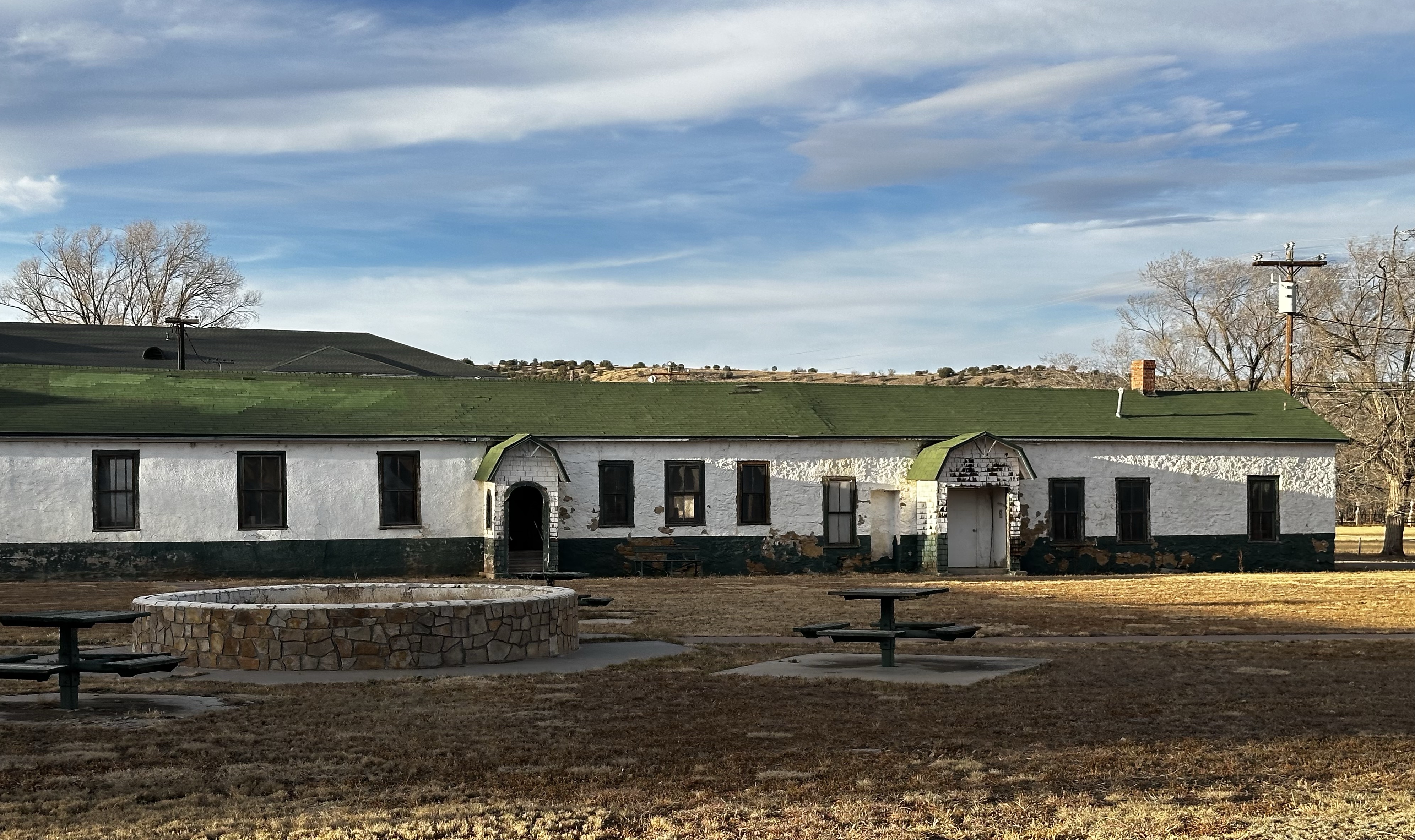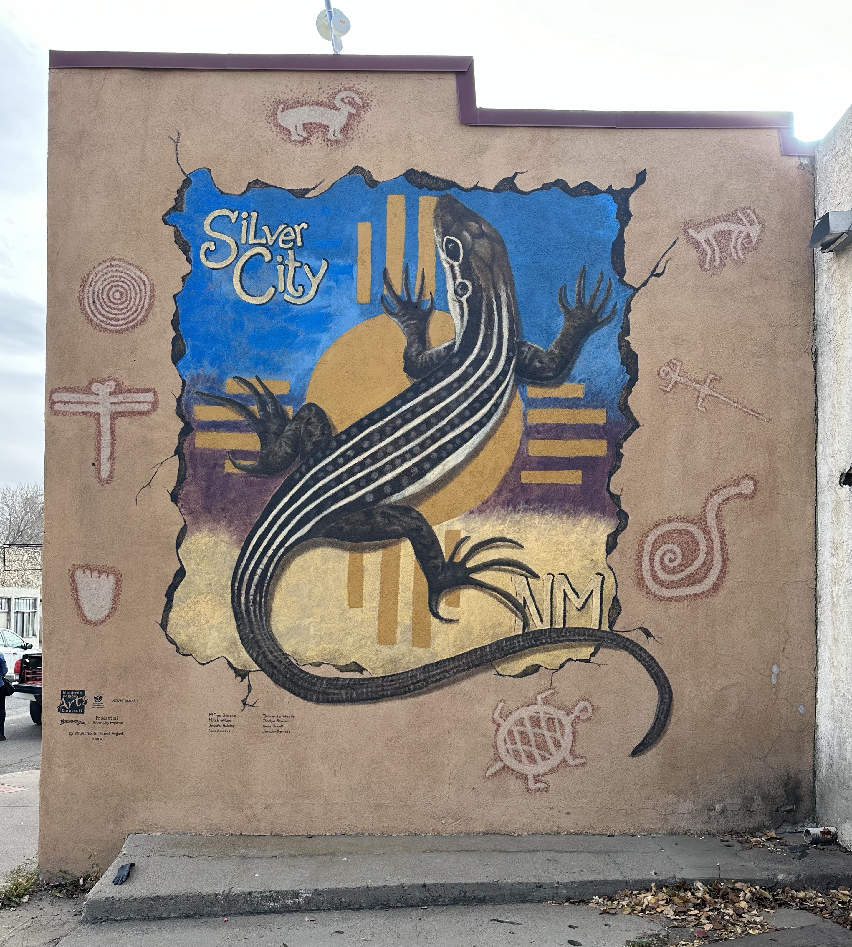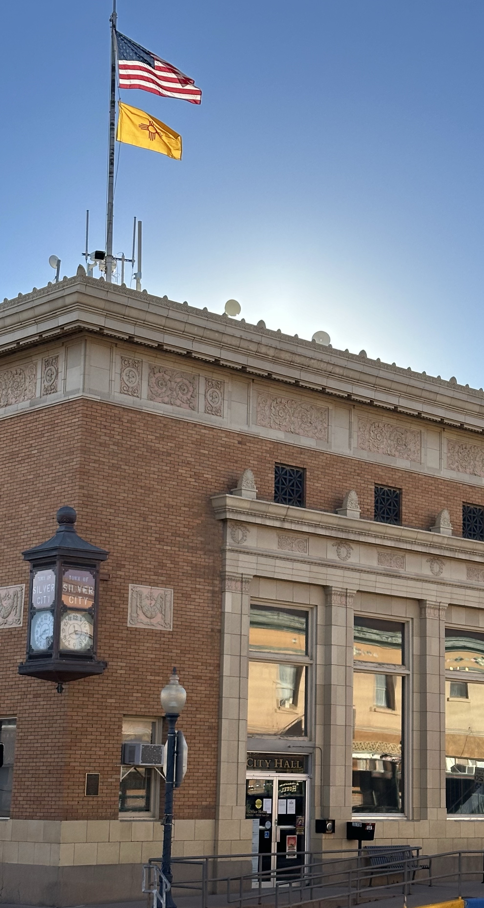 Arriving at Silver City we were immediately struck by how wintery everywhere had become, leaves off trees, cold bite to the air etc. 6000ft, to be expected really! Hardy as we are, although I’m Laurel at times, we set out for an explore. Silver City was originally an Apache campsite until, yes, copper mining and the Spanish arrived. An American Civil War later, it developed and was founded in 1870. Silver deposits found, it had a reputation for lawlessness. It was the first ever place of arrest for Billy The Kid (who escaped!) and Butch and his Wild Bunch were regulars in the hostelries. The town doesn’t need to live off its Billy past though, it’s an interesting place. The buildings, like the magnificent City Hall with a gorgeous clock and the historic home museum are very different. The coffee shops are quirky and there are Spanish architectural styles and lots of colour, even if a cold, grey day!
