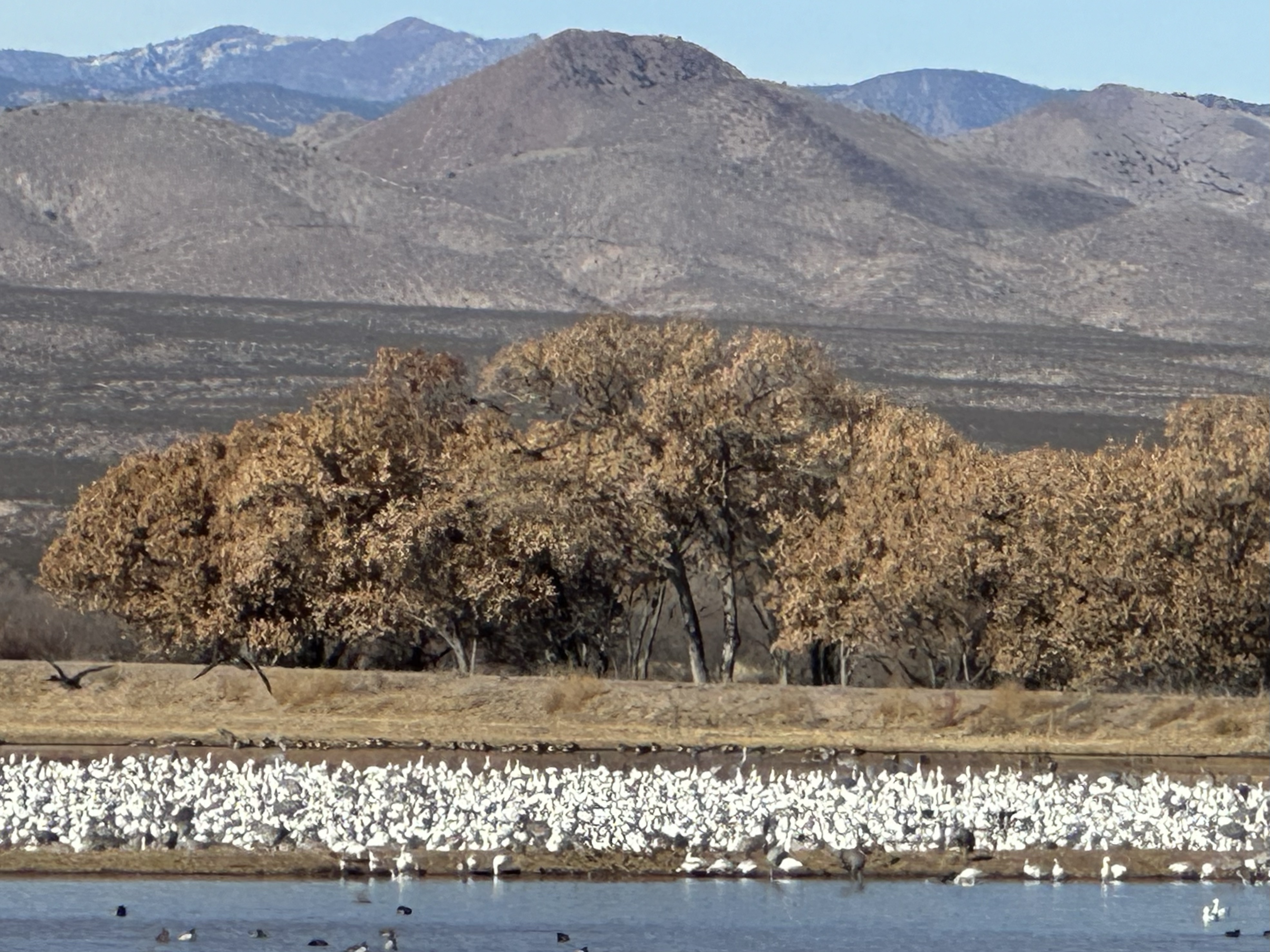 New Mexico has a great approach to the natural world, ATV’s are banned from their state parks, tick. Bosque del Apache National Wildlife Refuge is well know for its bird migrations and its wildlife so off we went, becoming bird nerds again for a couple of days! Opened in 1939, at this time of year it’s busy with very early morning and dusk views of Snow Geese and Sand Cranes ‘Lift Off’s’. When we arrived we had a couple of hours that afternoon and immediately saw a Bald Eagle, White Tailed Hawks and off course Sand Cranes and Geese. At dusk the birds fly en masse to the shallow waters as safety from the predatory wildlife (coyote, bobcat and mountain lion) It’s the most amazing sight and sound.