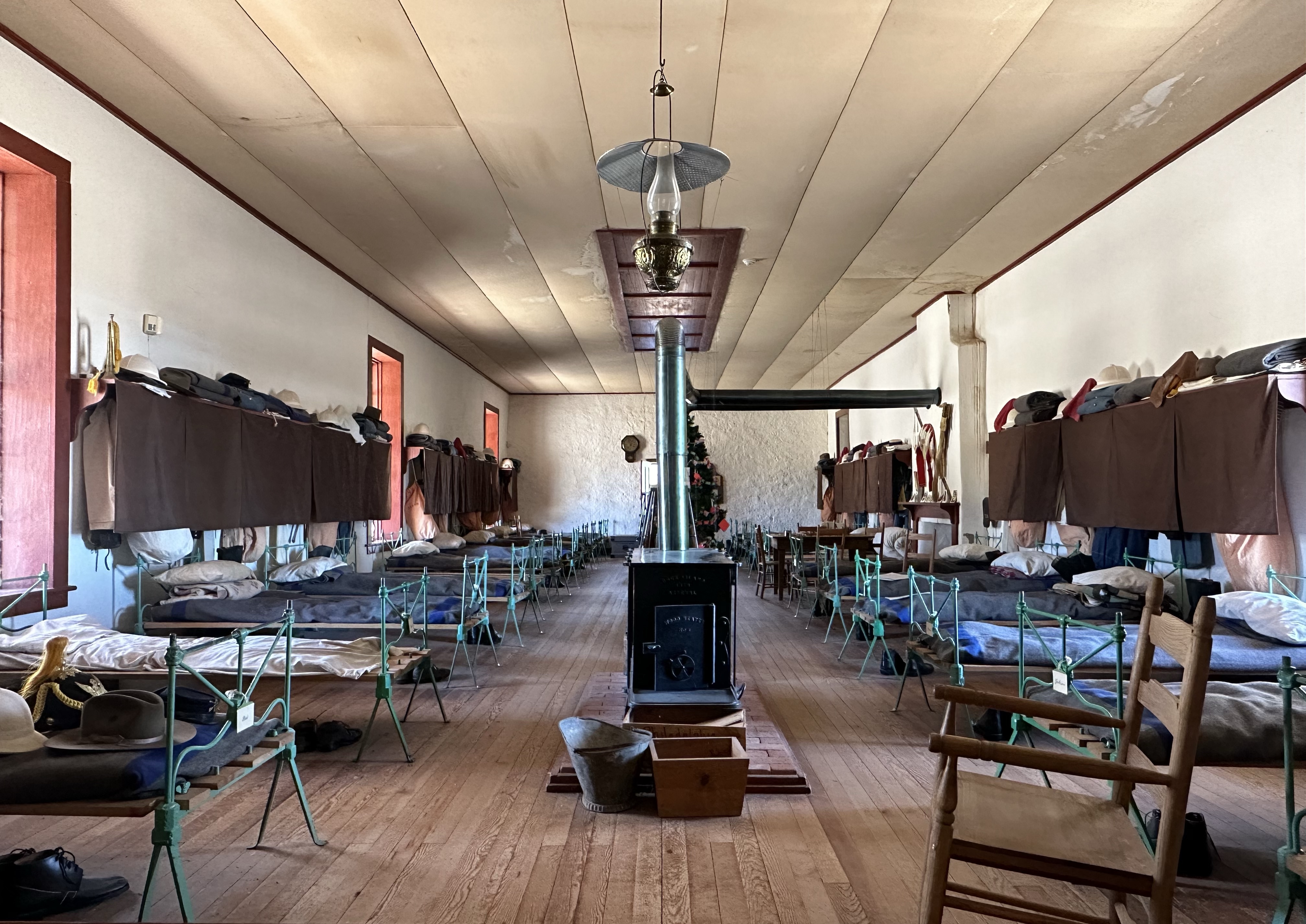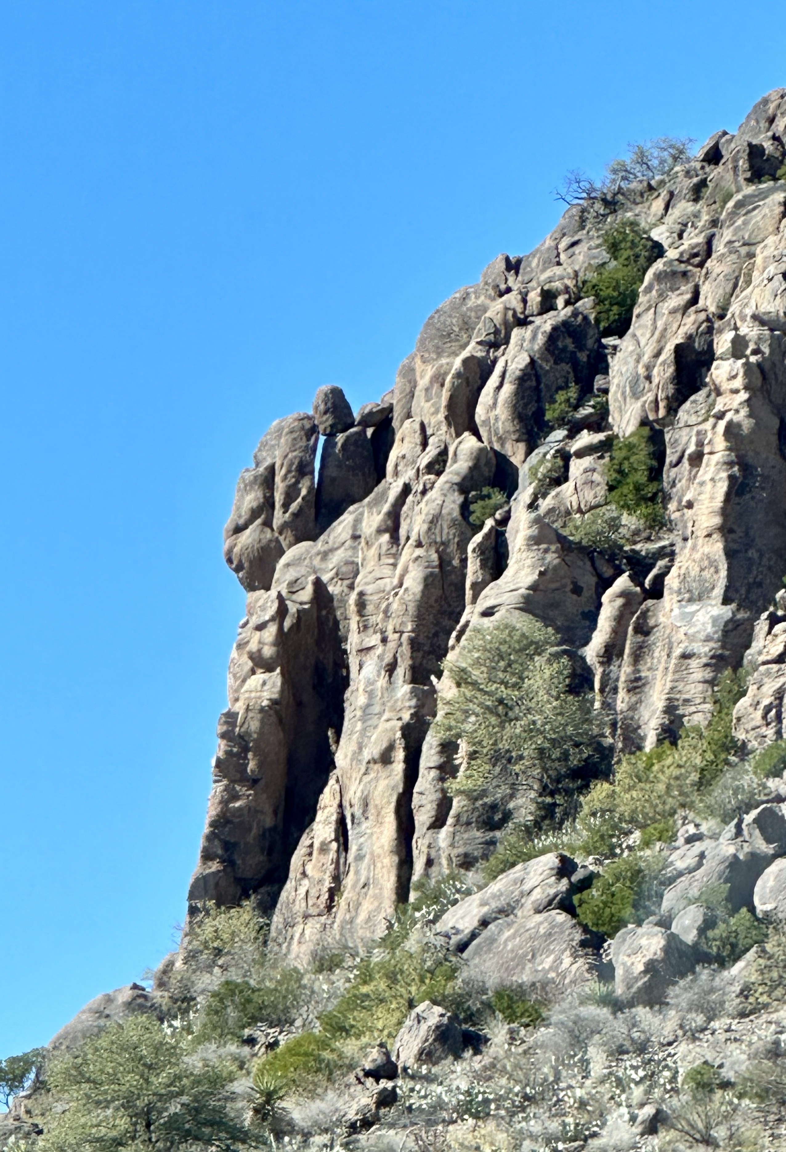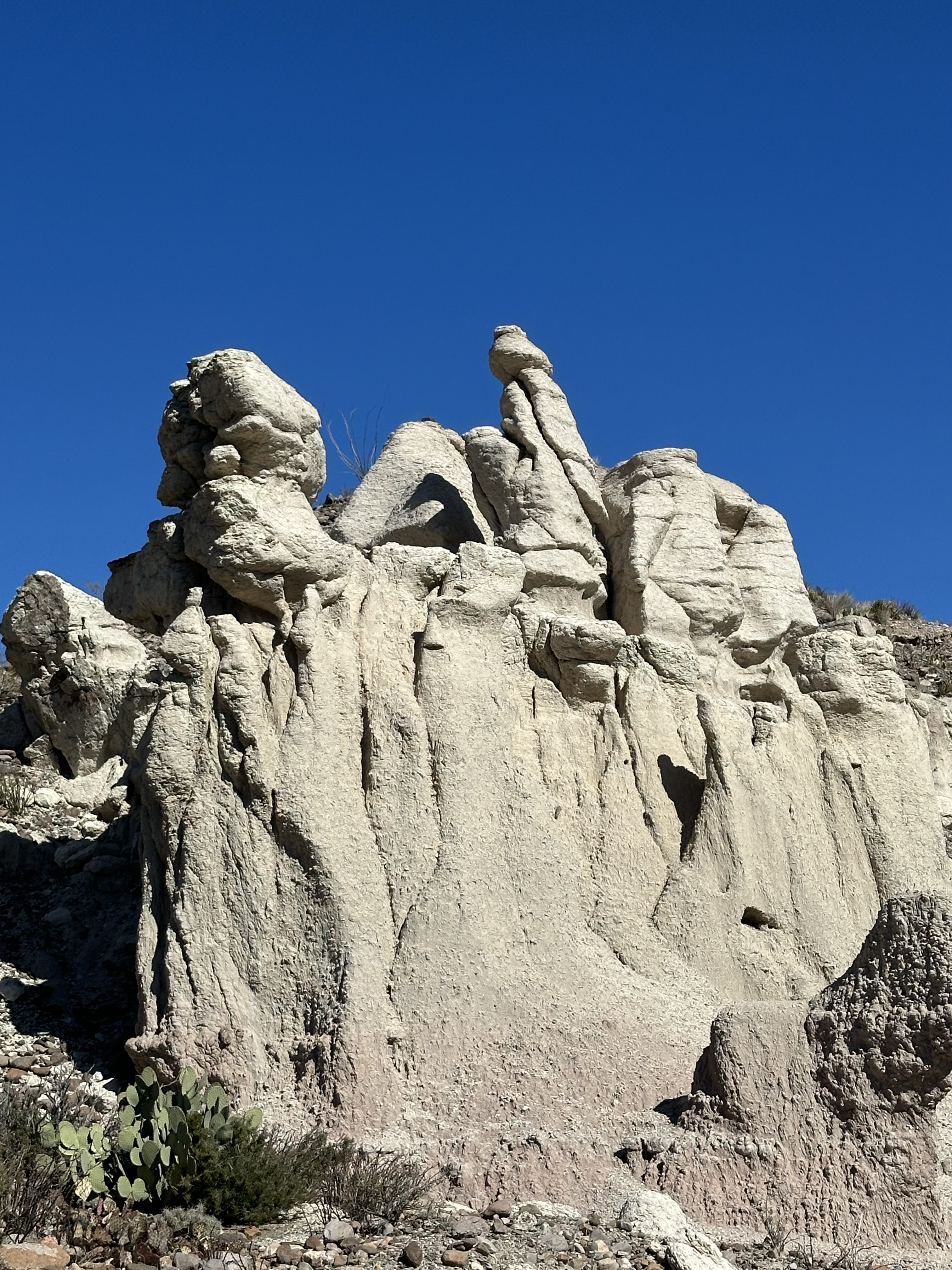 The last big event of the year was however, getting the tall one on a horse for the first time. We stayed at a place called Historic Prude Ranch which has evolved since 1897, the Prudes arrived in a covered wagon, apparently protected by soldiers from nearby Fort Davis, from the ‘Indians’ (not my words). It was a super spot to stay although -13 degrees overnight was a shock. We rode out on a trail through the mountains on some very odd saddles and riding with one hand, enjoying the clean air and the scenery without falling off. The ranch was started as a cattle ranch, no surprise there eh, but it now does all sorts, kids summer camps, event hosting, guest ranching etc. Hence it’s known as a ‘Dude Ranch’… we had real good fun and even spotted The Lone Rangers horse, silver… hi ho y’all! While there we also visited Fort Davis, a well preserved example of a frontier military post. It’s one of many built along the route that pioneers were travelling, heading through the Trans Pecos region to chase the gold in California and where the military provided protection and support. Do you see the kneeling person in the rock formation?