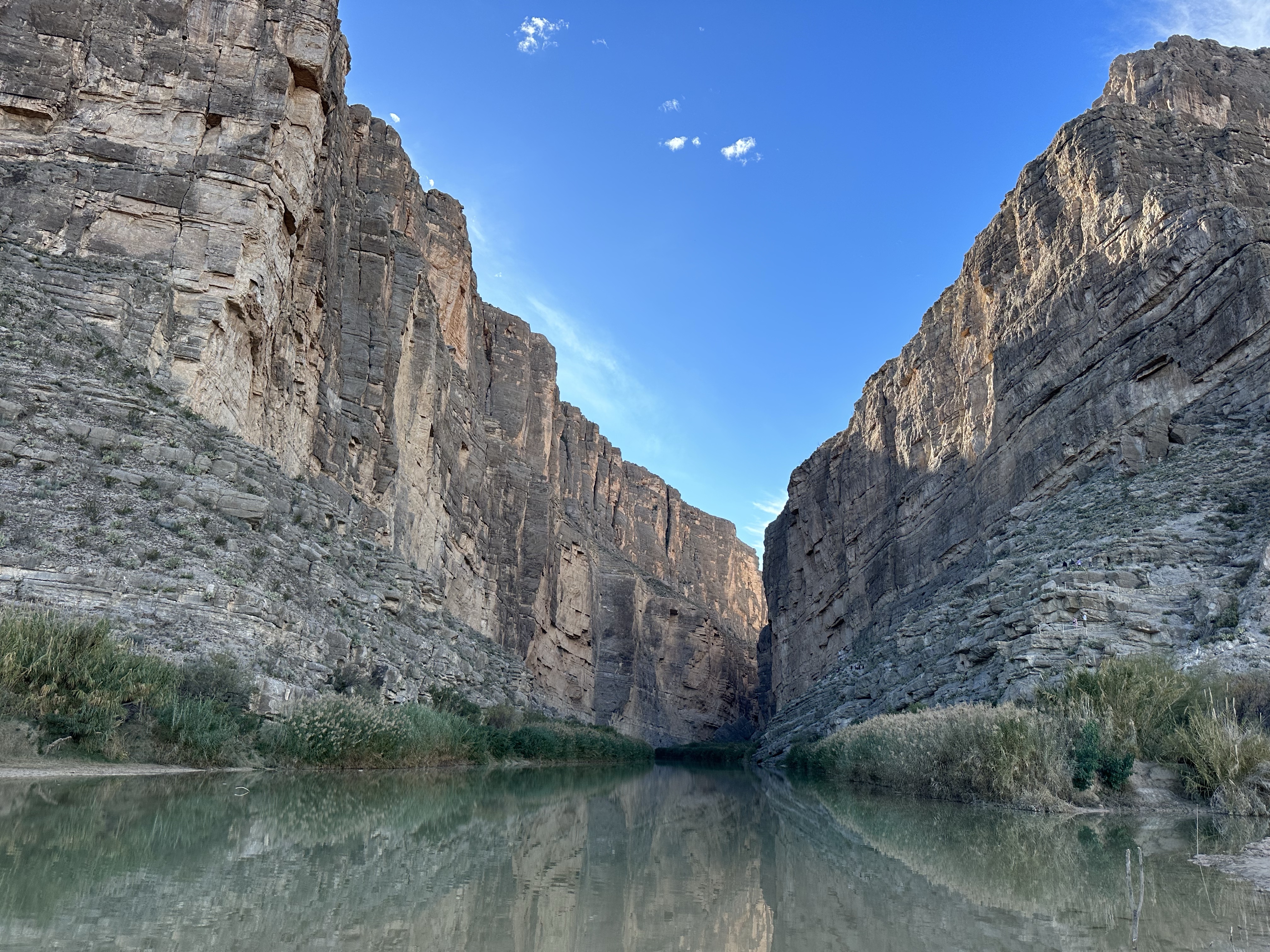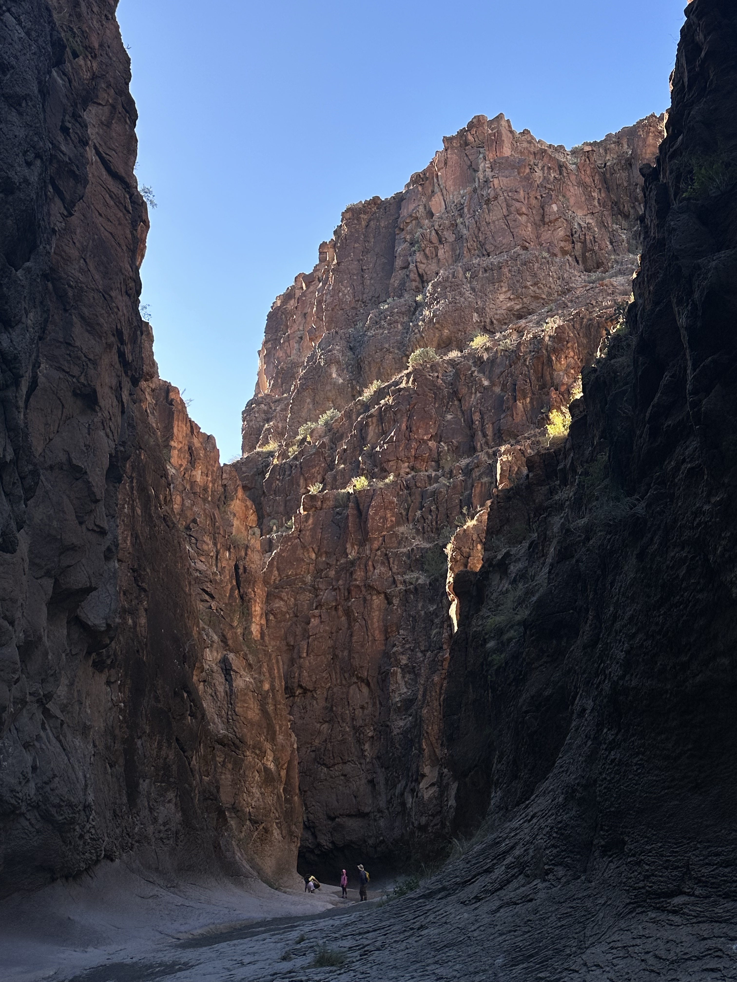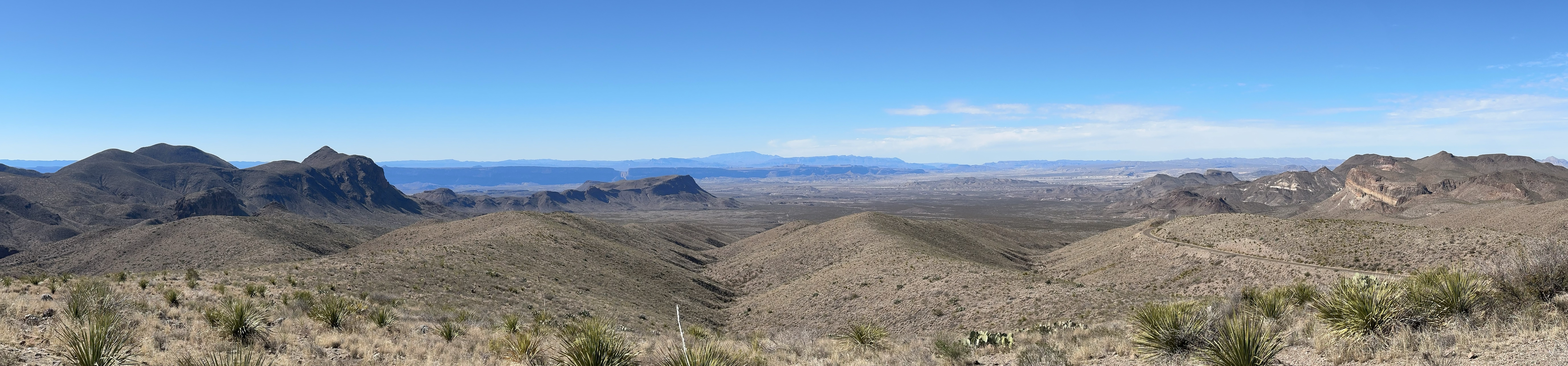 Big Bend National Park, founded in 1944, is vast and thus we stayed in 3 different parts, each quite different. At 1,252 sq miles it’s just a tad smaller than Cornwall. A scale like that equals diverse landscapes and all of it immense. Some parts really hug the Rio Grande, Big Bend being named as a result of the 90degree turn that the river does, within the park. We were really surprised at how low the water levels were, such that we could literally stepping stone into Mexico. Apparently, the river is dammed several times up stream to provide water for the populations of the big towns and cities. We wondered what happens when it’s totally dry as it doesn’t seem far off! The Santa Elena canyon was a great hike, we could throw rocks at Mexico, just like the US seems to do with words (based on conversations and attitudes we’ve come across so far)