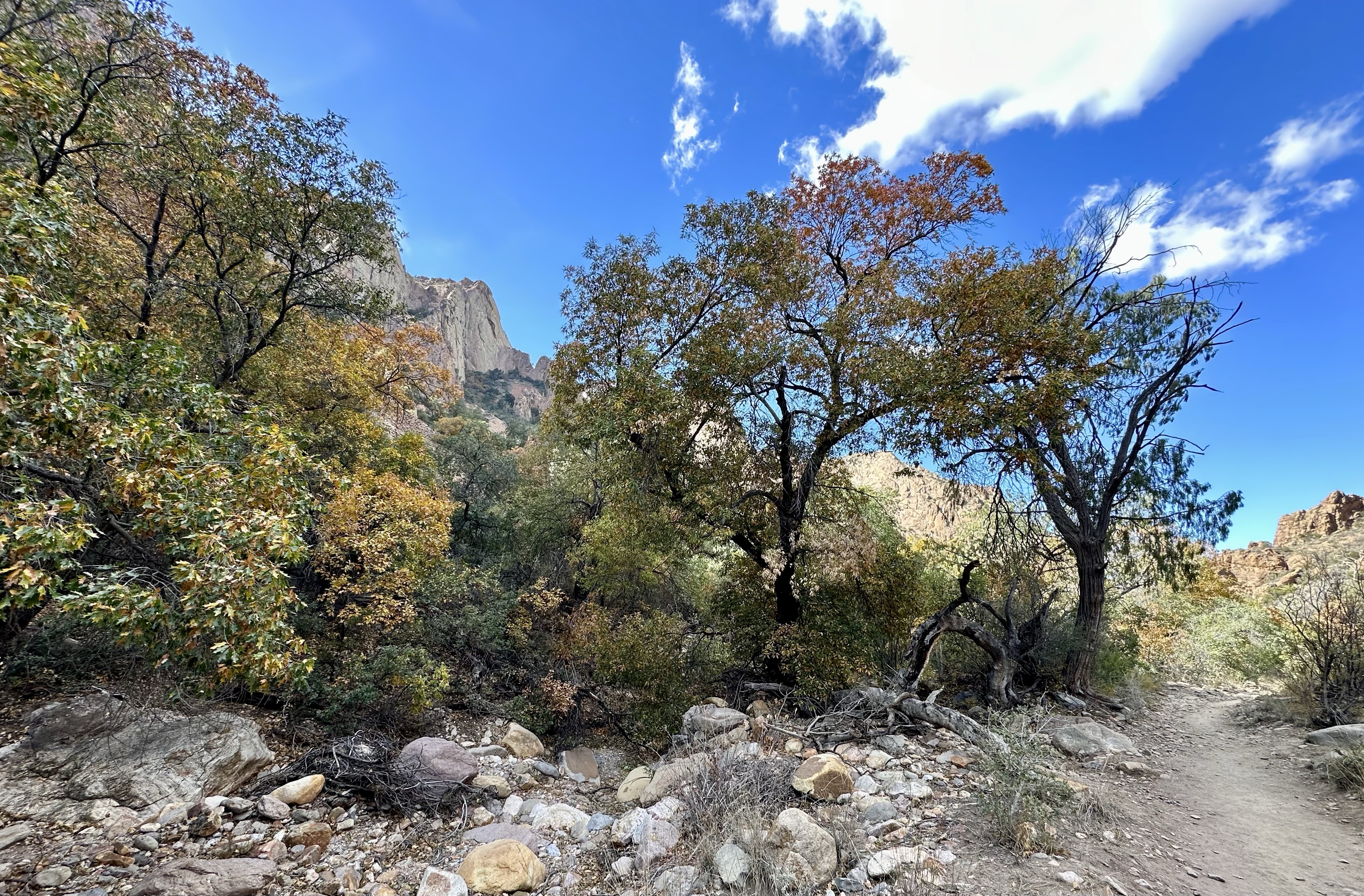 The best part of Big Bend, in our opinion, is The Chisos Mountains. Camping within the caldera provides for a literal cauldron of flora and fauna and some epic geology. Hiking the ‘Window Trail’ down to a gap where you could easily be blown off your feet was a memory we won’t forget. Volcanic geology on display, numerous Yukka (Sotal and Torrey mainly), prickly pear cacti; and tree varieties in glorious autumnal colours (yes many still had yellow leaves on) and to top it, a mummy Mexican bear with two darling cubs crossing our path. We were glad we’d eaten our porridge! At the altitude it got pretty cold at night too but it also makes for more trees and vegetation than at the lower levels. A couple of days around there, taking it all in was nature for the soul, it really was.