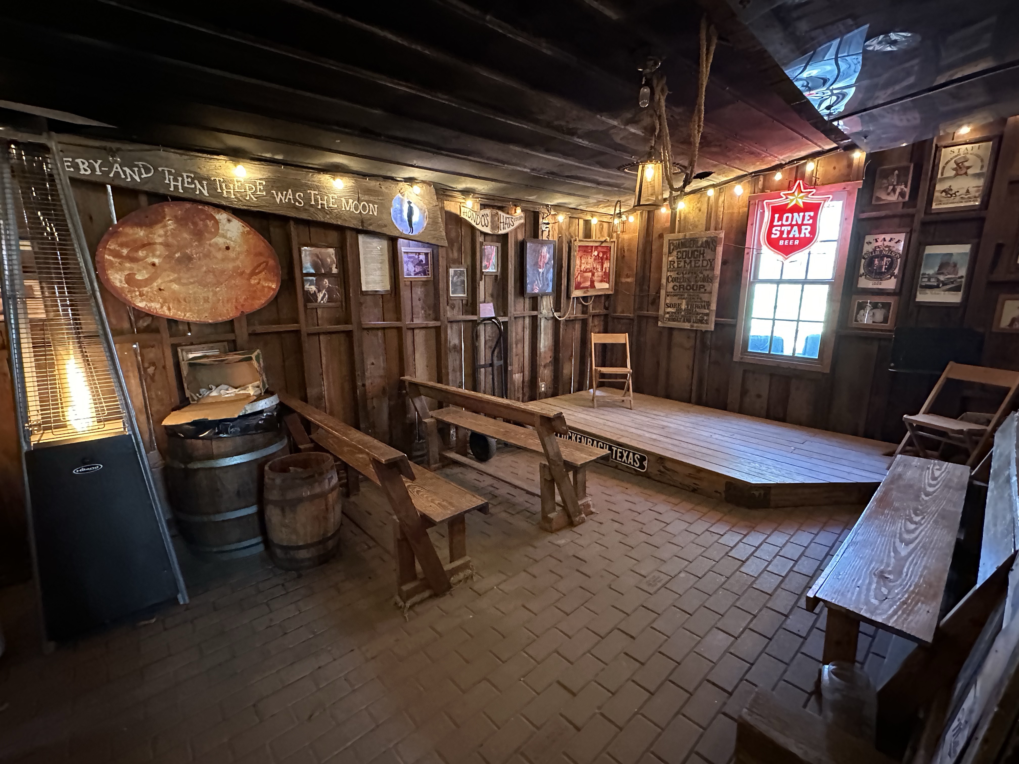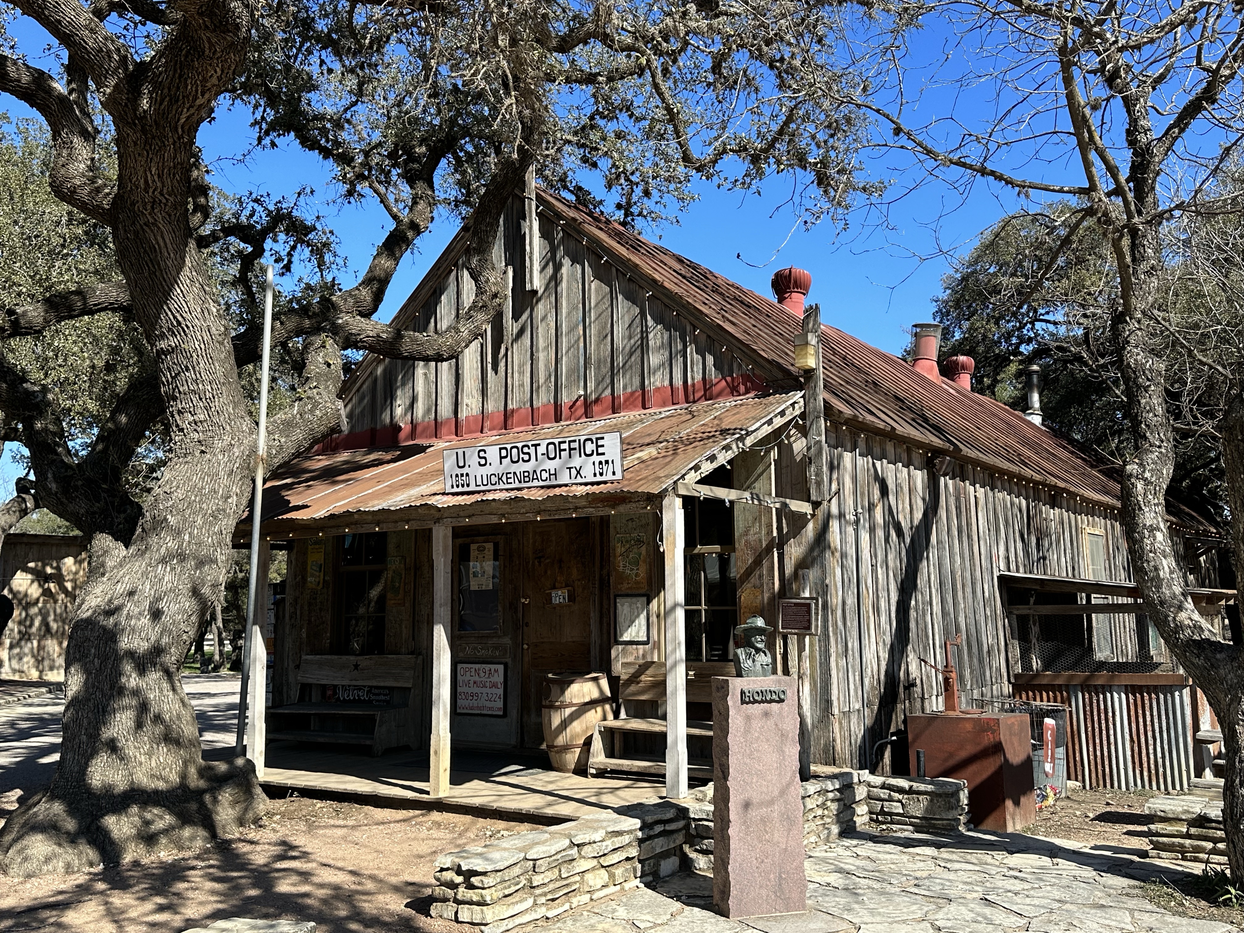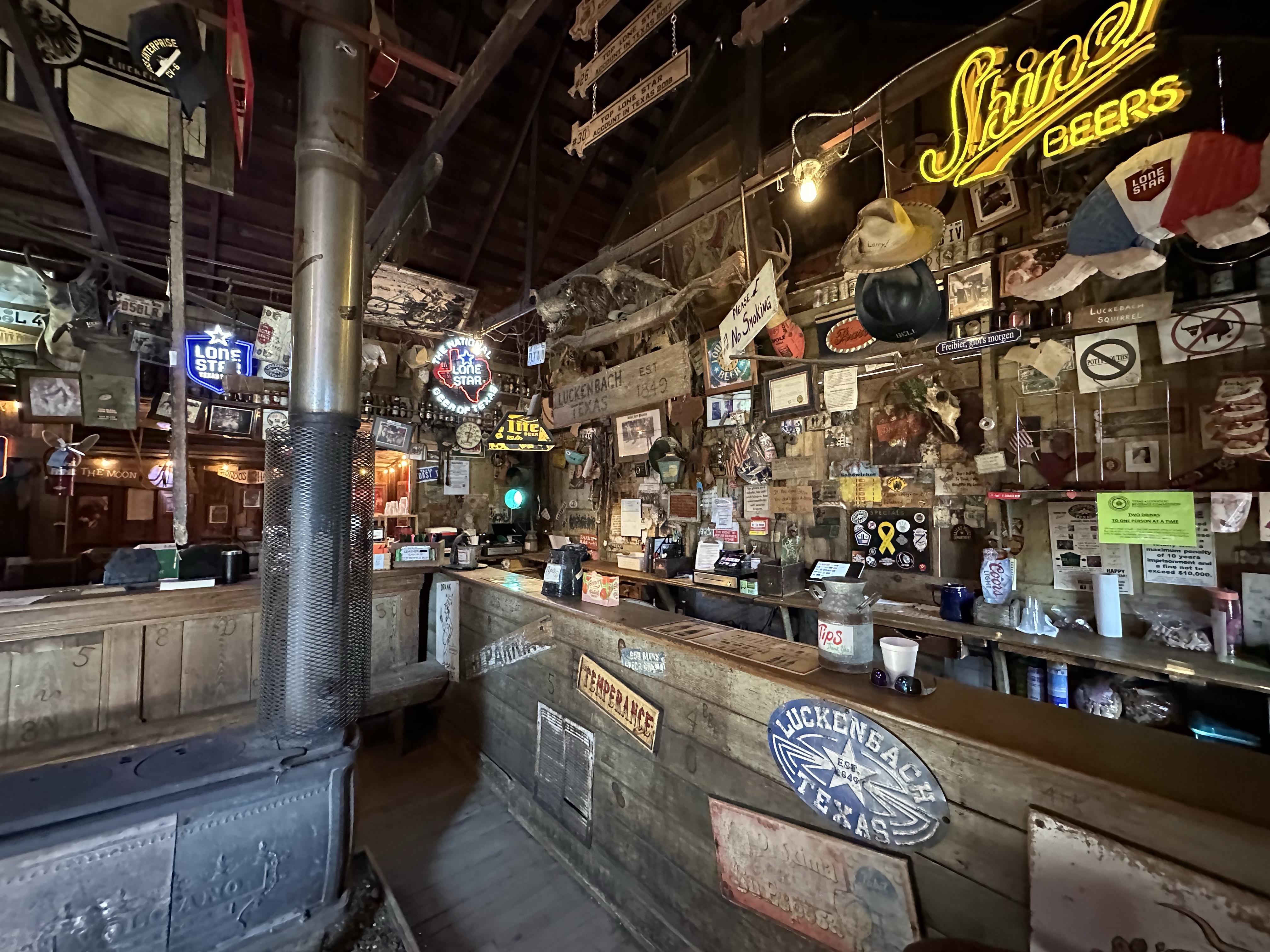 Luckenbach has a population of zero peoples and 14 cats, one being Mayor… until recently it had 3 people, they just haven’t updated the stickers yet in the shop. The Trading Post opened in 1849 followed by, in 1886, the Post Office/Store/Beer shop, catering to ‘Pioneers, Farmers and Comache Indians’ passing through. In 1970 however the town was put up for sale, and was bought by a larger than life character Hondo Grouch and his pals who, with perhaps overactive imaginations, created a principality. He titled himself ‘Clown Prince’ and as you can imagine, his magical spell put it on the map. Musicians and creative folk started hanging out there, recording music in the old dance hall. Willie Nelson held a number of his “4th July Picnic’s” there and so it endures. Daily, the tiny bar hosts ‘pickers’ for tourists to listen to, there’s a Jazz Festival (there are a number of permanent stages) and of course an oversized gift shop. A fun place!