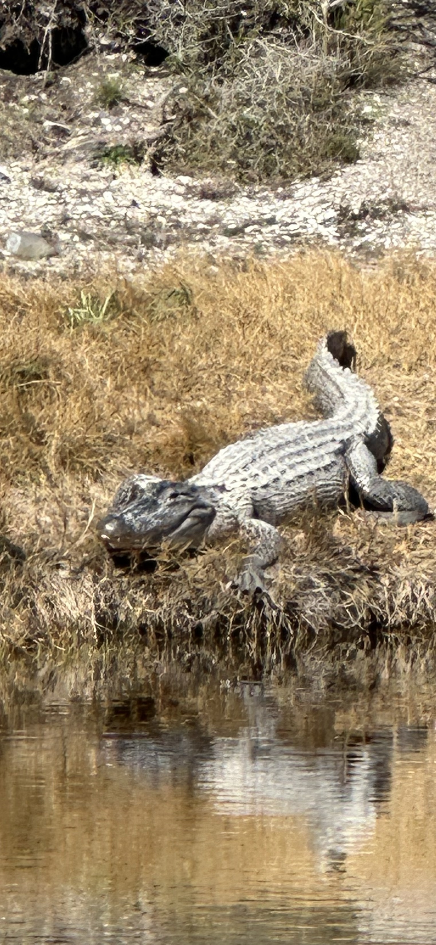 Thankfully, the skies cleared and we had a super sunshine day at Aransas national Wildlife Preserve. On our way in we saw a number of young Javelina pop out of a tunnel under the road, like peas being fired out of a straw, so cute! Aransas is known for Whooping Cranes migration. There was only 15 left in 1941 so a great job in bringing the number up to c. 500 by Canada where they breed. Still rare though and need protecting. Loads of the usual suspects, Herons, Egret, Sand Cranes, Vultures, Pelicans, Terns, small brown birds…. and our first sighting of alligators. Thankfully they were basking on the other side of the water, they aren’t aggressive though unless you do something daft. We wondered where the day had gone, watching the elegant and graceful white pelicans in flight or watching hawks gliding effortlessly looking for prey. The white flashes of terns in the sunlight and Egret stabbing the water for fish may to many, seem a dull way to spend time but not for us. Appreciating nature and wildlife is food for the soul. It was a shock as we headed back and saw numerous ‘air boats’ with camouflage clad blokes on them who’d been out for the day shooting ducks…