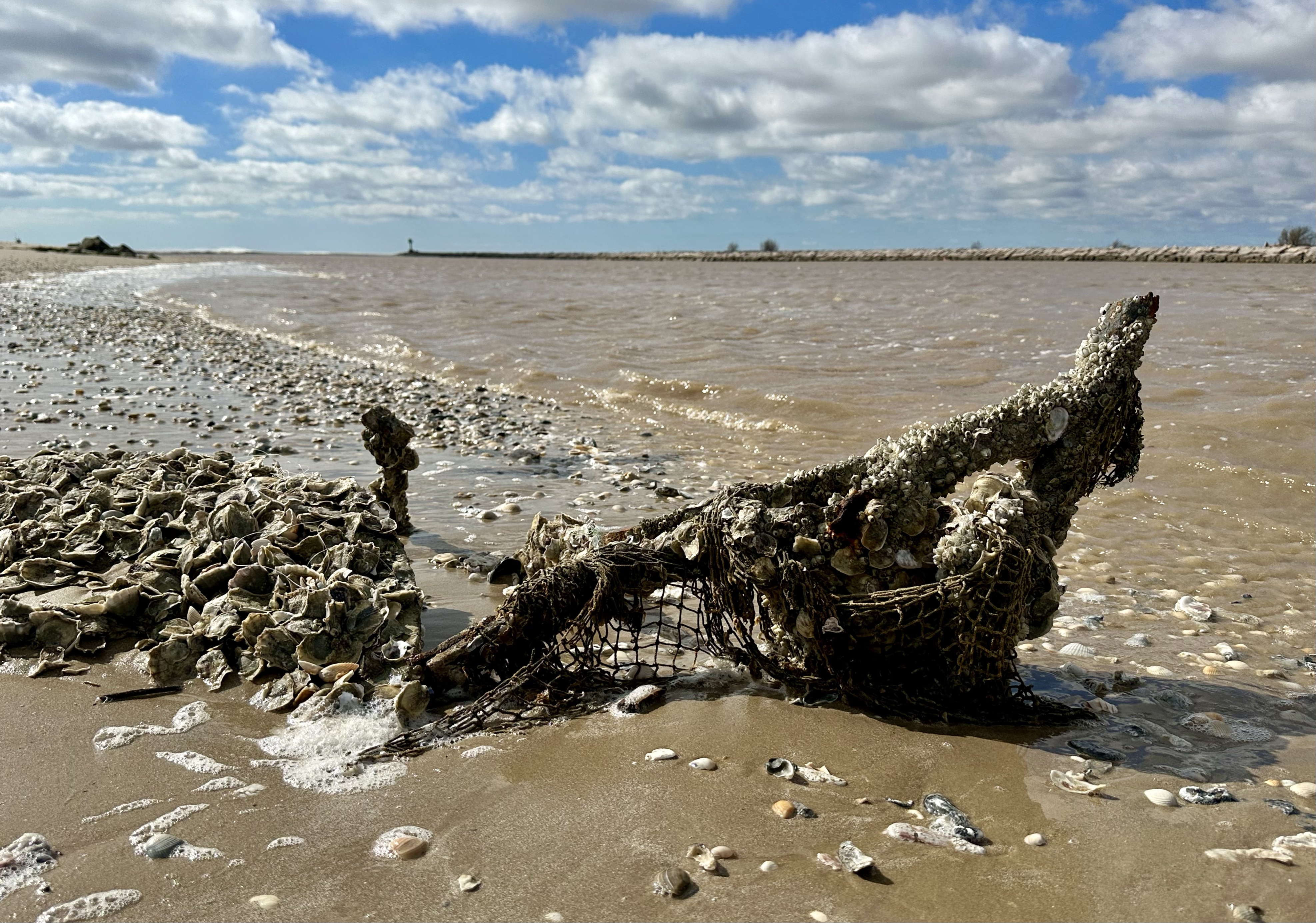 Anyway, back to our own agendas, a brisk walk along The Colorado River near Matagorda to the beach outlet was clearance for the mind. The crashing waves were arrested by the strong offshore winds and birds were taking advantage of the churned up waters to do their own spot of fishing. Very much a second home/holiday area we only saw a few fishermen and housebuilders… clearly there’s money in peoples wallets as all along the coast there are stilt houses being built to meet demand and none look lived in. If only the second homers took more care, the plastic waste on the beach and in between the granite breakwater blocks was awful. When the coastline and inland areas are home to massive petrochemical plants, whats a bit of plastic eh?