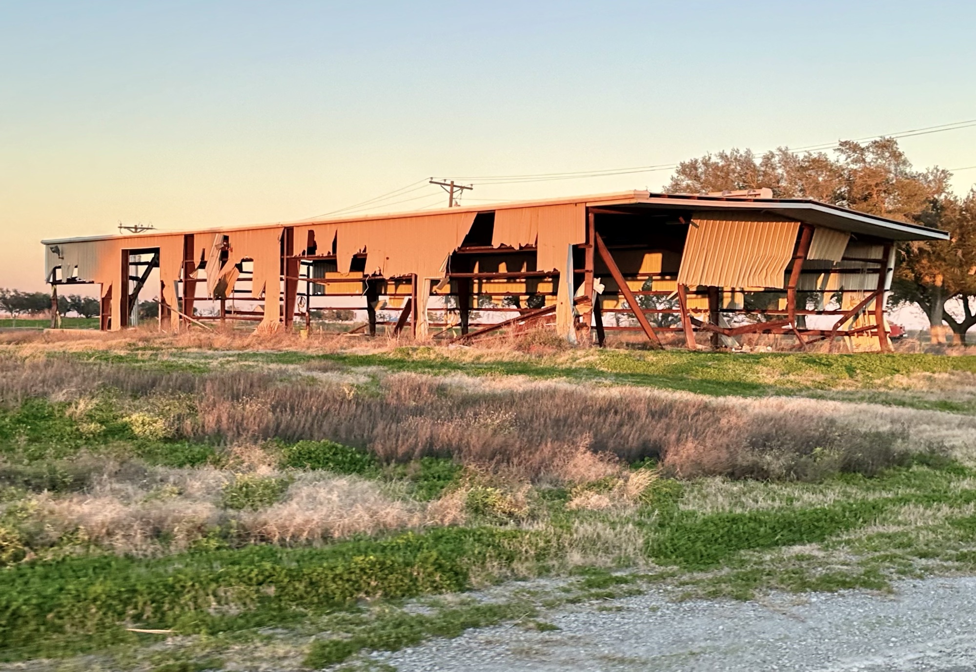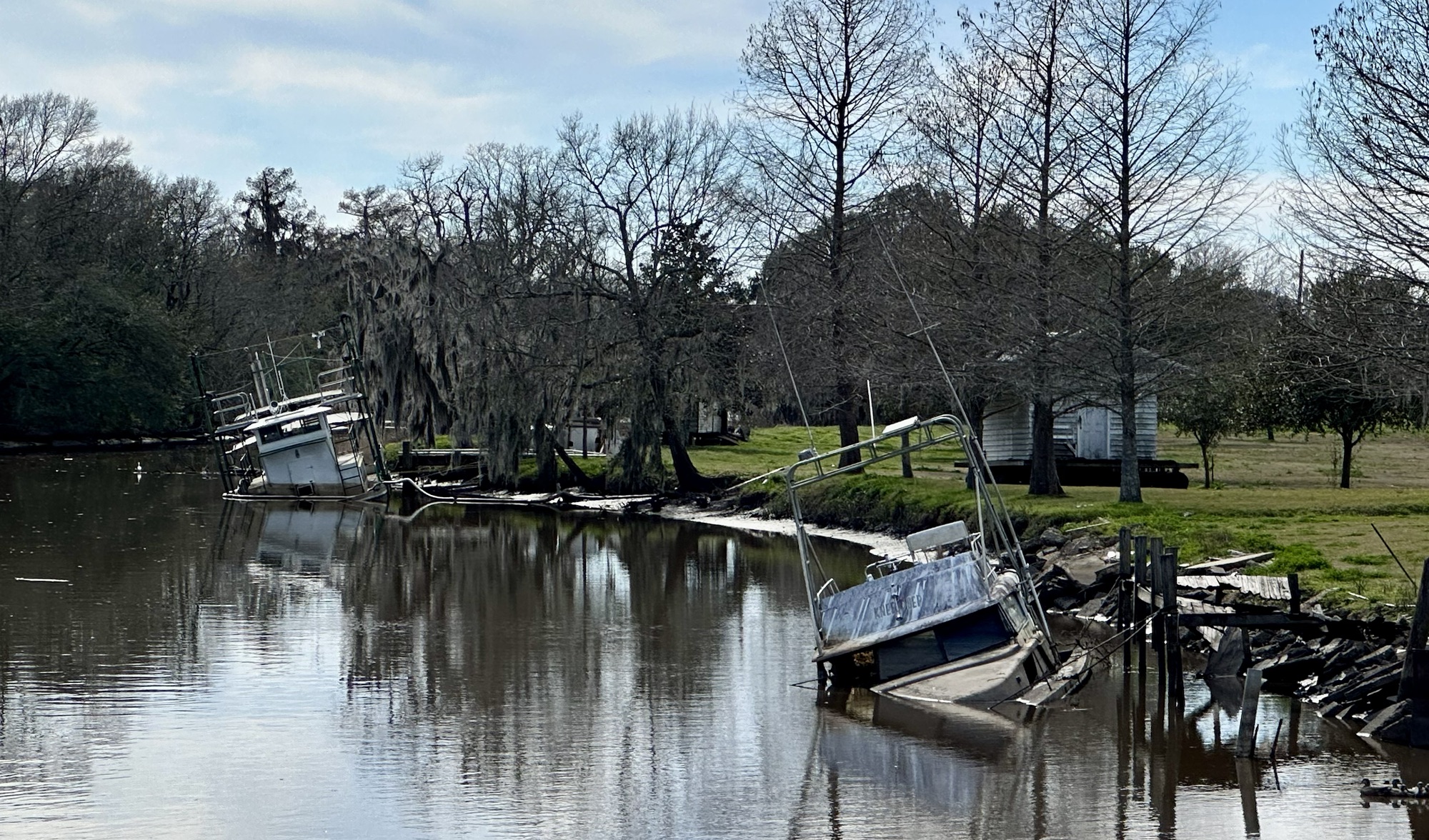 Hard to comprehend, we found ourselves passing lost communities on a coastal road through the marshes (Oak Grove Hwy 82.) Too many to count, concrete slabs with nothing remaining, roofs of houses in fields, a lone post box or chimney stack where there once was a home. That’s the devastation of 2020 hurricanes Laura and Delta making landfall at South Cameron, creating 18ft storm surges and high winds. (aerial pic internet) The community was lost, from c 3000 to c 350 now, libraries, schools, business, gone. Many people never returned, those who did often had no choice and now live in RV’s and trailers, ready to hitch up and leave should the warnings come.