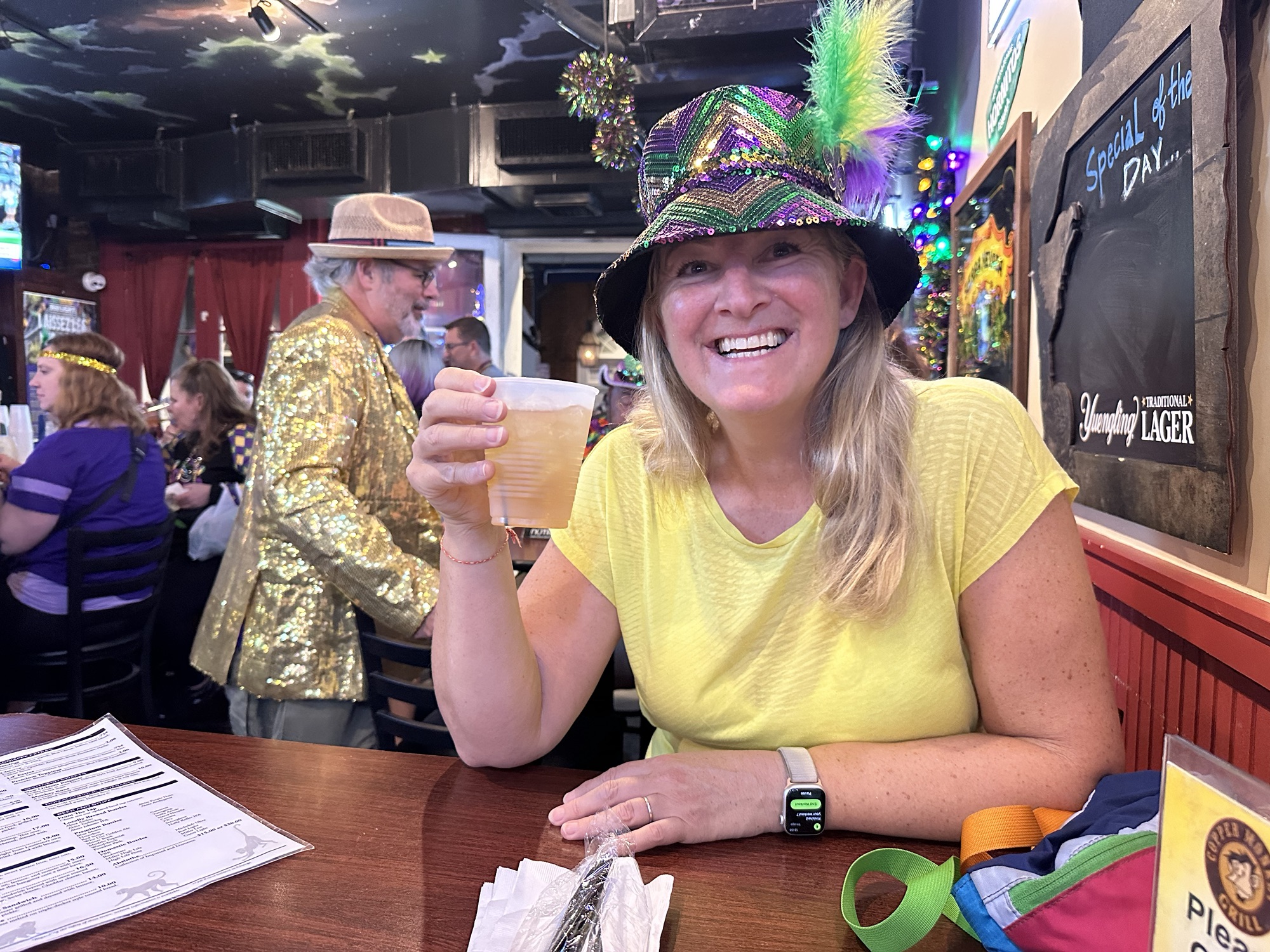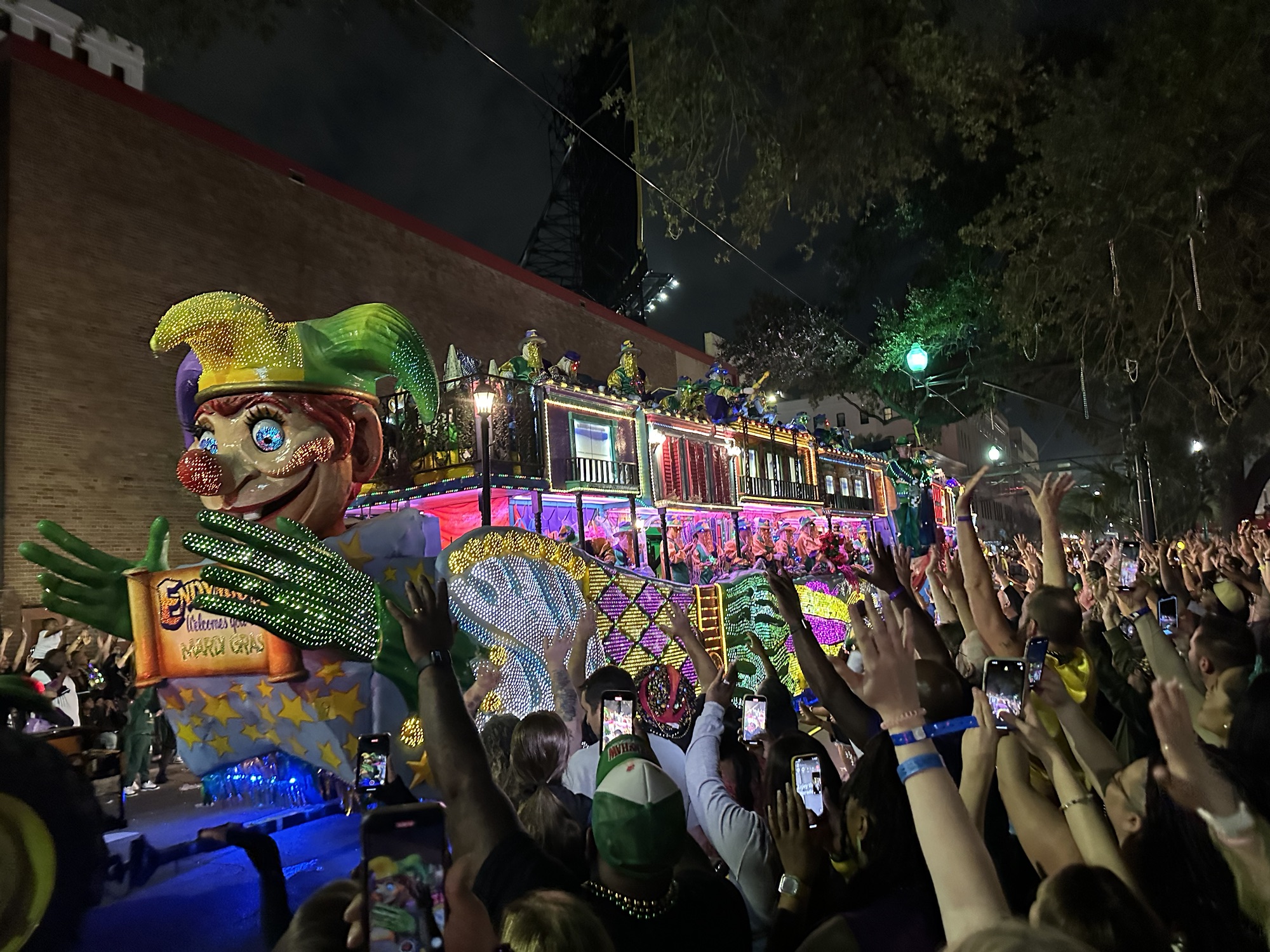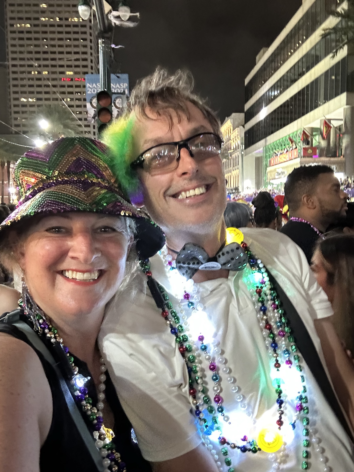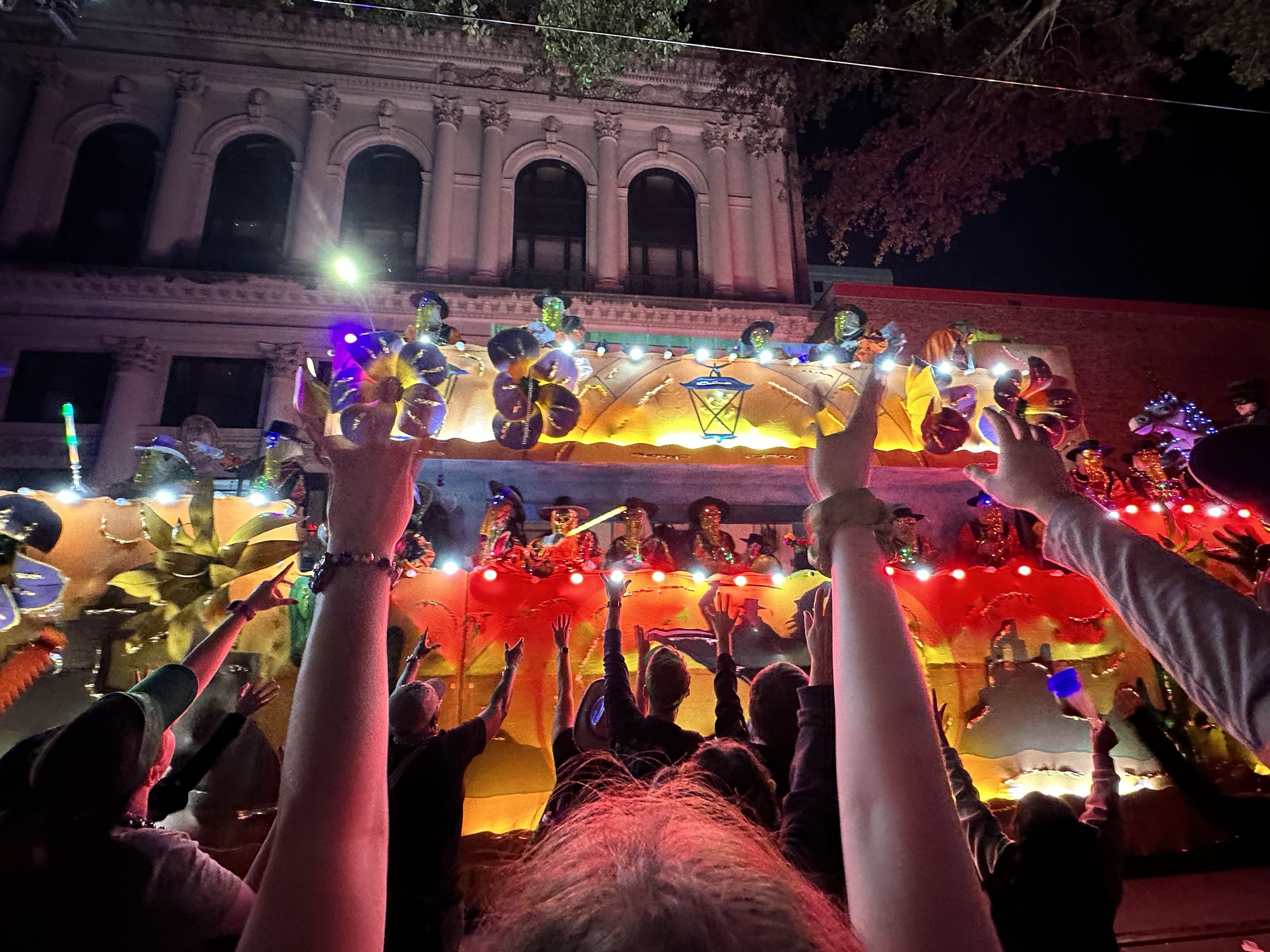The Mardis Gras event has religious roots. Festivities start in New Orleans each year on January 6, aka Twelfth Night or the feast of the Epiphany. Hence the tradition of ‘King Cake’. Mardi Gras, the French phrase for Fat Tuesday, is the culmination of the season and ahead of Lent. Same as our traditions for ‘pancake day’ eating up all nice food before Lent. On Bourbon Street, the epicentre of the ‘festivities’ there’s always folks with placards and loud hailers preaching about sinful behaviour and berating the revellers, we do wonder if it’s wrong time wrong place for them as they get a ton of abuse hurled at them. On the final evening, a long line of ‘older white men’ marching with a cross down the street, rammed with party goers is probably not the wisest!