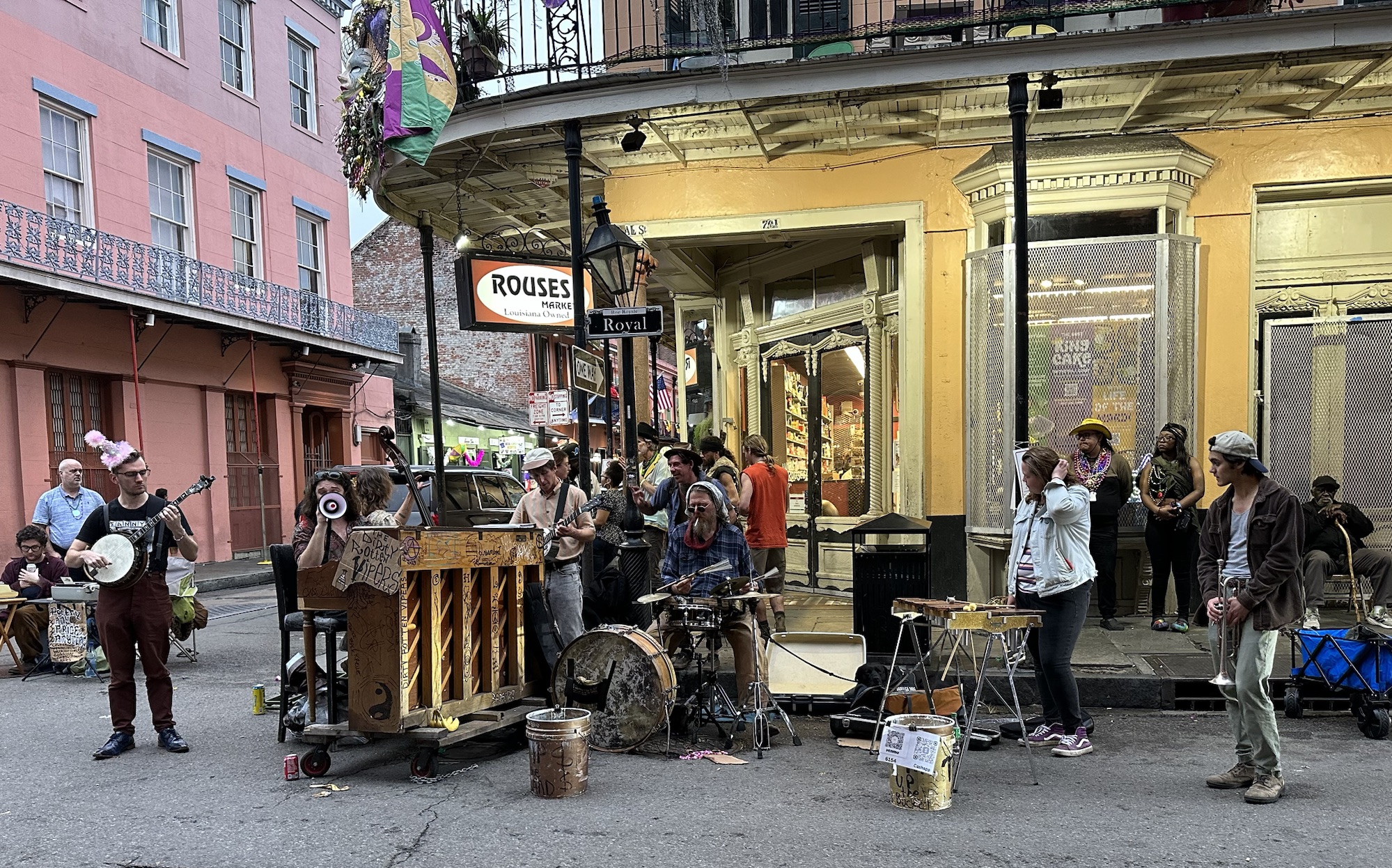 It’s not just the people who dress up, all the shop windows and peoples homes are decorated. We decorated our van with our beads! After all, the event attracts nearly 2m people to N’Awlins so it puts its best face on. All the best Jazz, Blues and Cajun musicians head to town and we caught some brilliant sounds at favourite places such as The Black Cat and Fritzel’s, the oldest jazz pub on Bourbon. There was a heady sound all through the streets too if away from the booming sounds on Bourbon at ‘Krazy Corner’. We had a laugh there though as there’s a live webcam so we waved to Nicks mum and dad. Yeah we did get a few odd glances!