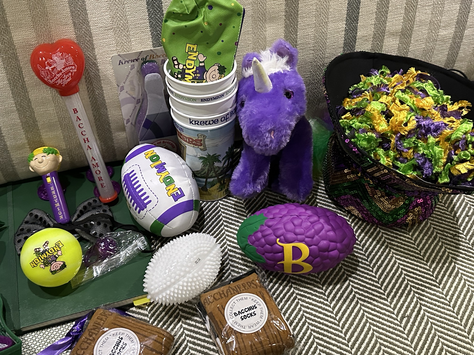 Apparently, Mardi Gras goes back to the 18th century, the first formal parade in 1857, (Mistick Krewe of Comus) however it was later that ‘Krewes’ started to make their mark and it became a carnival of sorts. After the Civil War, many new Krewes, (bit like Carnival members clubs) emerged. The Krewe of Rex, still going today as a Super Krewe started in 1872, and selected the carnival colors (purple for justice, green for faith and gold for power) These colours are everywhere, balconies, smart houses and in the dress code.