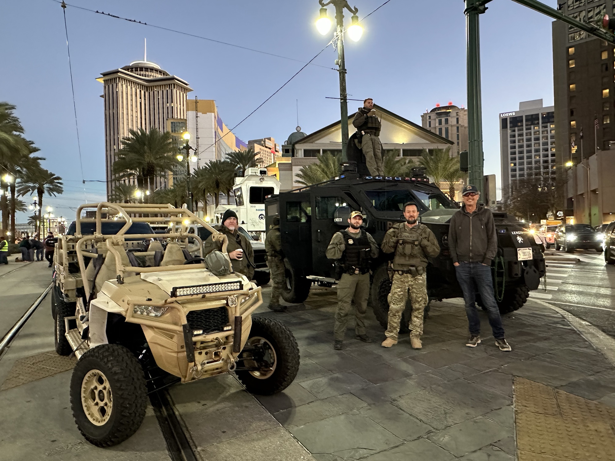 Anyhow, this won’t be our last rodeo, we know we’ll be back again to experience the charm of New Orleans, be it in Mardis Gras or not. We always enjoy it, the atmosphere, the friendliness of the people and the fun, the memories made. It’s an enchanting place. Below are some random favourite pics, such as the level of security. Chatting to them they are just a deterrent and never needed, thank goodness as the bloke on top would drop his coffee! The Uncle Sam conspiracy theory bloke was there again, you’ll have to click on the pics!