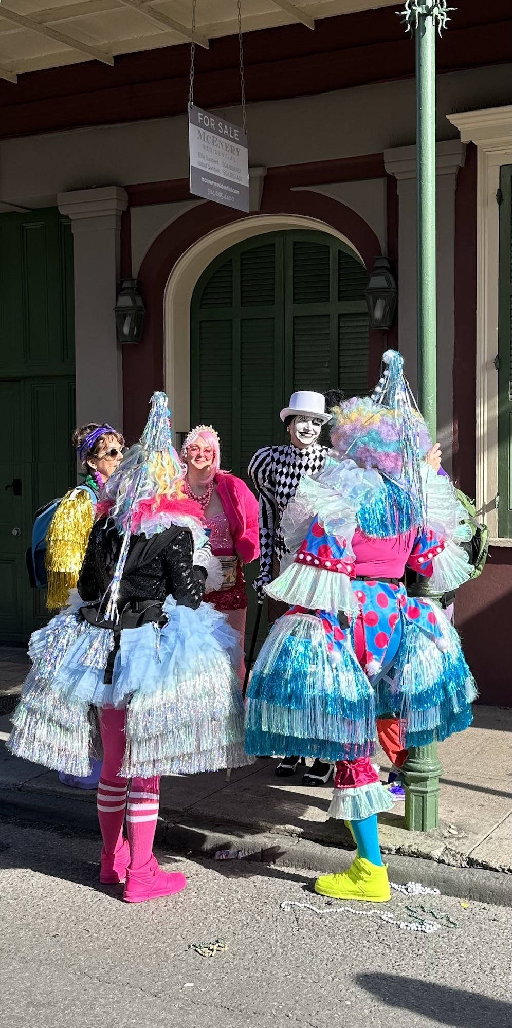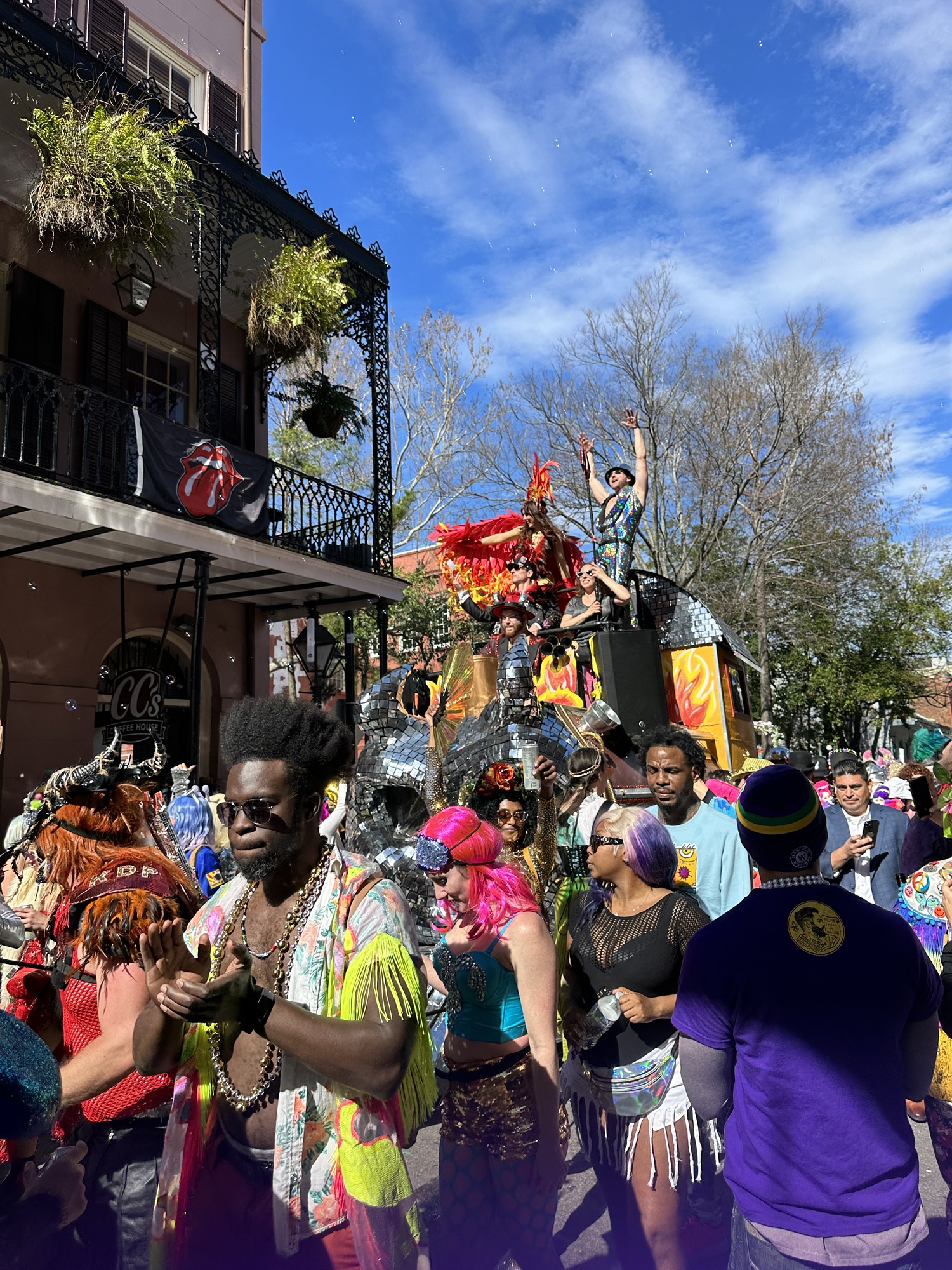 Dressing up is part of the season, in fact, it’s uncommon not to. There’s incredible creations and many home grown, a dazzling array of artistry and colour. It doesn’t matter what day it is at all, but the culmination of it is on Fat Tuesday in The St Ann’s (a street) Walking Parade where anyone can join in, strolling through the French Quarter. Us included! We particularly loved ‘Krewe of LazyBoys’!