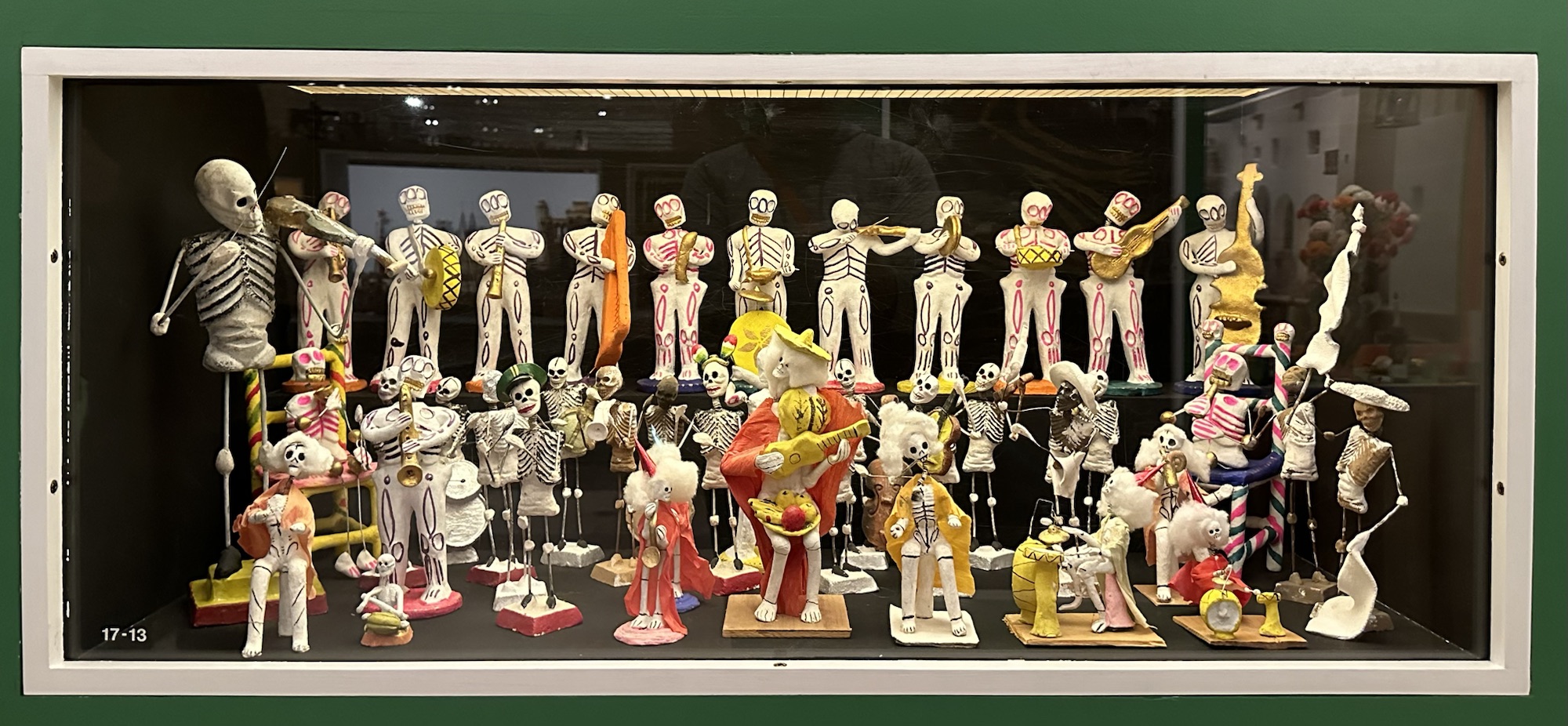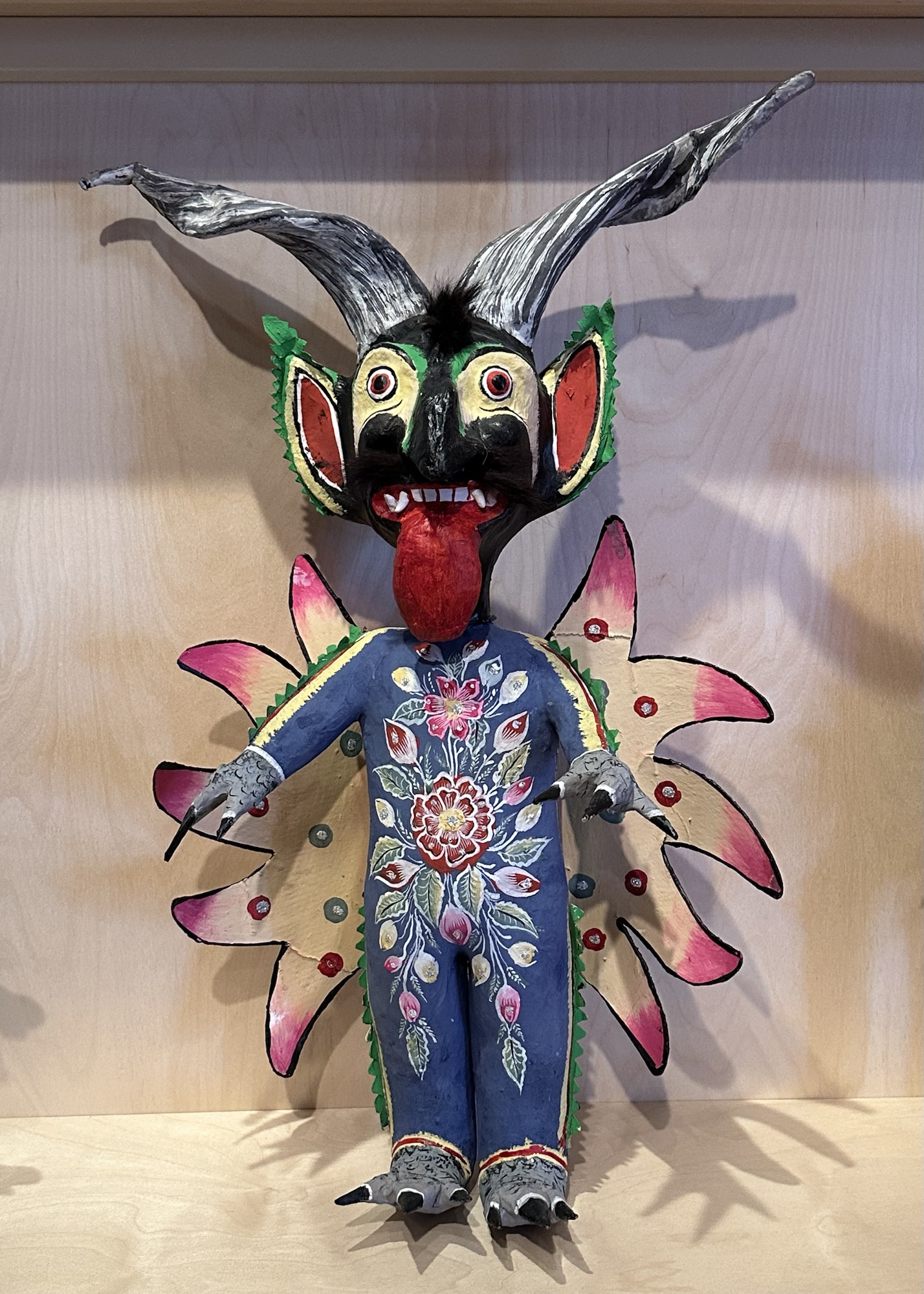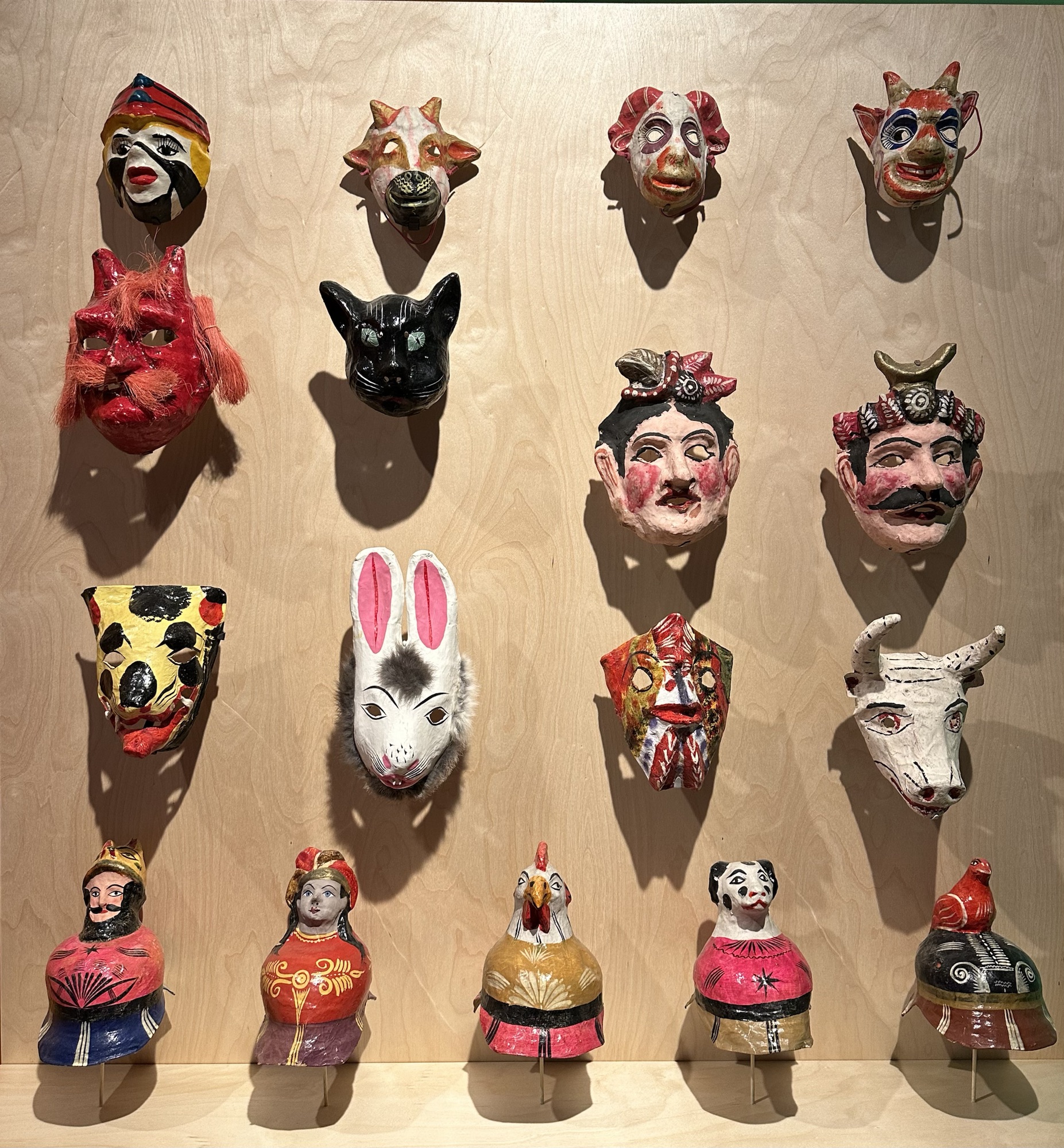 Another section was dedicated to La Cartonería, the making of three-dimensional sculptures with papier-mâché, which is part of Mexico’s tradition of paper based handcrafts. A way of expressing imagination, emotion and traditions in Mexico, from masks to toys, the creativity was superb and so colourful as you’d imagine. Many of the creations, from small to really big, are used in religious and cultural festivals. Like Mardis Gras in New Orleans, the Mexicans also celebrate the days before Lent with processions and ceremonial burnings. It reminded us of Malaga’s ‘Burning of the Anchovy’ at the end of their Carnival.