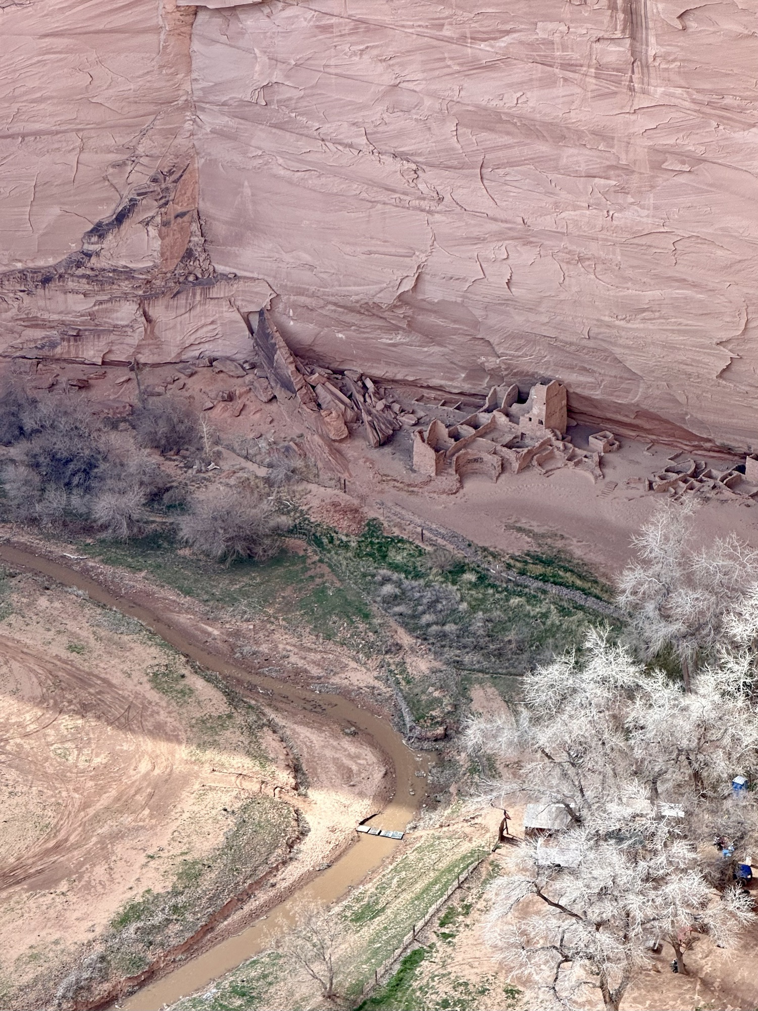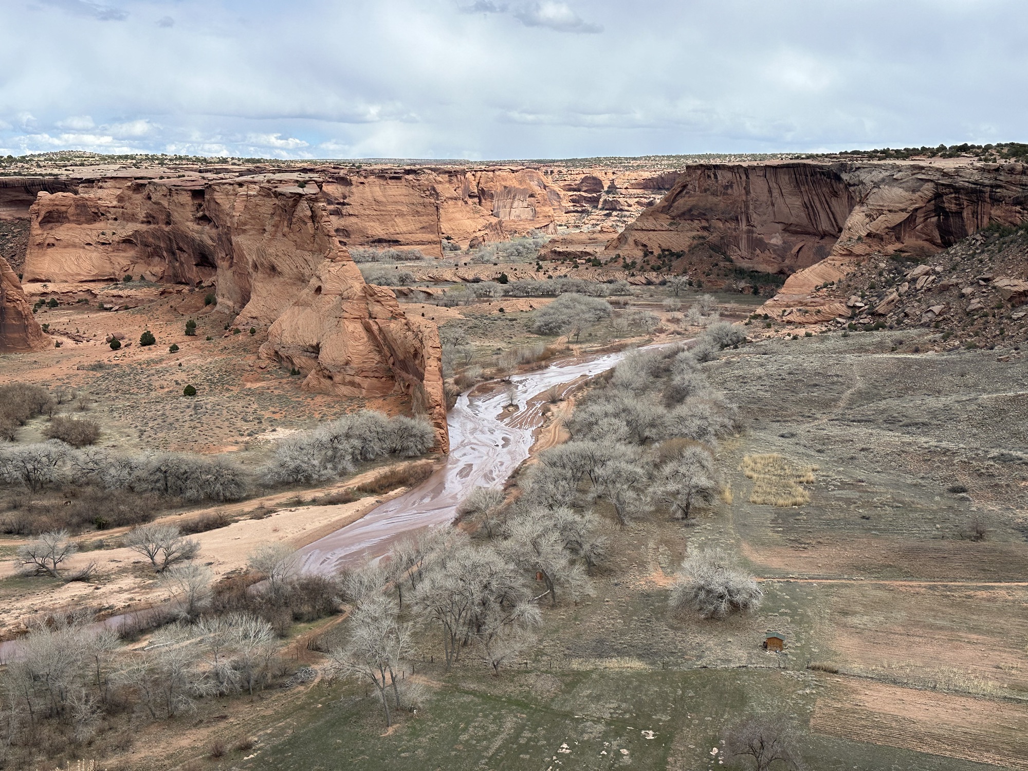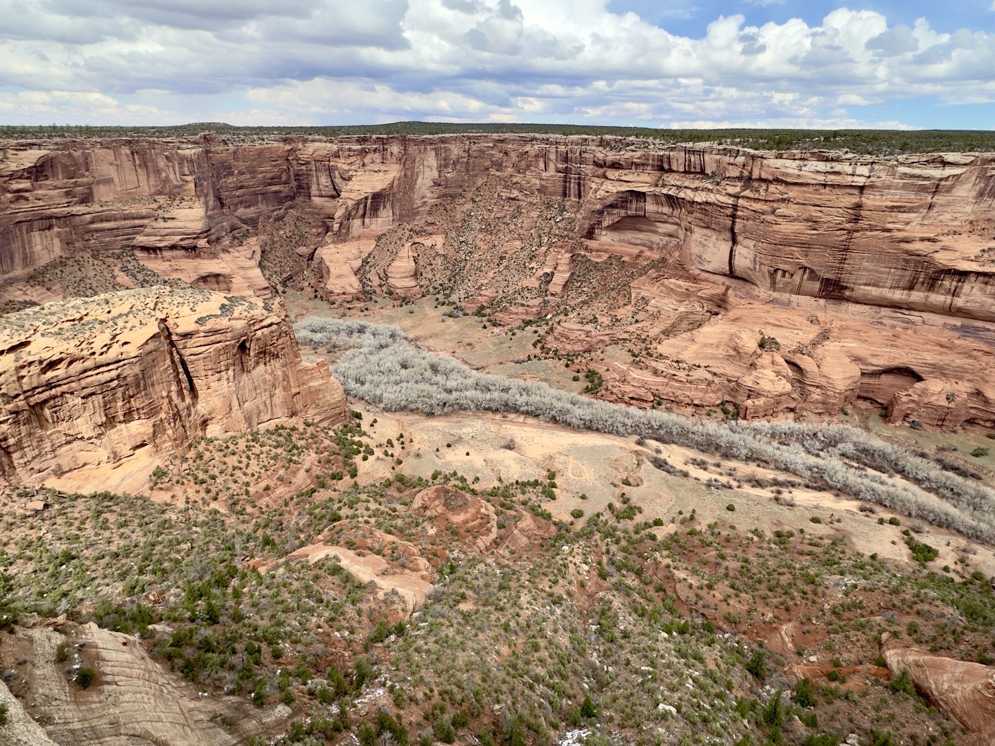 Canyon de Chelly was spectacular. Not a single tourist, it’s a bit like a mini Grand Canyon without the overwhelming size. Personally, I find it more comprehensible when I can understand what I’m looking at and the gaping crevice in the earth as we approached the edge of the rim was a sight to be sure. The standout feature was Spider Rock, a solitary tower rising up from the valley floor, 800ft of sandstone. Other lookouts gave us views of the valley floor and the cultivated farmland, others, through binoculars, we could see ancient ruins of Pueblo peoples houses and communities, precarious within the rocks.