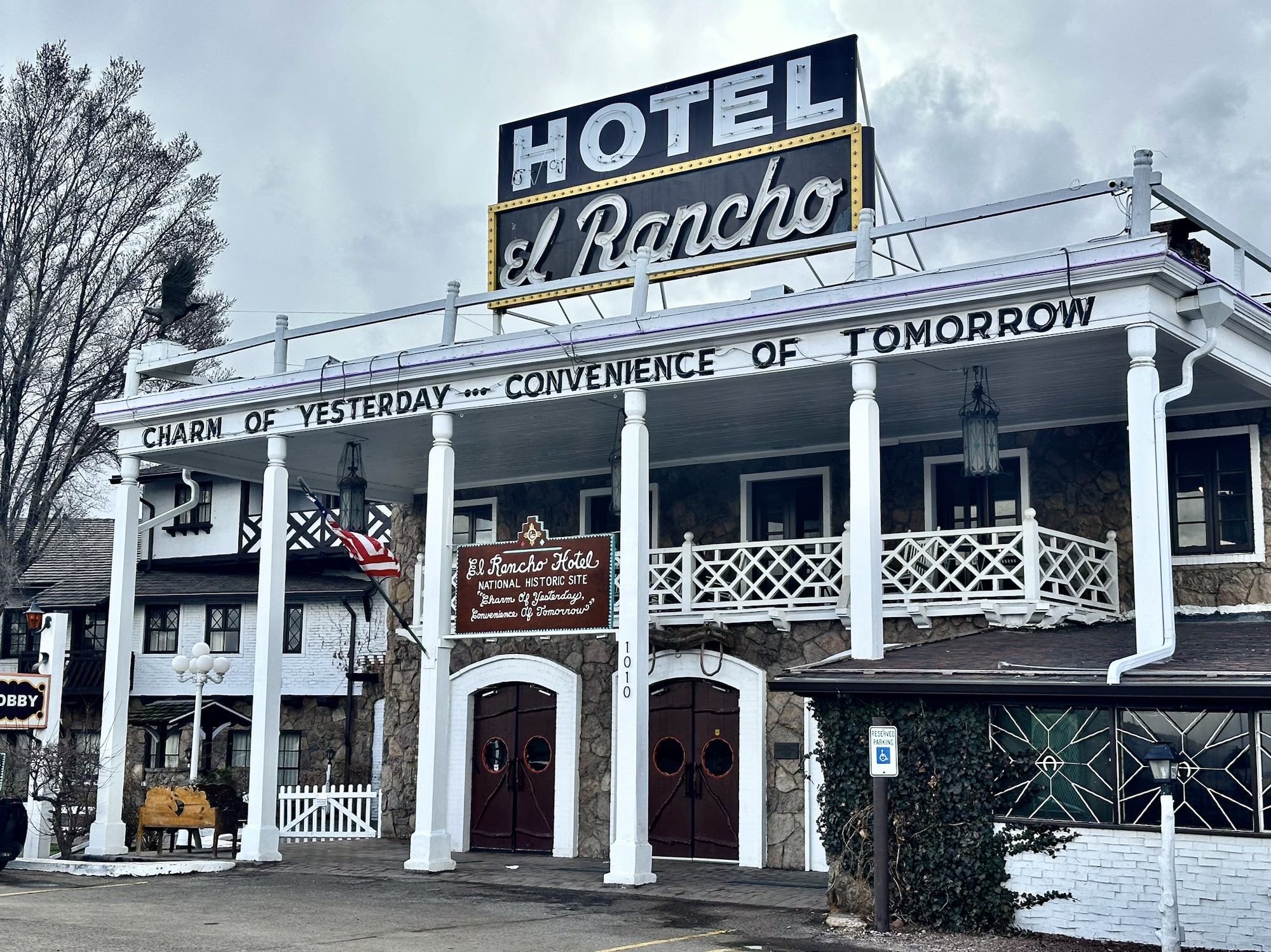Being St Patricks Day we treated ourselves to breakfast at the nearby Hotel el Rancho, opened in 1937 and both it, and the menu, hasn’t changed much it seems. Having to do the vegetarian hustle and swap out sausage for cheese, ham for more cheese and yes please on onions, we had a pretty basic omelette and coffee. They were offering green ketchup stuff given the day! Another hotel surviving on its film HQ hey days, it was packed with signed photos and other memorabilia. I did wonder, when reading their slogan, what happens ‘today’ if convenience is tomorrow? Frankly, the local Americana signage was more interesting!