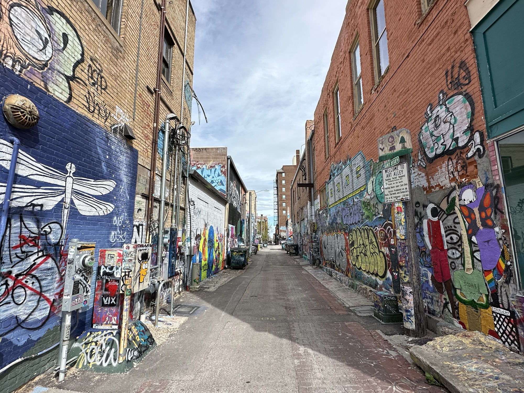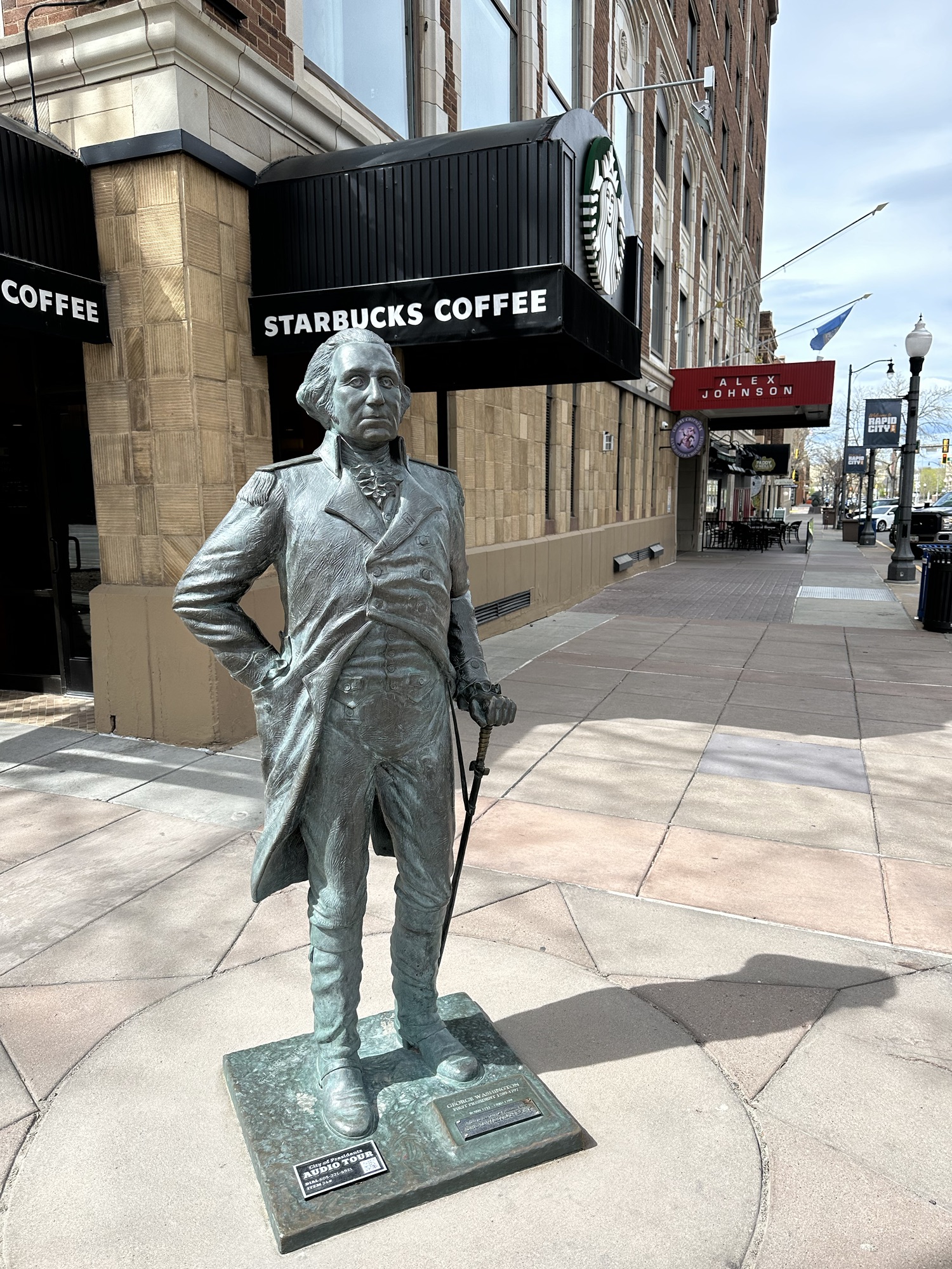 Rapid City itself has initiative, even if the pace of the place was slow. Taking advantage of Mount Rushmore it has named itself ‘City of Presidents’ and in the downtown, has a bronze, to size, President on every corner, 43 to date. Only one isn’t to size as he was a tad portly. Fabulous works of art and so detailed and lifelike. Even ‘The Declaration of Independence’ scroll being signed by Thomas Jefferson, 4th July 1776, was etched out. The centrepiece of the town is the ‘Germanic Tudor Inspired’ Hotel Alex Johnson built in 1928. Built to blend the German immigration to the Dakotas with the heritage of the ‘Plains Indians’ it also has a Starbucks and George Washington is a regular at their door! A different type of blend?! The town also has 2 pieces of the Berlin Wall, yes, unexpected, but a great little outdoor exhibit in a park, detailing the post war story of separation and reunification. Street art galore brought colour on a grey day although their ‘Art Alley’ was the worst we’d ever seen, overtaken by tags sadly.