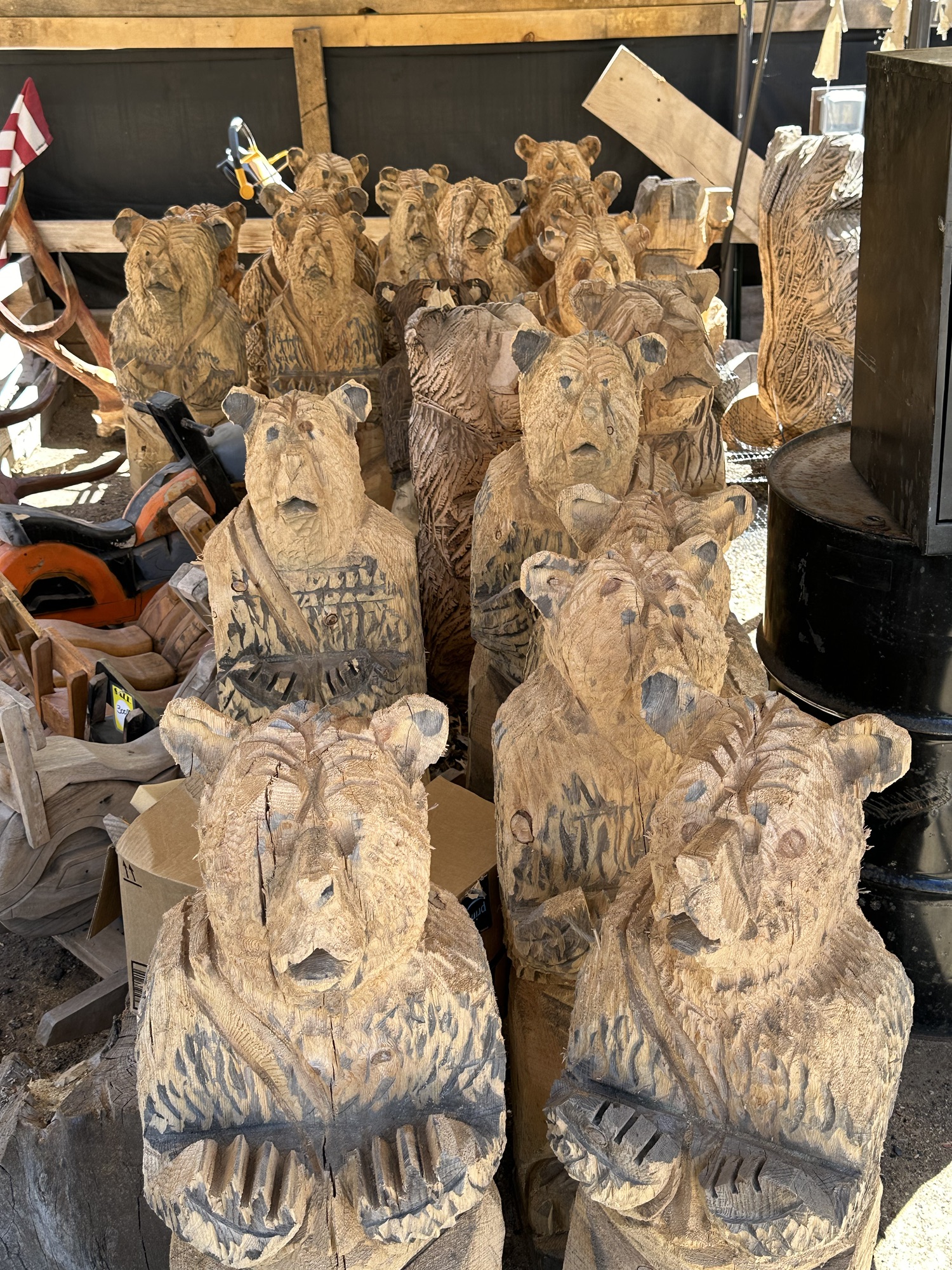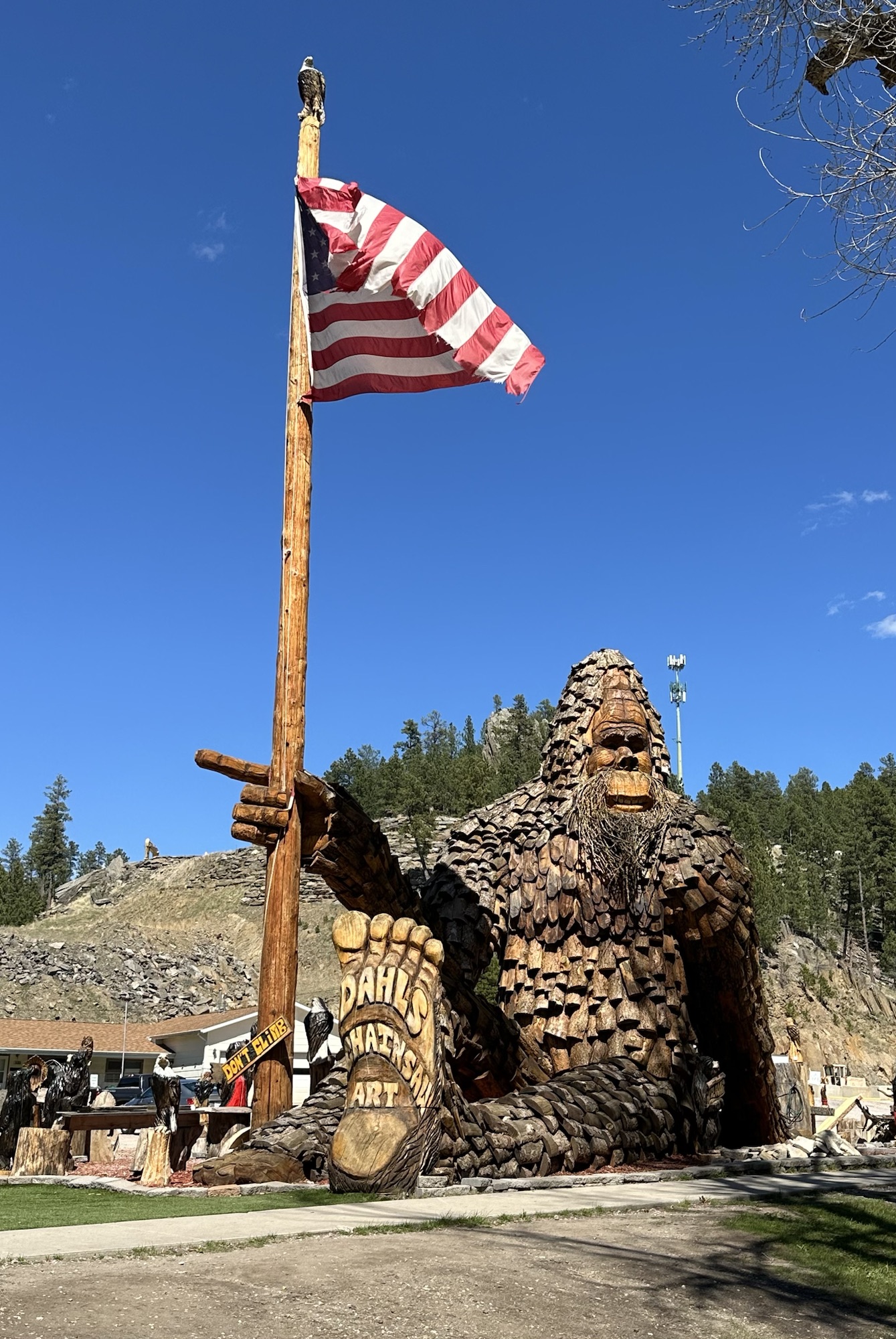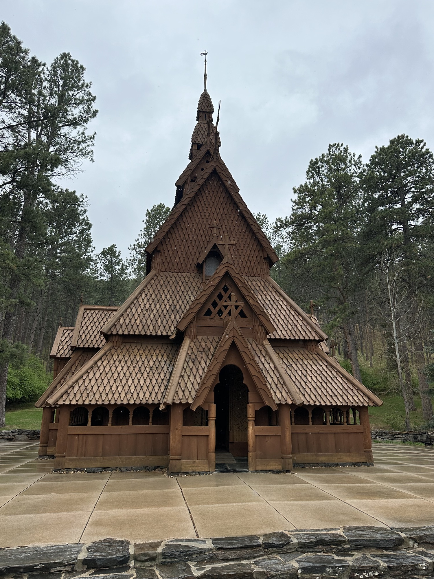 Around and about our base we found the Worlds Largest Big Foot, 23ft tall, chainsaw carved by the local Dahl Brothers. We also found what seems to be a readying of a teddy bears picnic. They’ve lots of outlets selling their wares around South Dakota. Also, we found a very authentic looking replica Norwegian Stave Church, based on Borgung Stavkirke of Laerdal, Norway. Built in 1969 by banker Arndt E Dahl (we couldn’t find out is related to the chainsaw boys) to honour his parents, Rev. and Mrs Anton a Dahl, Lutheran faith pioneers from Norway. Dahl is a popular name, many Nordic nationals moved to the Dakotas. It was a stunning building and great craftmanship shown by the Norwegians who built it and the prayer walk within the woodland behind was peaceful, even in the rain.