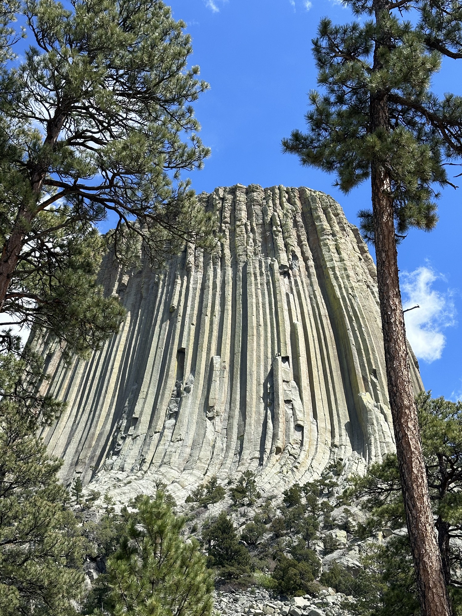 We popped back to Wyoming for a day. Heading into sci fi territory we went to Devils Tower National Monument, the first one. It was lost on me but its where Close Encounters of the Third Kind was filmed and of the iconic film poster image. Visible from miles around, the rock itself looks like a cluster of angular towers formed by cooled molten magma underground, before erosion of the surrounding sock rock made it visible. At over 61m tall, the columns are a magnet for climbers and it’s a fabulous place to walk around, making sure to avoid the entwined in true love, mating Bull snakes. In 1906 Roosevelt passed The Antiquities Act as a way to ensure protection for places and objects, much of his legacy surrounds this and the pioneering of the Federal Parks, so prevalent today.
