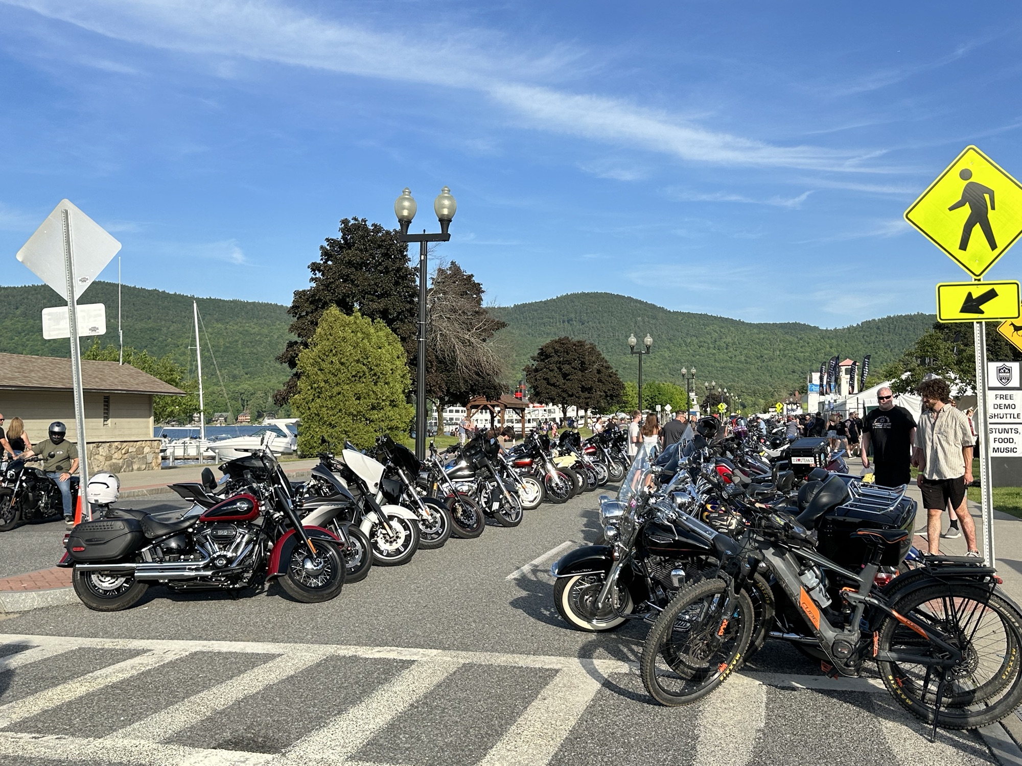 We didn’t realise though, that Lake George was home to a Motorcycle rally that long weekend called Americade, it was going to be a noisy and fascinating one. We got our bikes out and cycled into town, well we do have motors, so why not?! Pretty out of place among the leather ‘chapter’ clad brigade we enjoyed people watching with ice cream. Thousands of bikes parked up or cruising around showing off. Deservedly too in some cases, the design was real art. Watching a Tesla Cyber Truck cruise amongst them was hilarious. Not sure the ‘don’t drink ‘n ride’ message had landed though. We also don’t understand the lack of protective gear and how a bandana will save your head when clunked? One person who’d had few bevvies, felt the need to tell me I was taking the p*** when I parked my bike between others… well to be fair, I was! “Chill out dude”… I didn’t say… can’t be too careful.