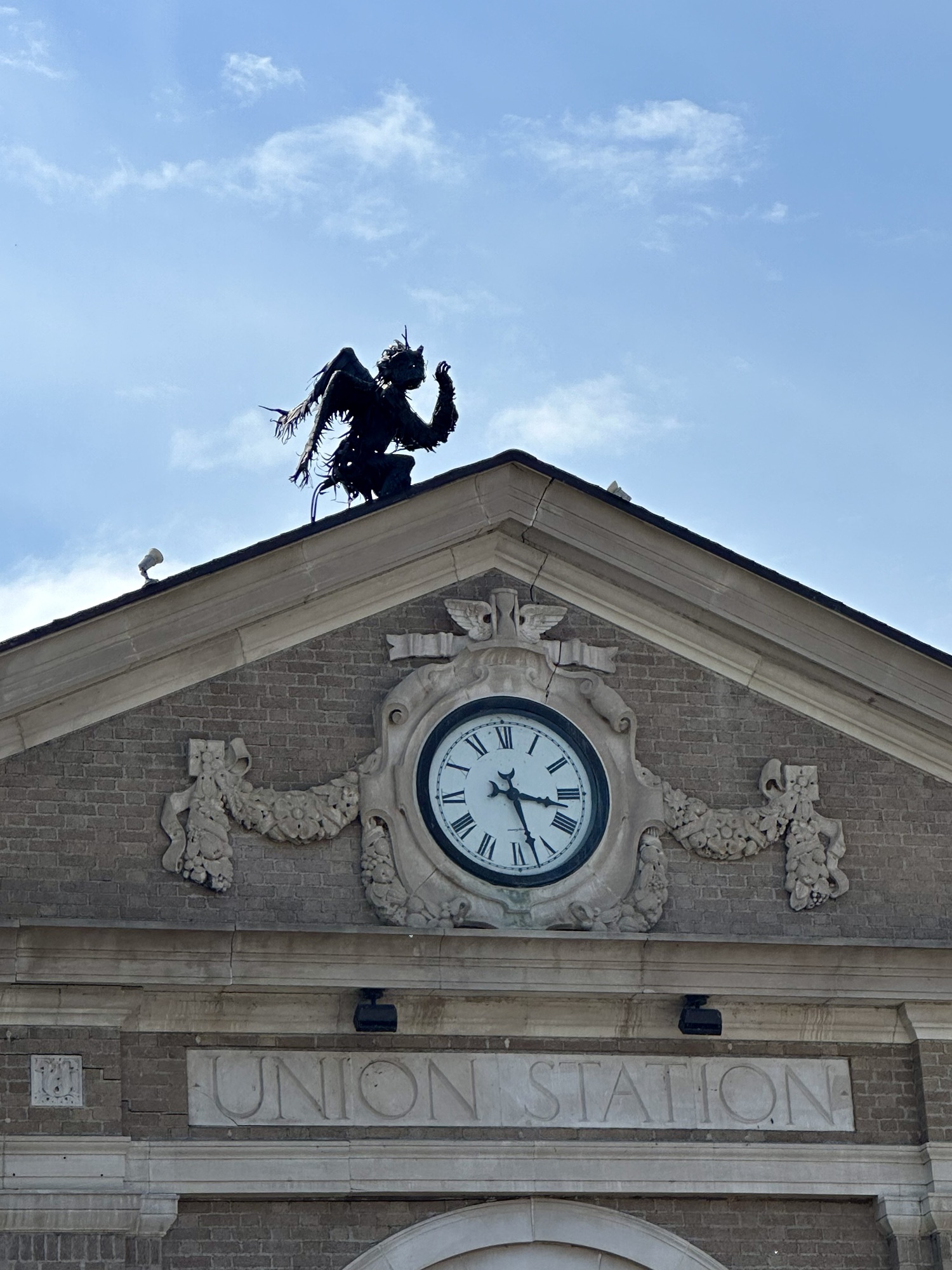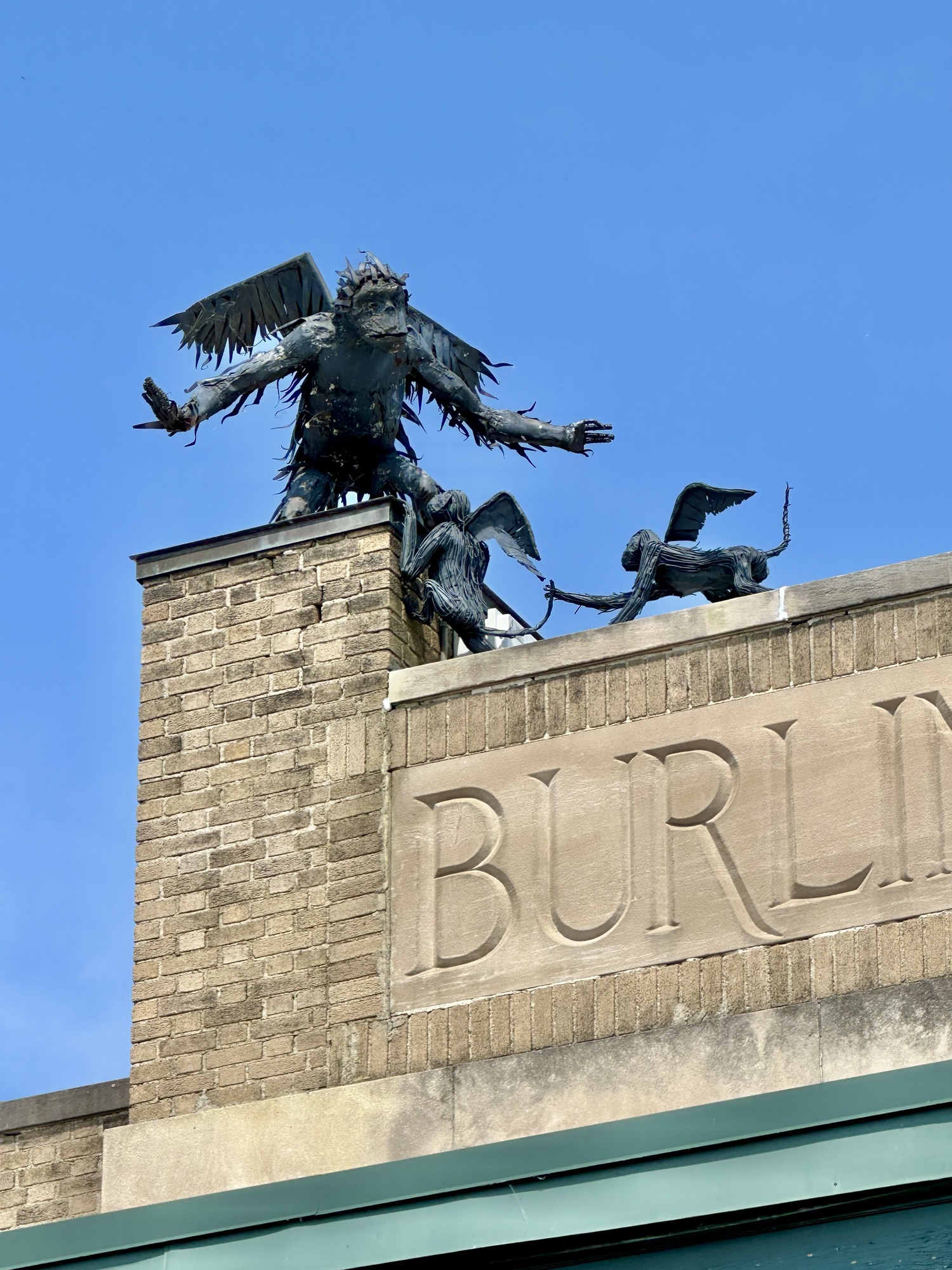 Waterside, the harbour was quiet, the waters still and the heat, stifling. Even wandering the gardens, looking across the Lake to the mountains was tough. Thankfully tree shade to look at the ‘Flying Monkeys’ atop the signature harbourside building,. the old Burlington Union Station for one. The centre is pretty cosmopolitan, pedestrianised with preserved buildings from the 1830’s commercial district boomtimes. Some ‘maritime mercantile style’ buildings reminded me of Liverpool’s architecture, very grand and solid. It’s proximity to the trade routes through the Great Lakes waterways and growing rail infrastructure made the place. Very much reflected in the large plot, lakeside mansions all over.