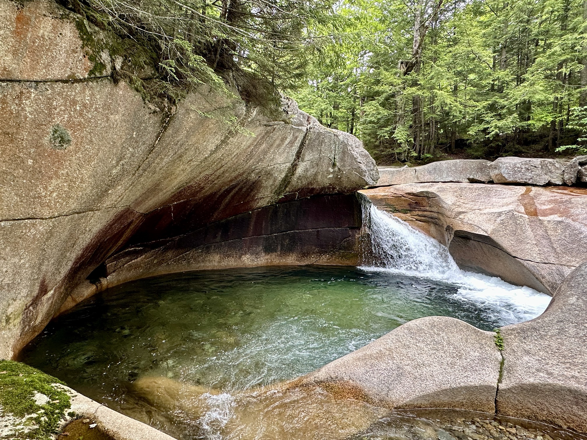 Before moving on we had breakfast (which also covered lunch) at The Littleton Diner. We were the curiosities of the day, the lady who worked there had also checked us in the previous night at the campground and had just been talking about us there. It was our ears that were burning not the food! After a plate of cholesterol we headed out for a hike at The Basin which is defined as a ‘Glacial Pothole’ in Franconia Notch State Park. A great example of a bowl hewn by abrasive rocks, tumbled about by the water. Close by was Lincoln a tourist haven full of hotels, inn and water parks, yuk. So we headed on to Woodstock.
