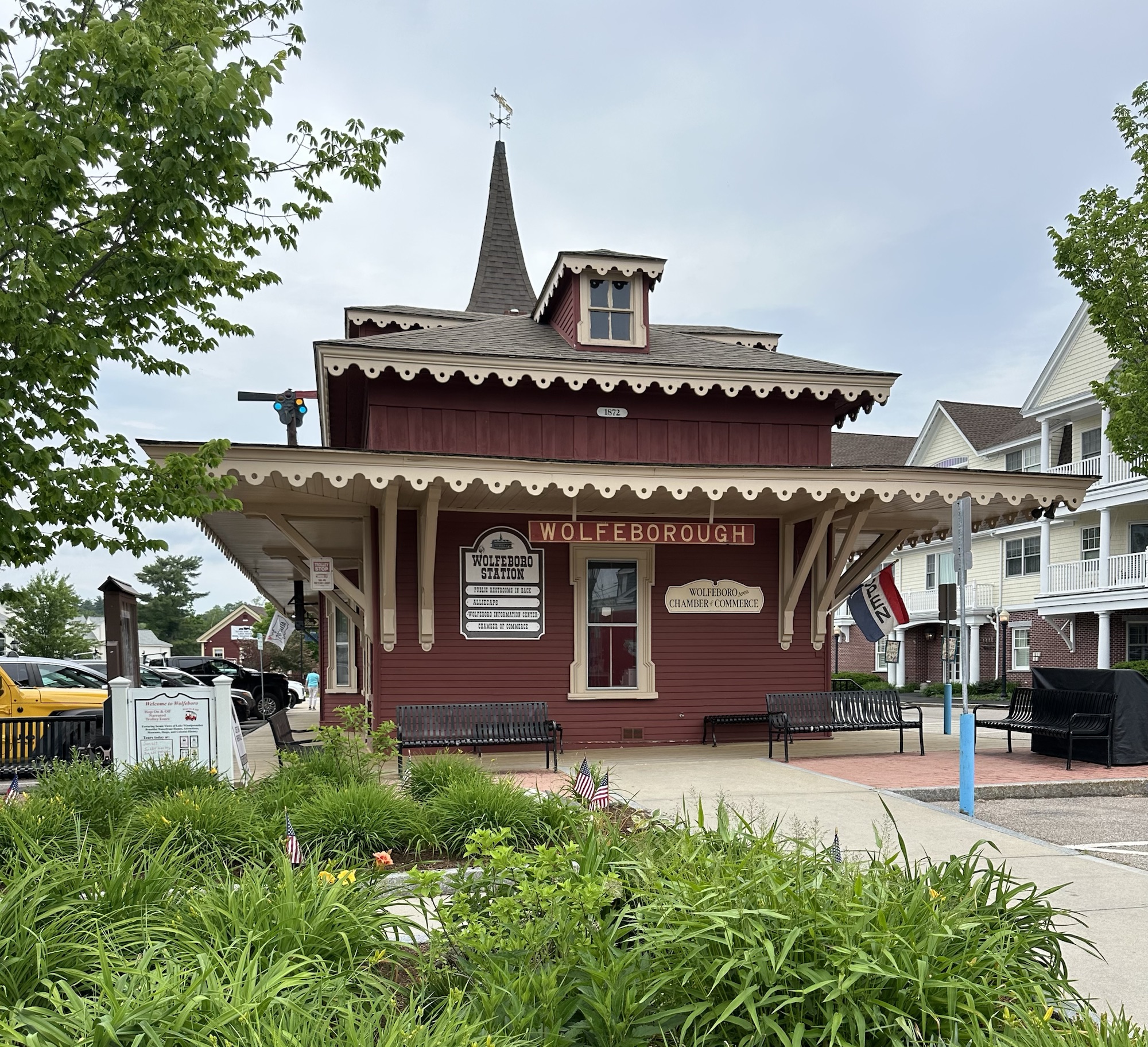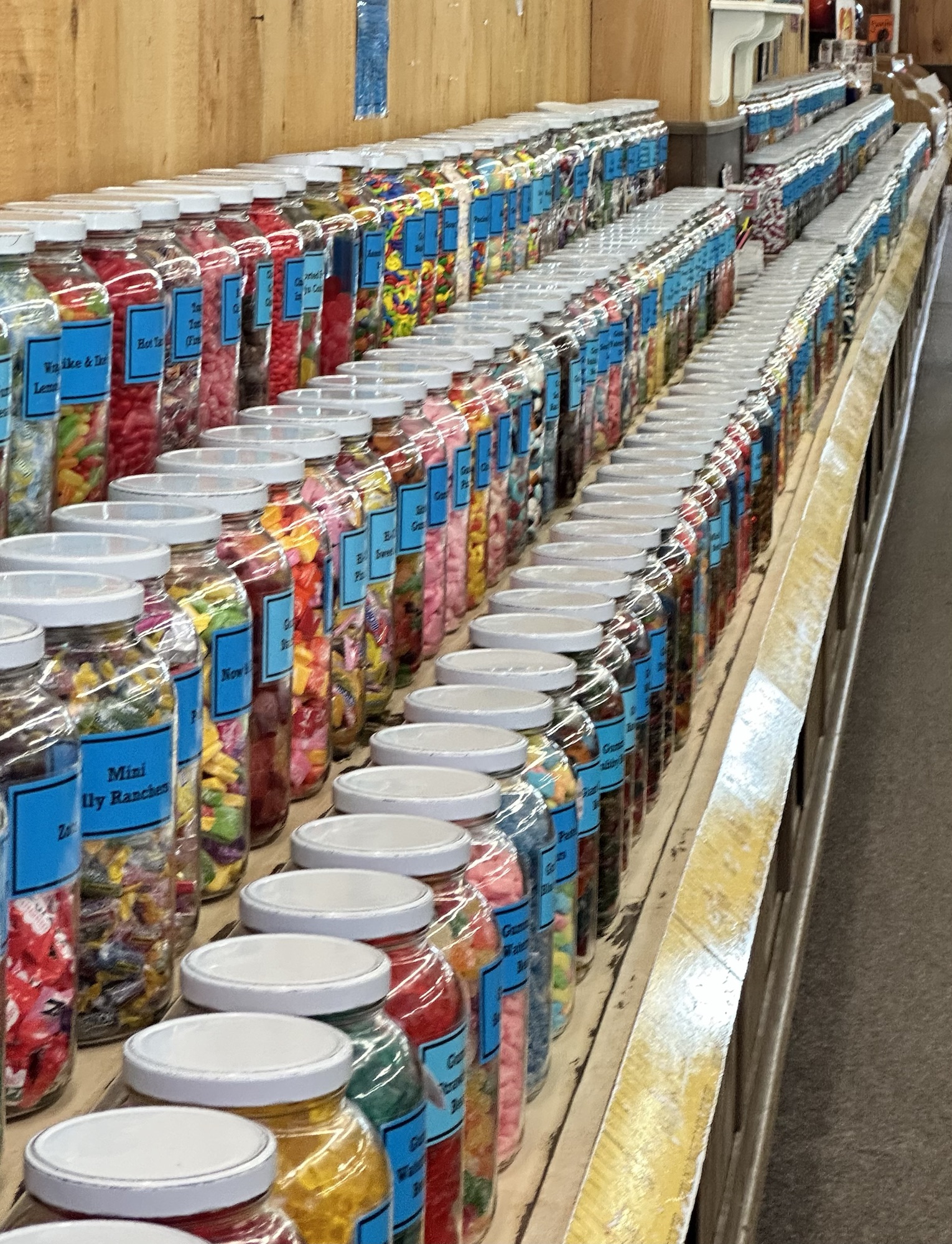 Yes, that’s the New Hampshire slogan on their number plates, or as a lady said to us about the bikers, descending on towns and brew pubs… Live Free and Die (she did say she shouldn’t say that really, but she still did) Our first stop was Littleton, being close to The White Mountains, quite touristy and dominated by The Thayers Inn, a hotel dating back to 1843. Built to accommodate the growing numbers of rail travellers, its a landmark property. Another icon of the town is Chutters, with The Worlds Longest Candy Counter. It had the certificate to prove it! It was one of those places that took the pounds from my purse and put them elsewhere! Pollyanna looked on with the cheerful disposition she has, out front of the library. The author was born in the town, hence the bronze statue reminding us all to find the good in everything.