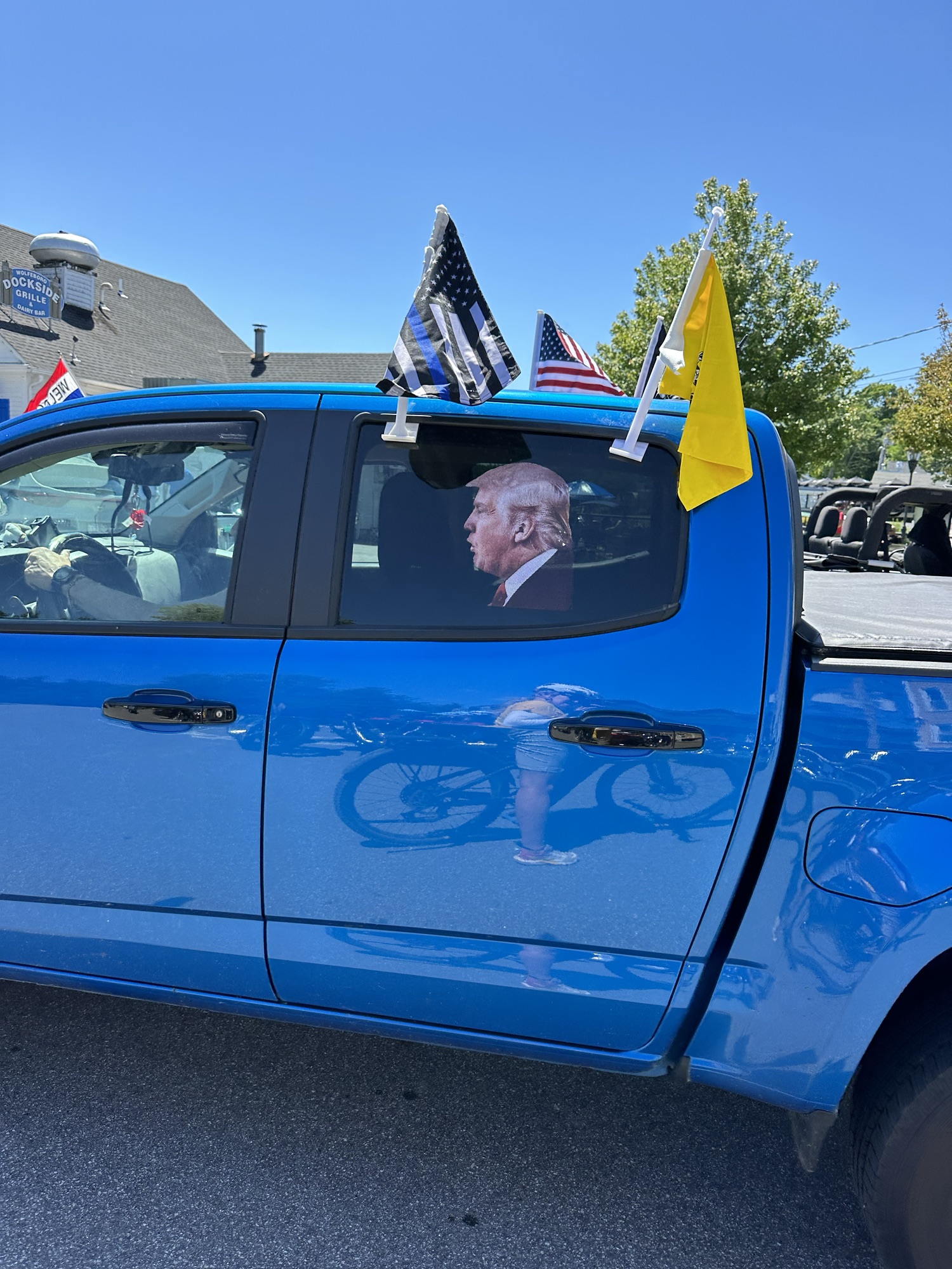 Woolfeboro seemed to have a lot of US flags and banners around and the customary Trump signage. We hardly ever see pro Biden, maybe his supporters aren’t as shouty? We were shocked to see Trump in the back of a pick up though, while eating ice cream by the waters edge. We were underwhelmed for the first time by the mountain bike trails although we did see a turtle basking on a rock, a bit like Trump does as he’s also from the stone age (IMHO obvs!) Back into the town for the vegetarian food of choice, which seems the only choice for us, a ‘grilled cheese’ and people watching finished off the day before cycling back, past the oversized houses with their ‘Lanai’ (verandas with bug screen to you and me) It’s a wealthy place for sure.
